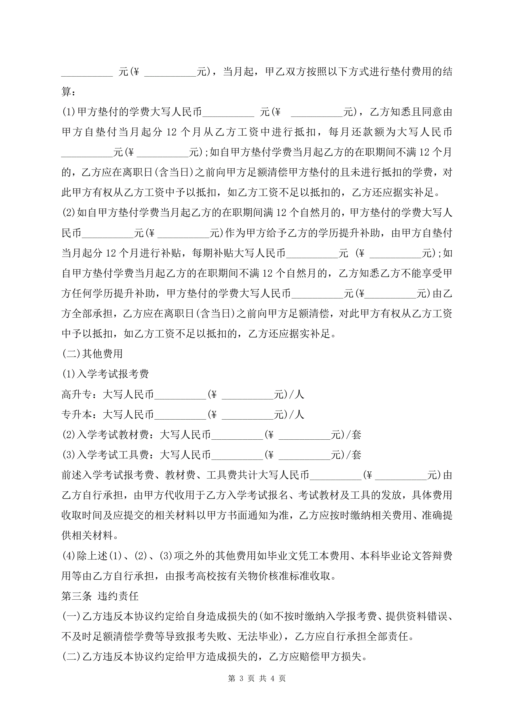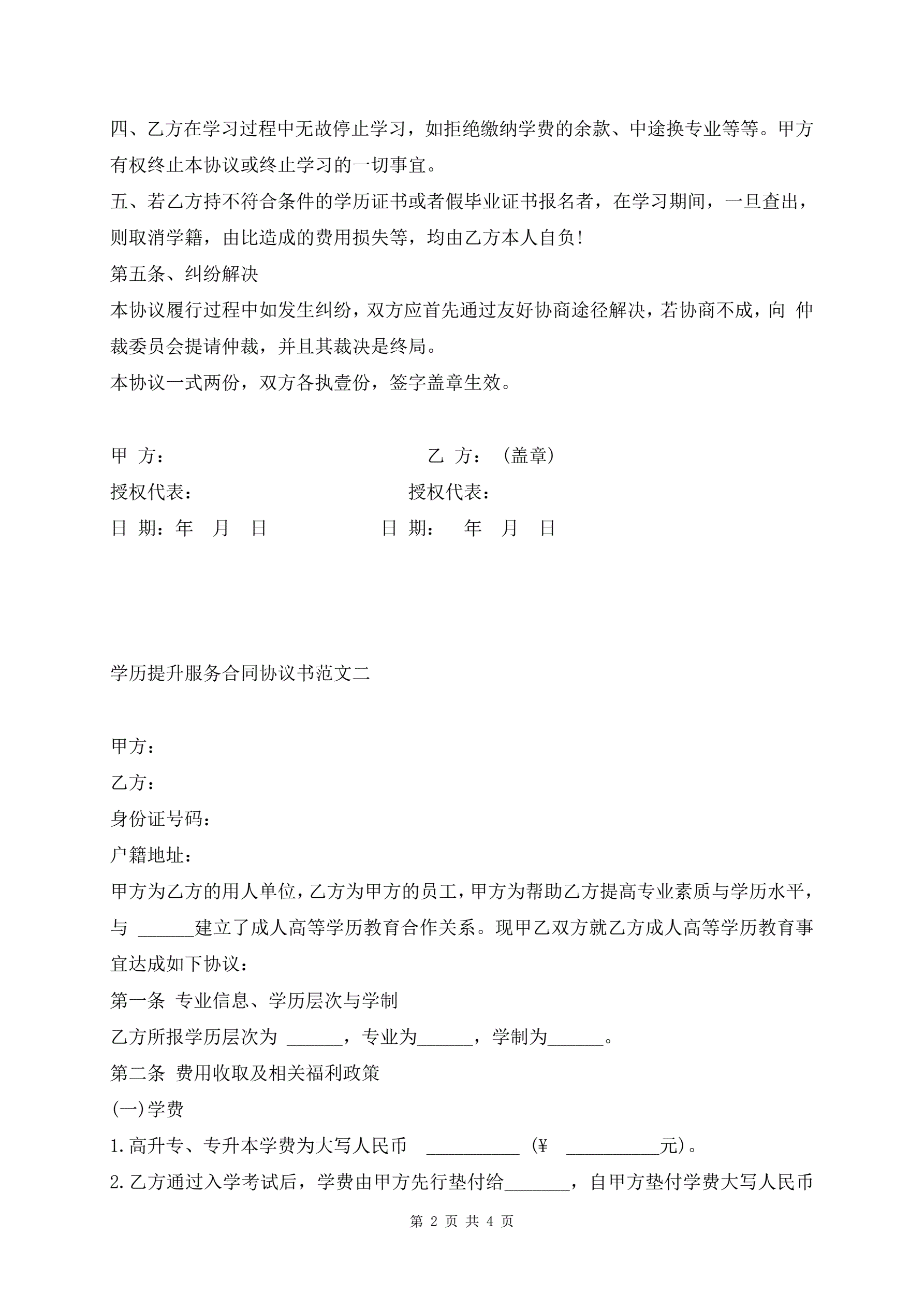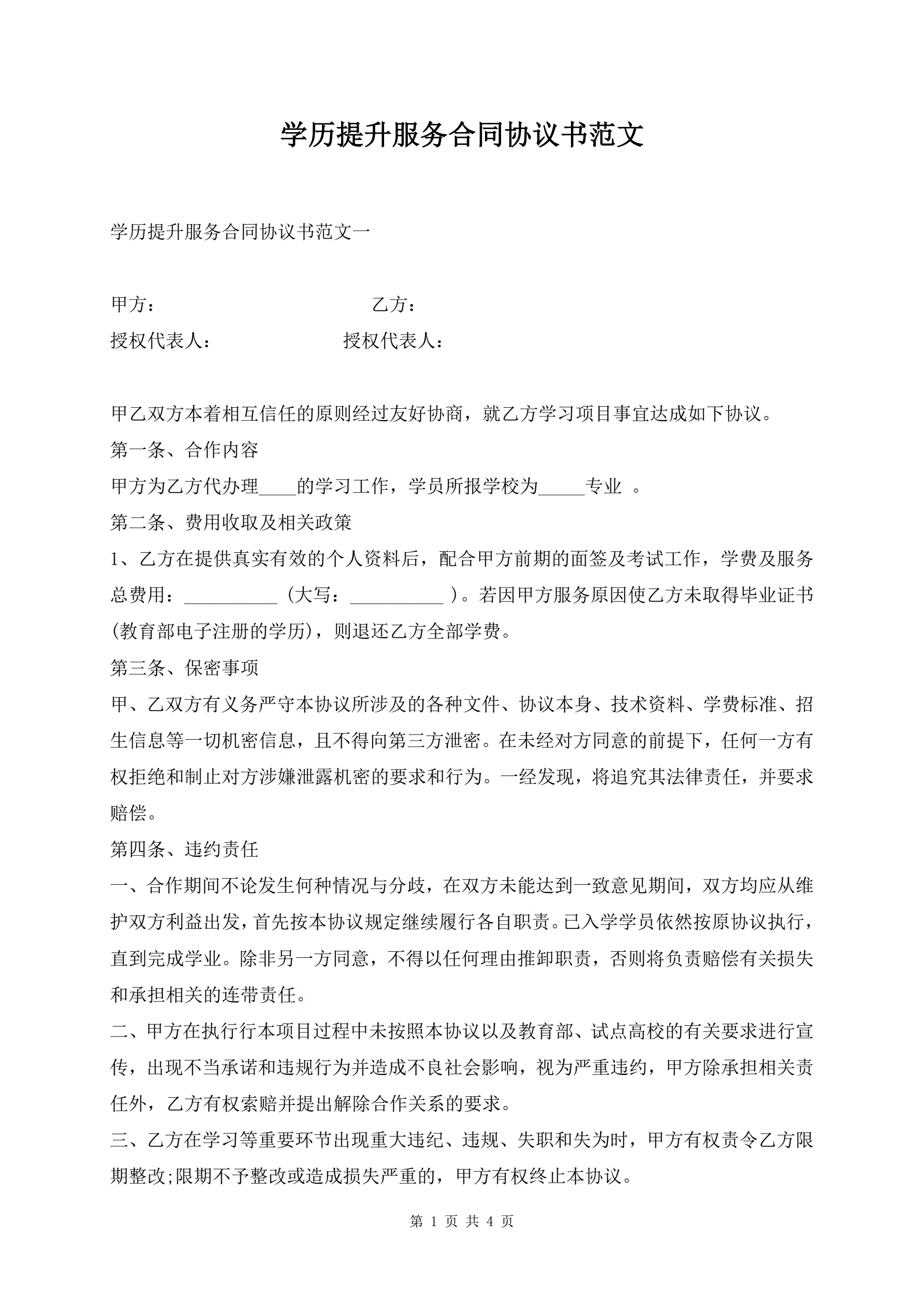>学历提升服务合同协议书范文