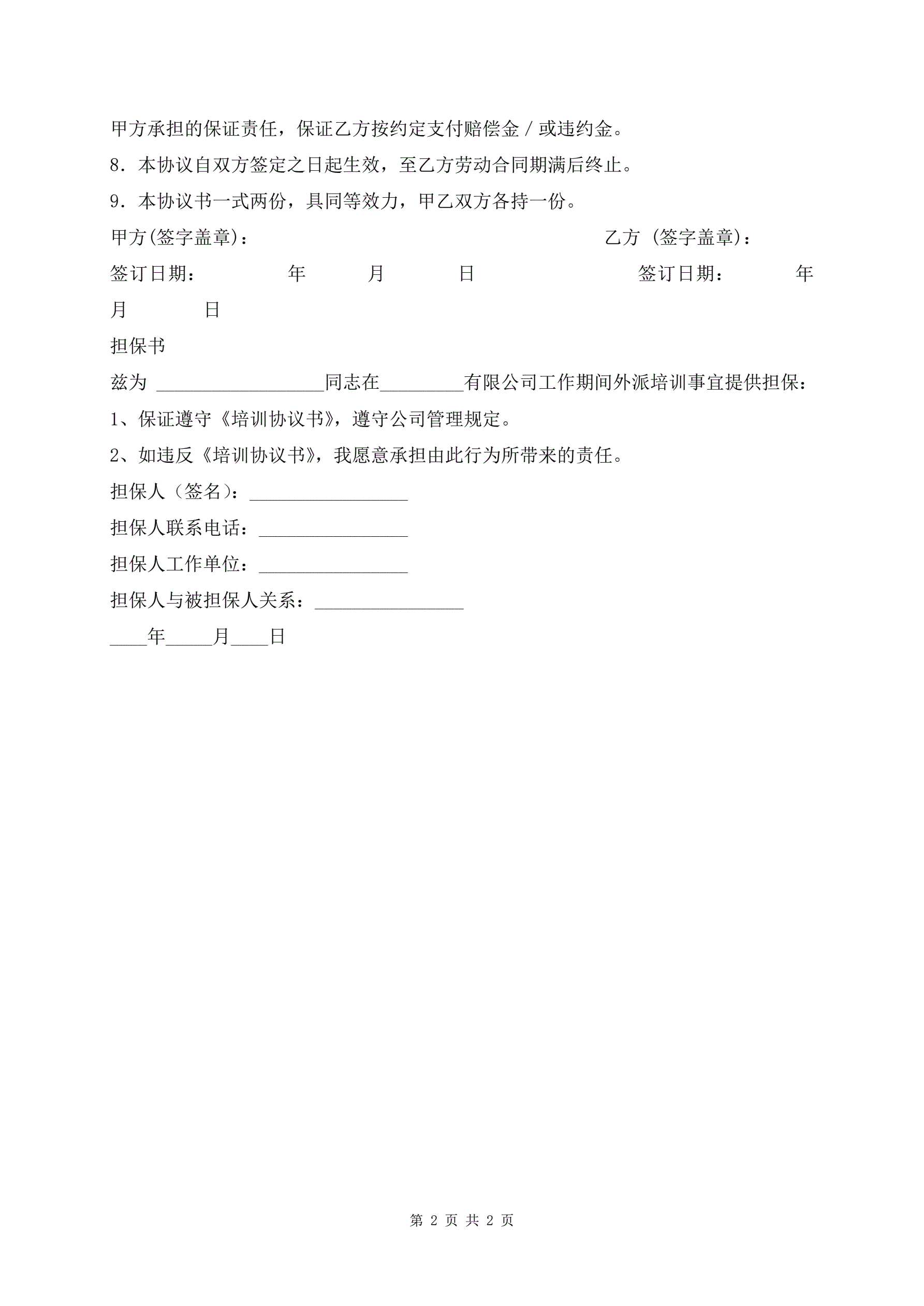 >热门公司培训合同