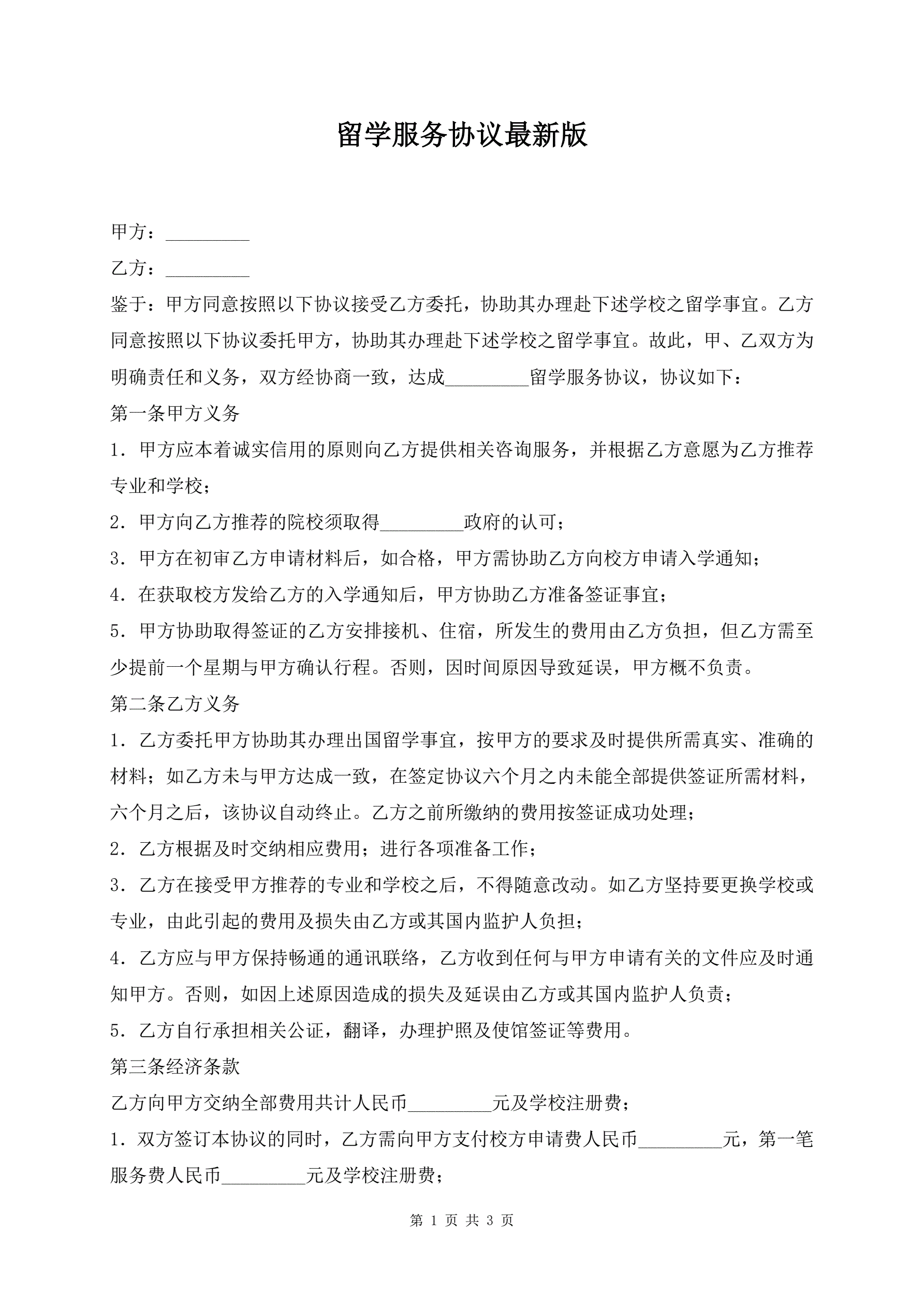 留学服务协议最新版