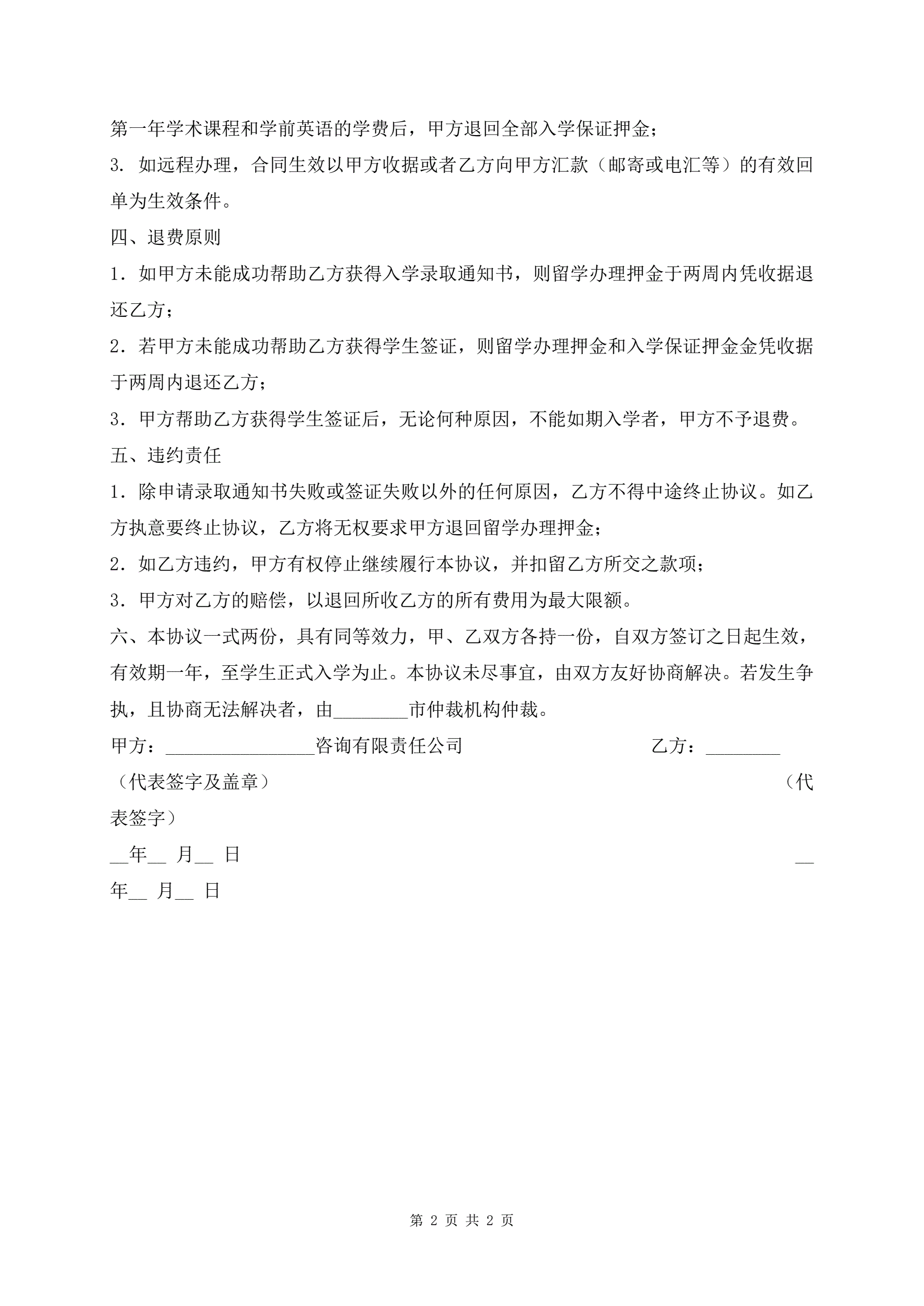 委托办理留学协议书最新版