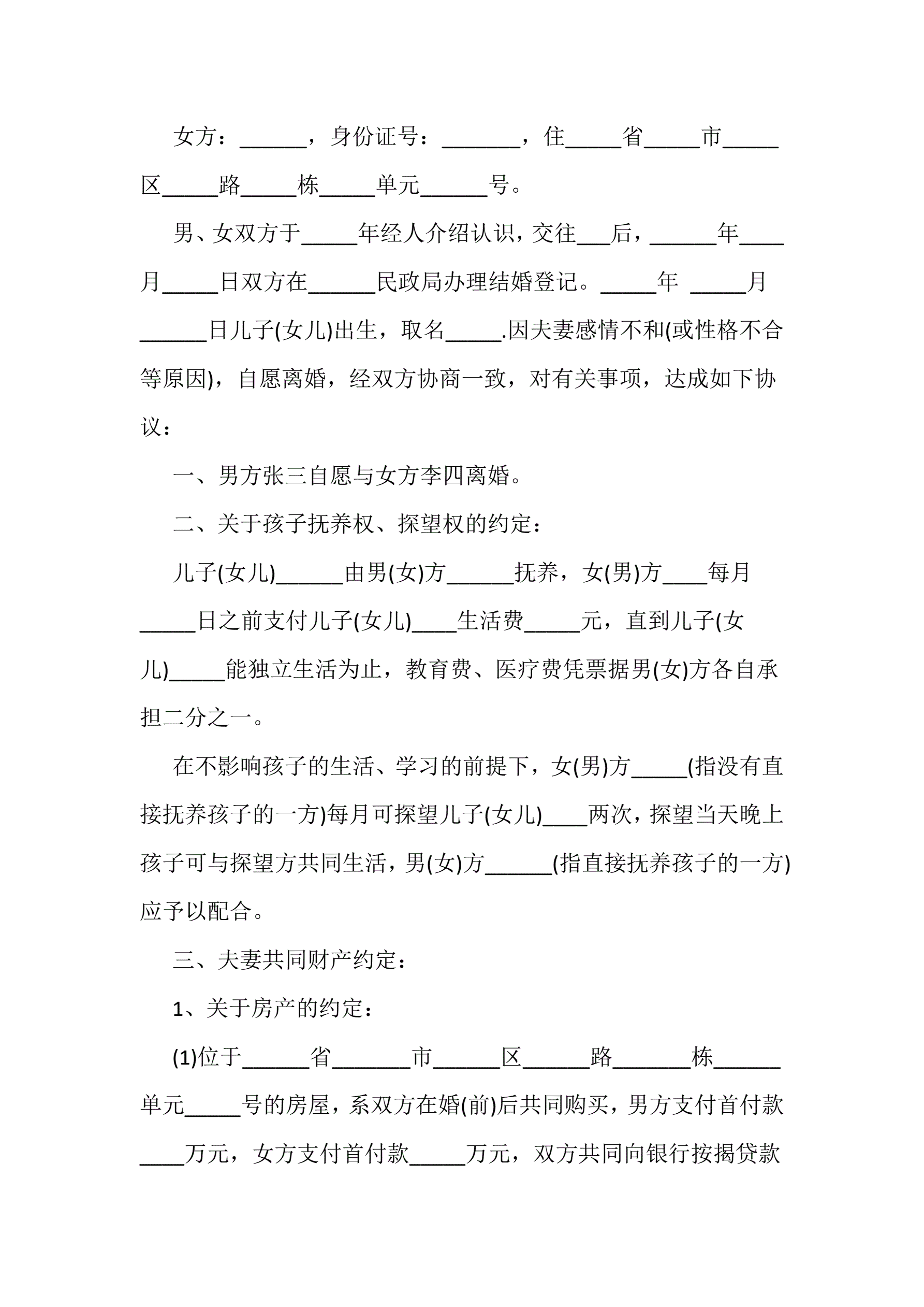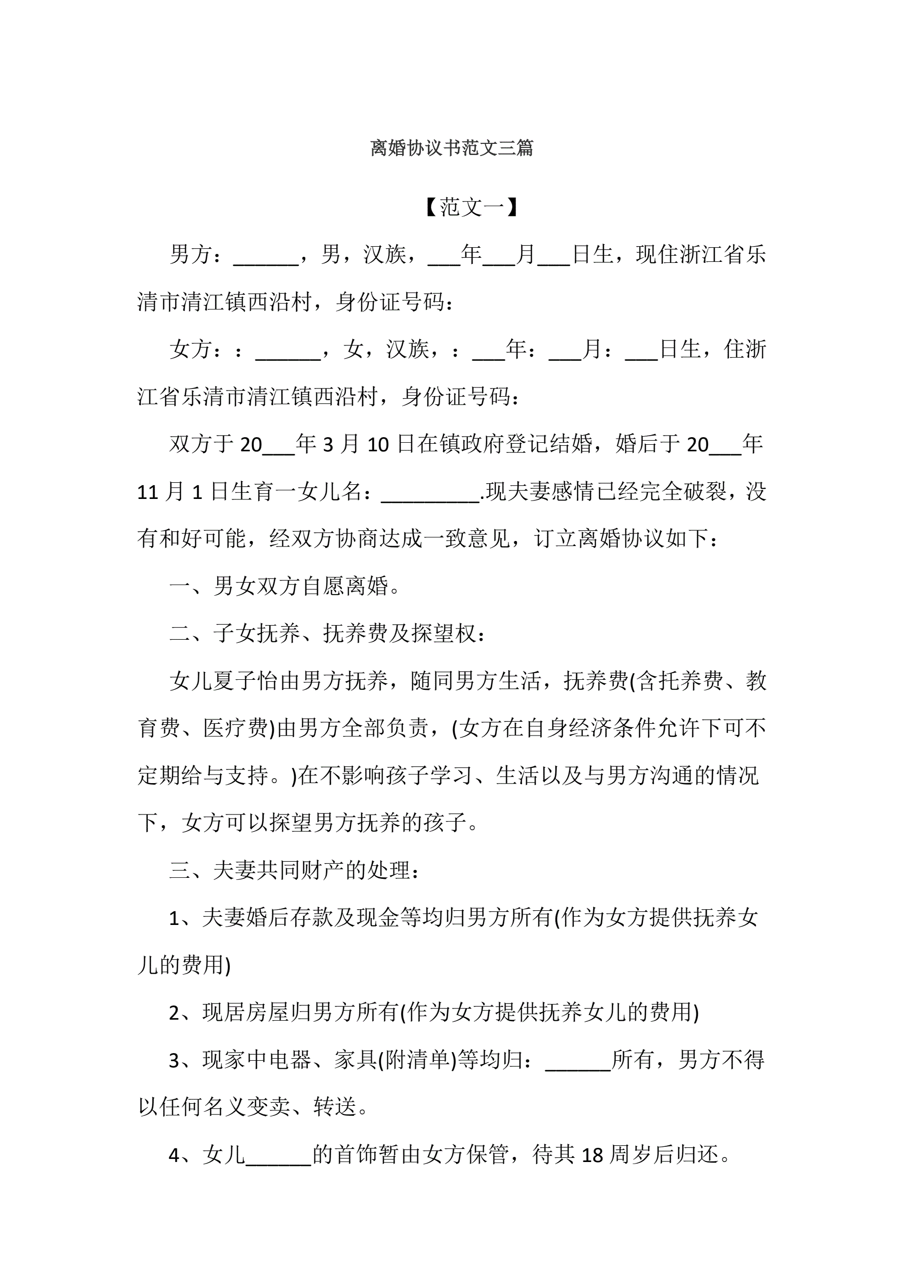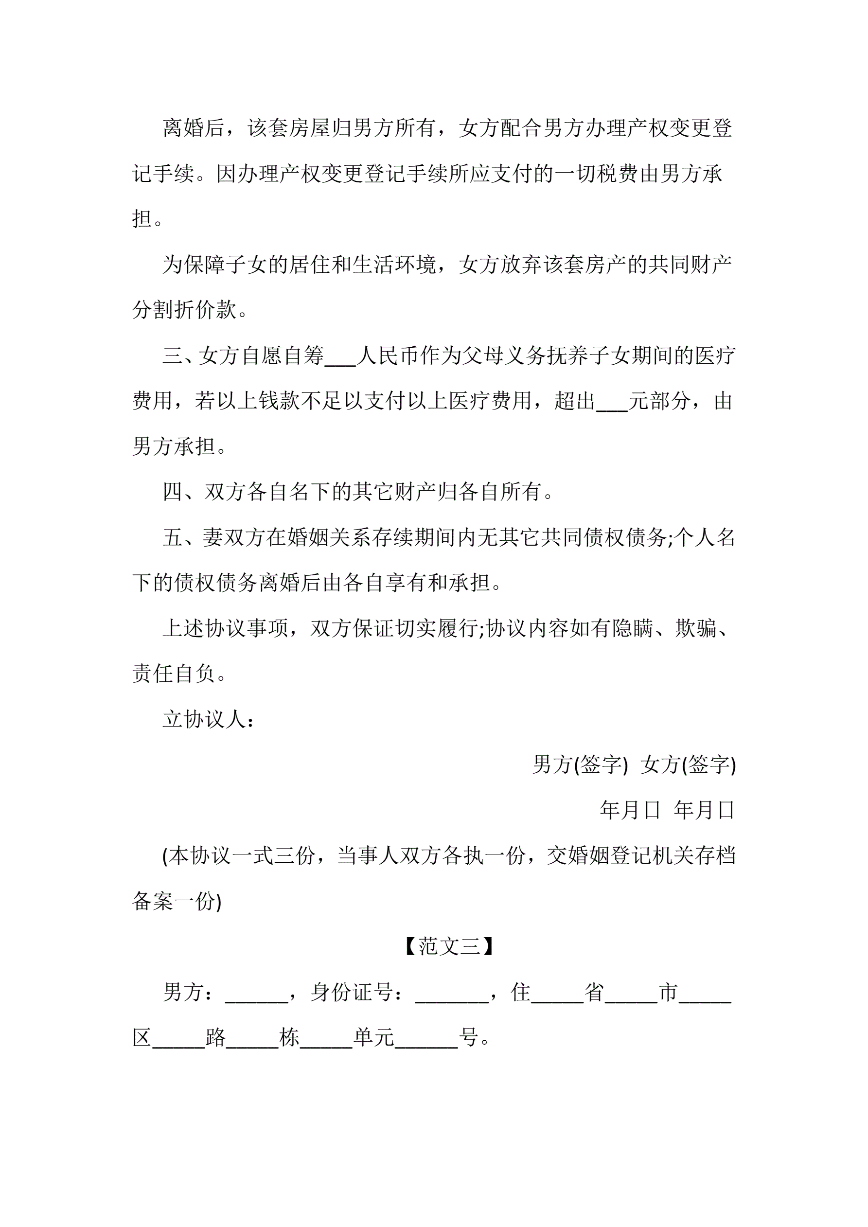 离婚协议书范文三篇