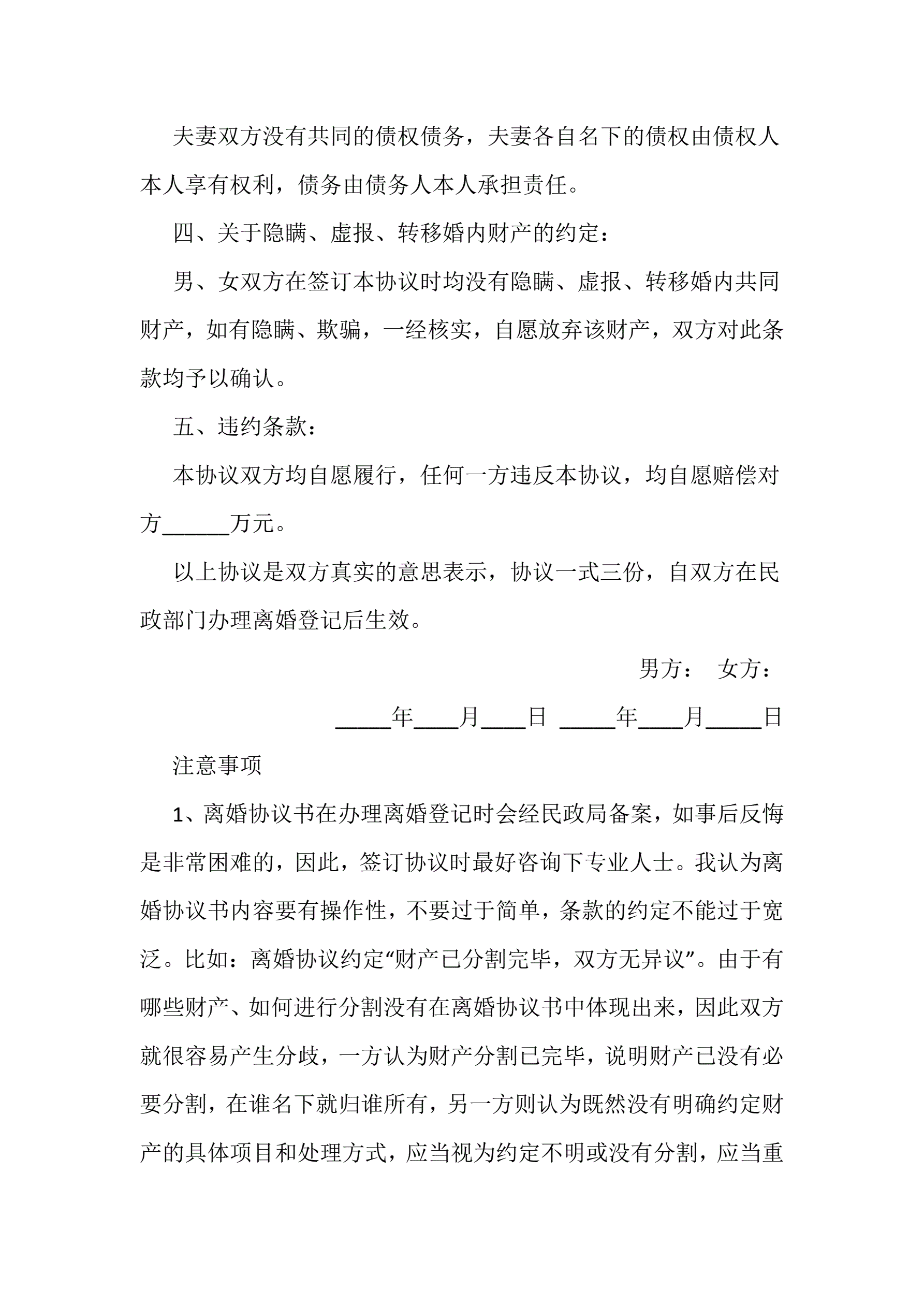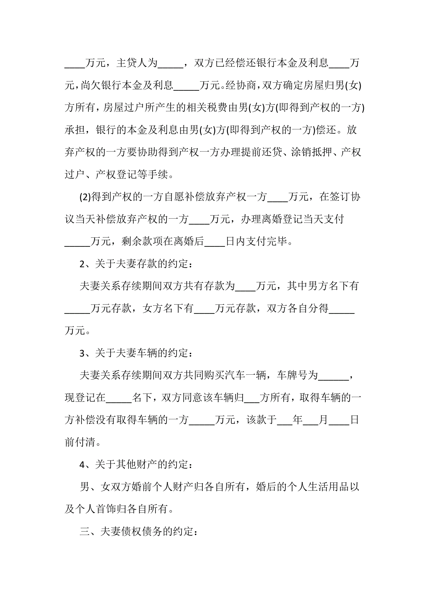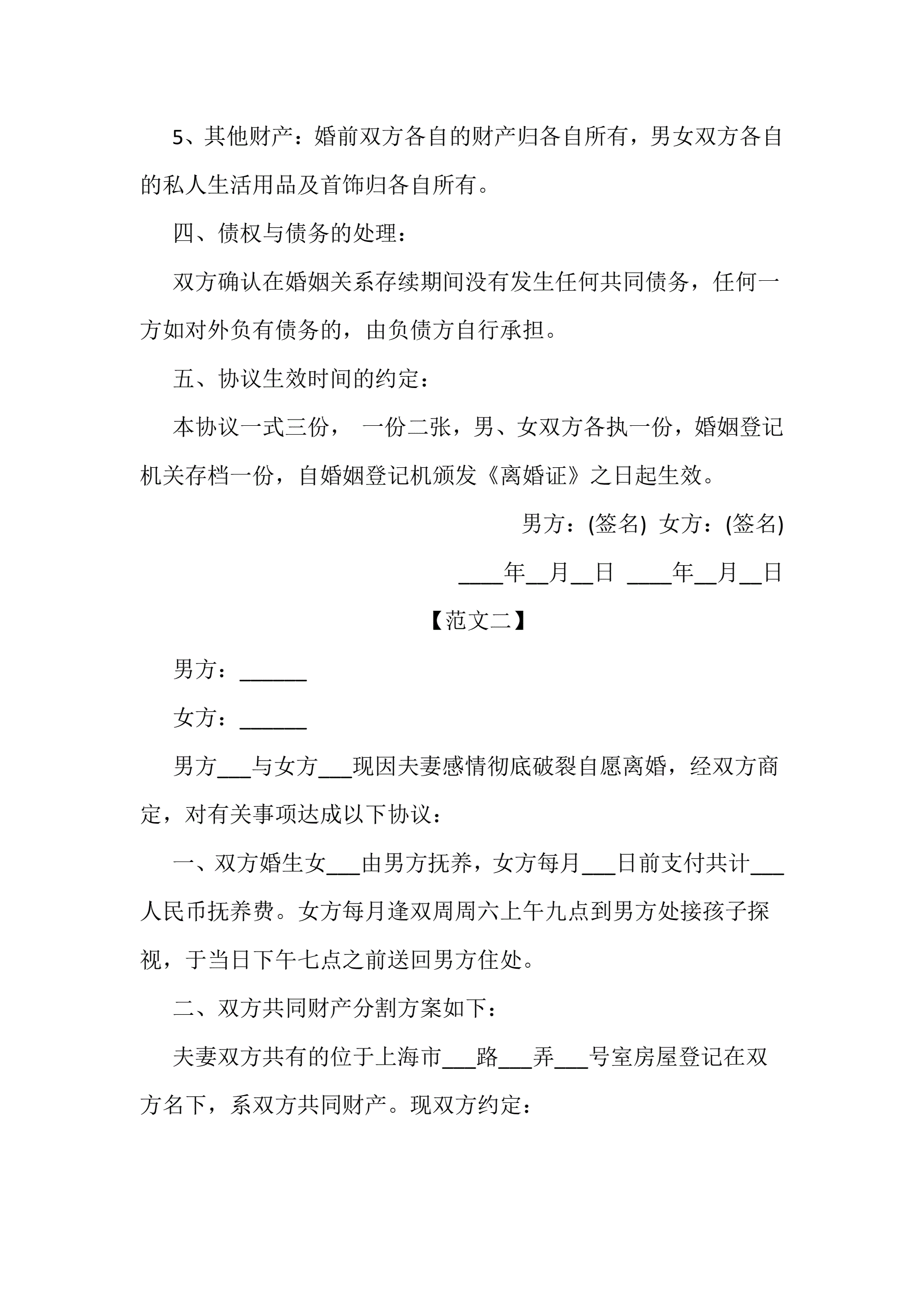 离婚协议书范文三篇
