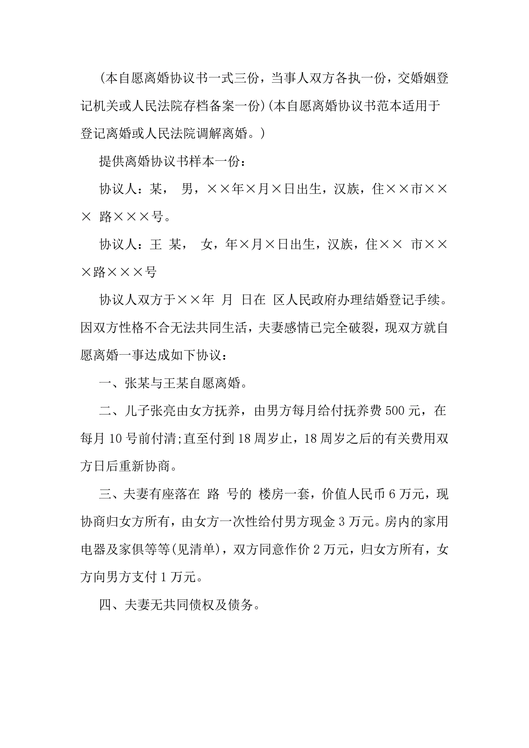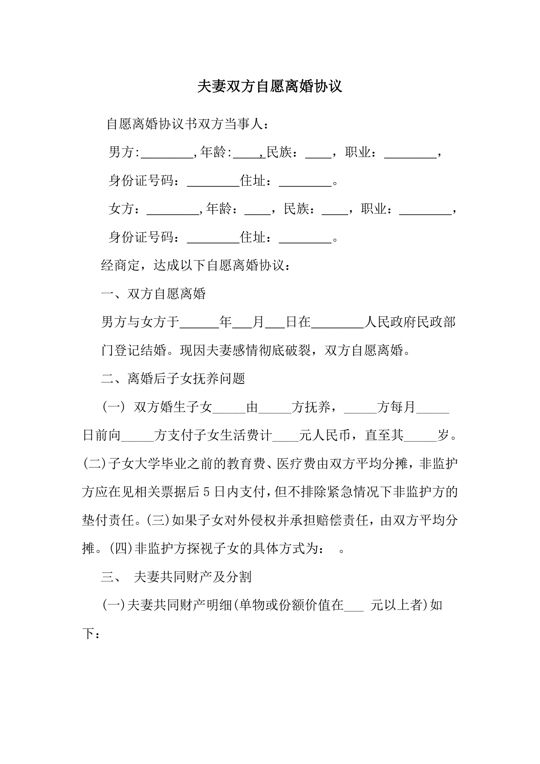 夫妻双方自愿离婚协议