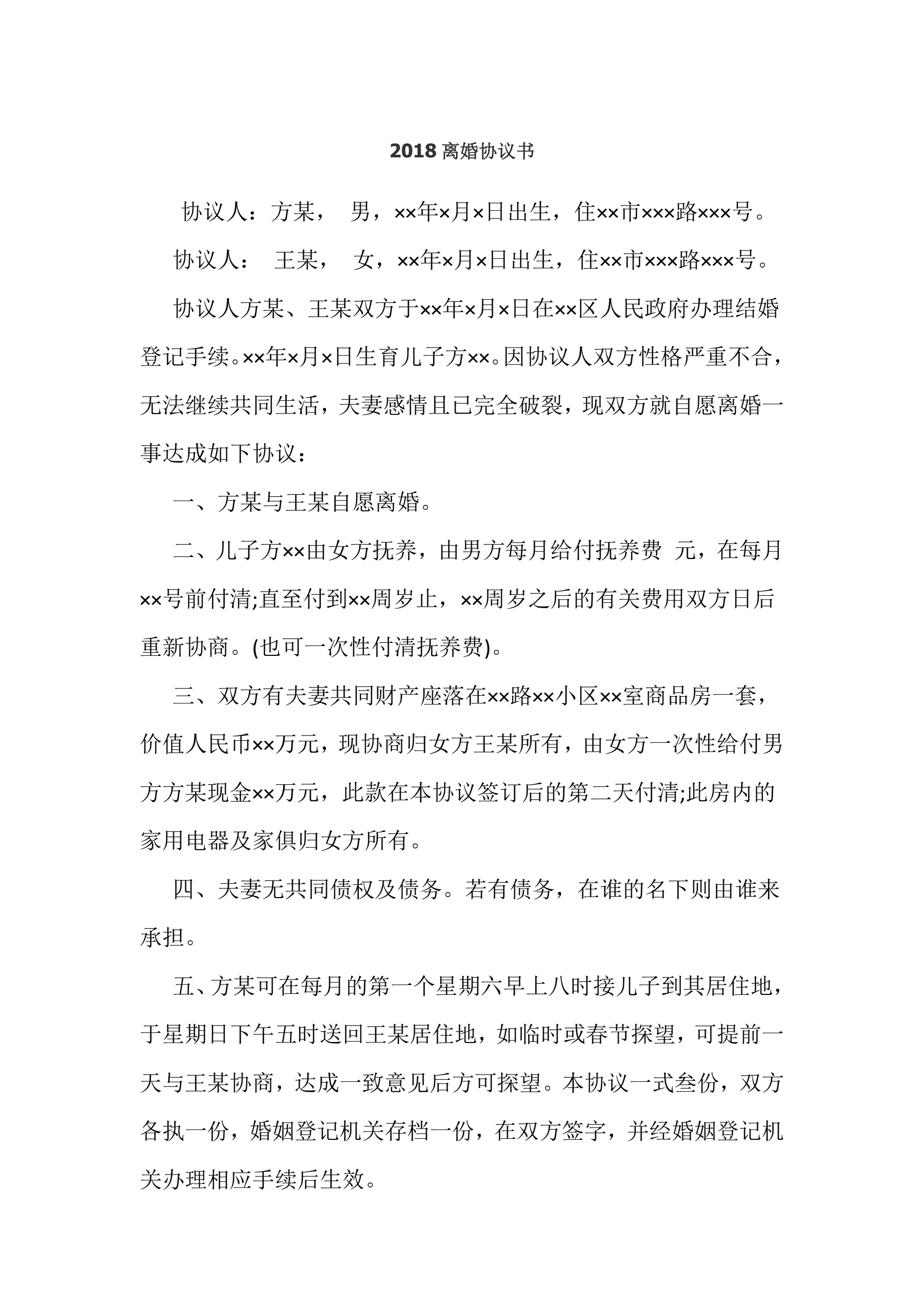 合同名称:2018离婚协议书