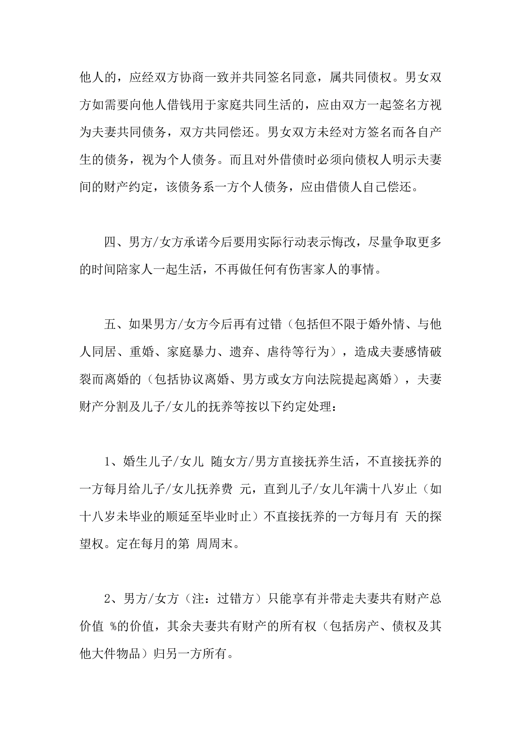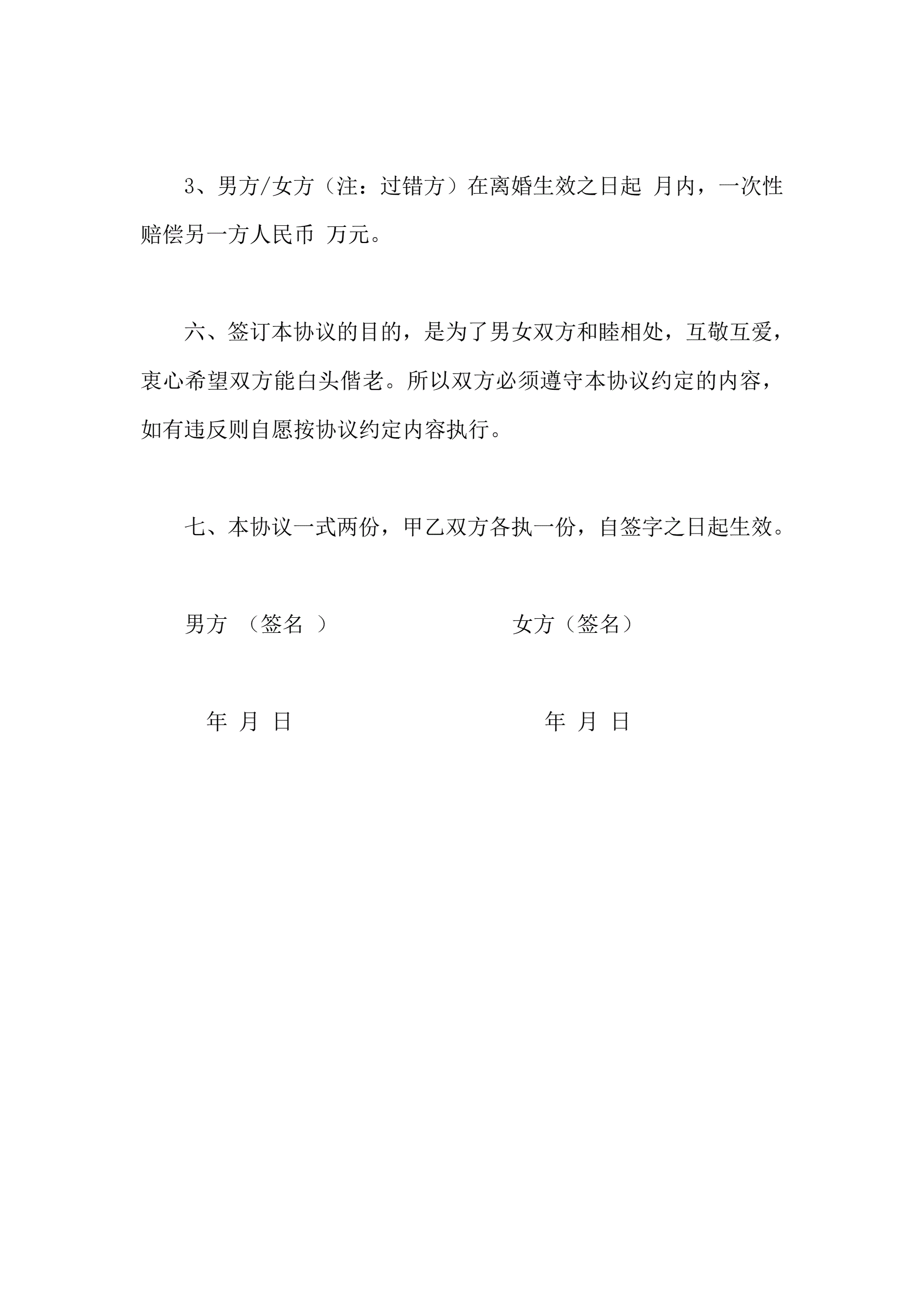 婚内协议范本