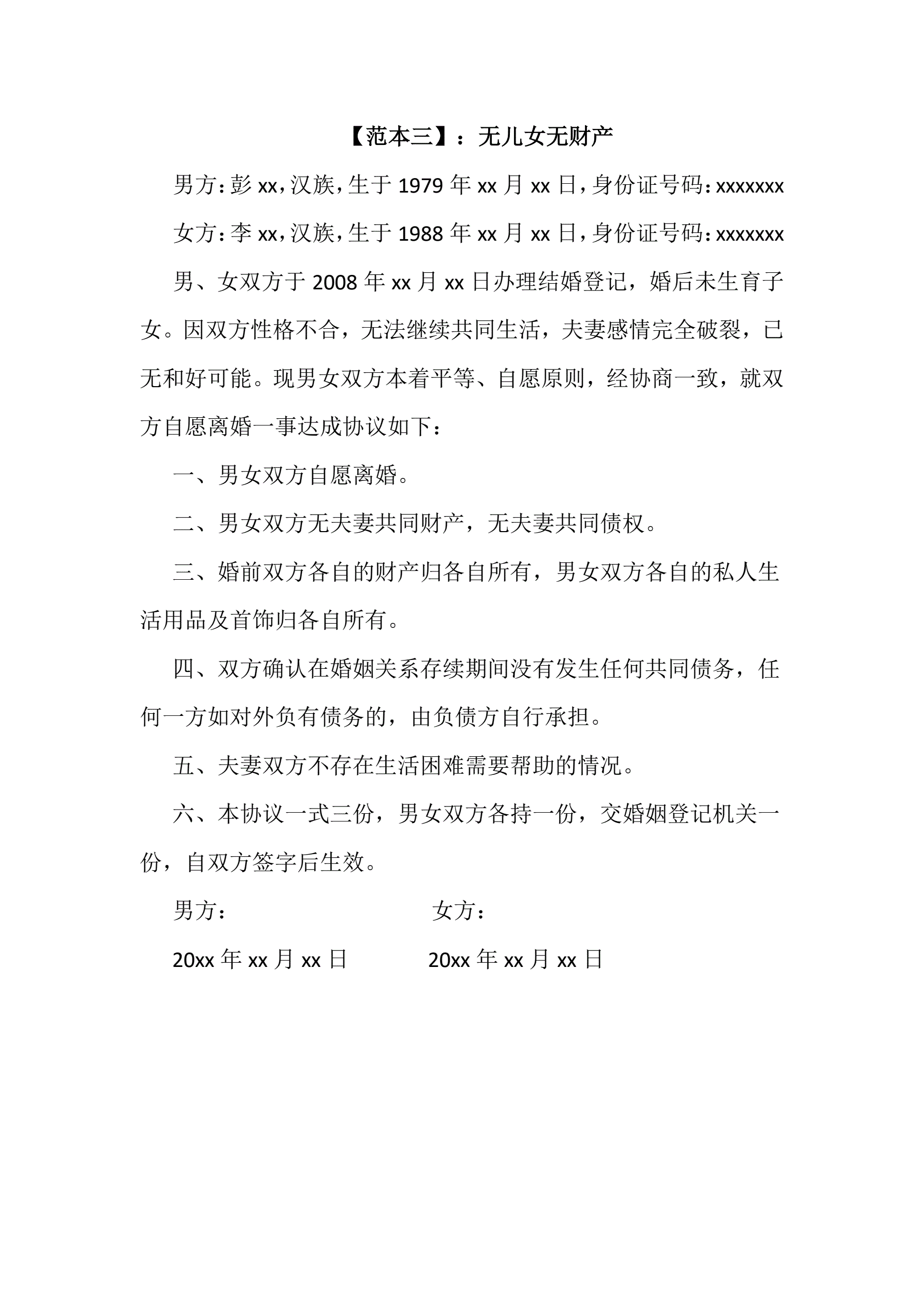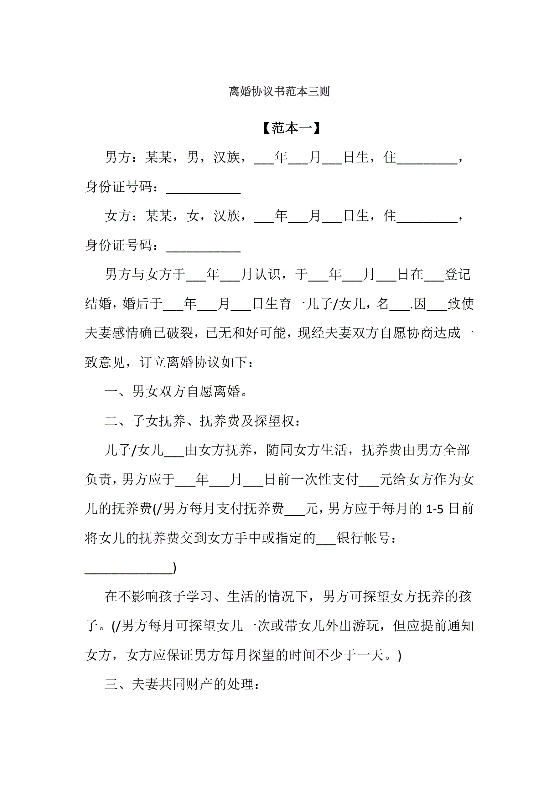 >离婚协议书范本三则