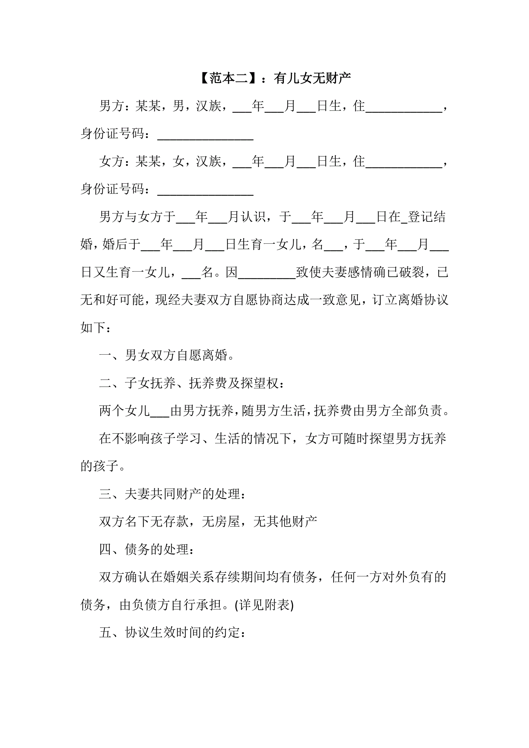 离婚协议书范本三则