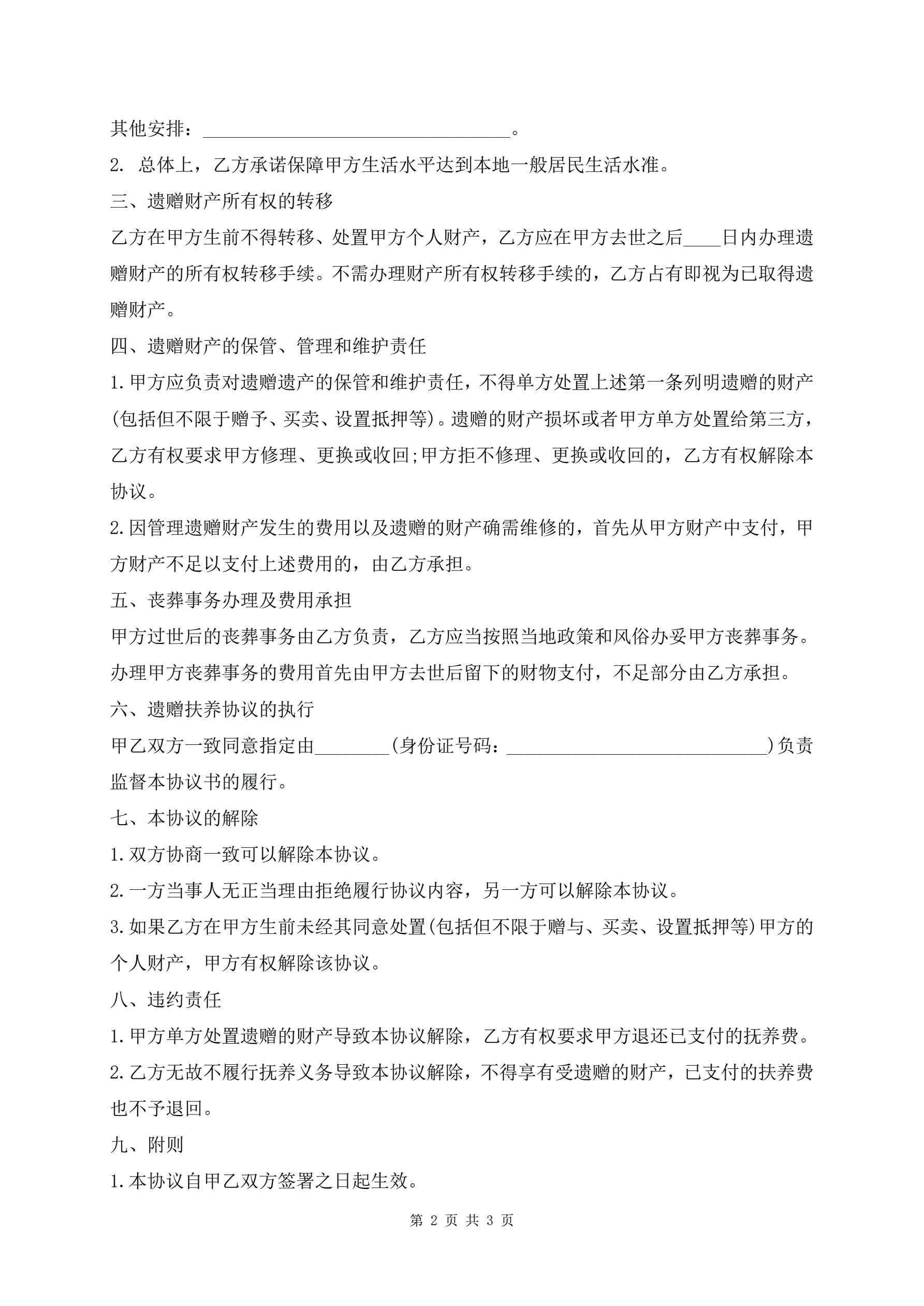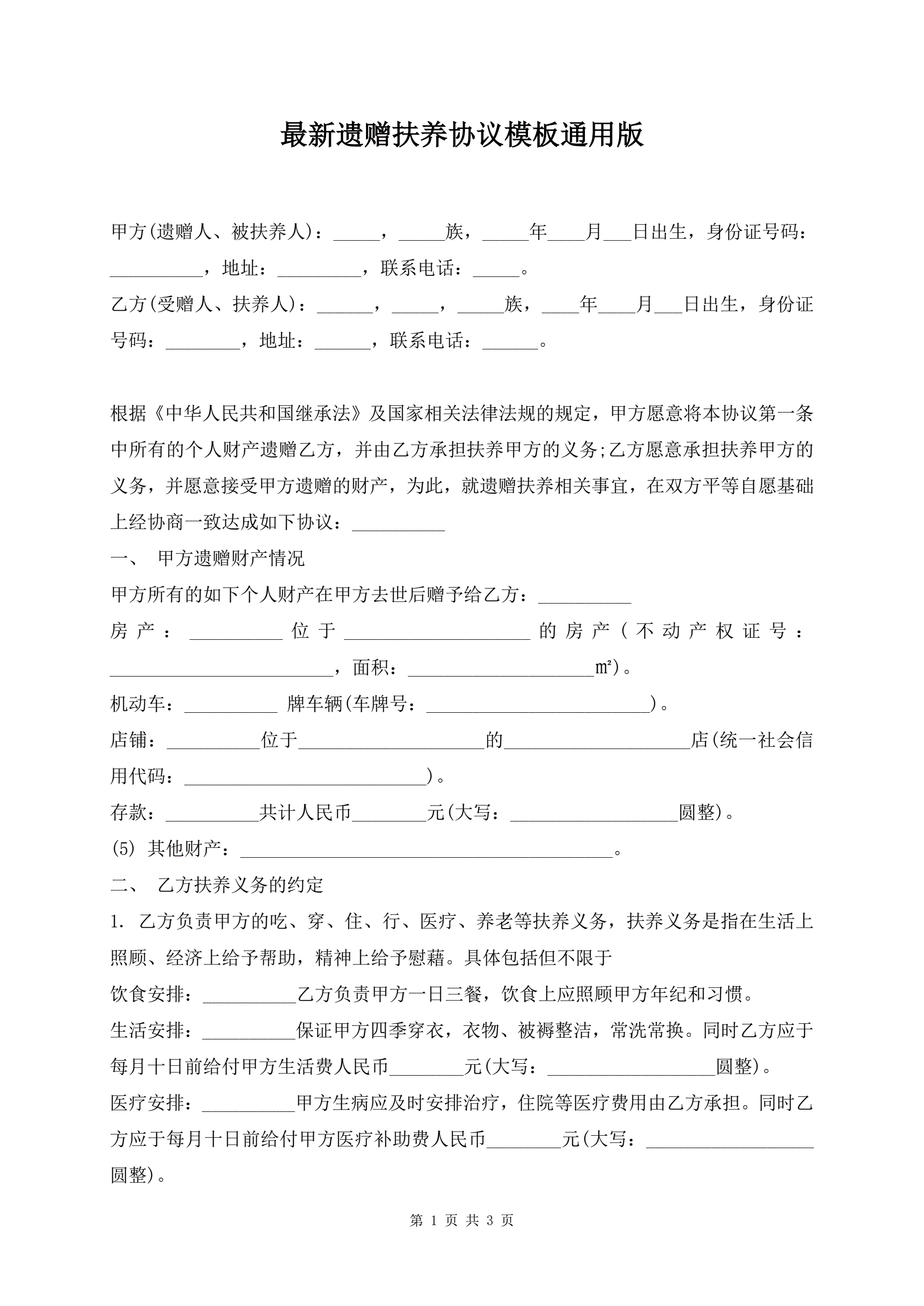 >最新遗赠扶养协议模板通用版