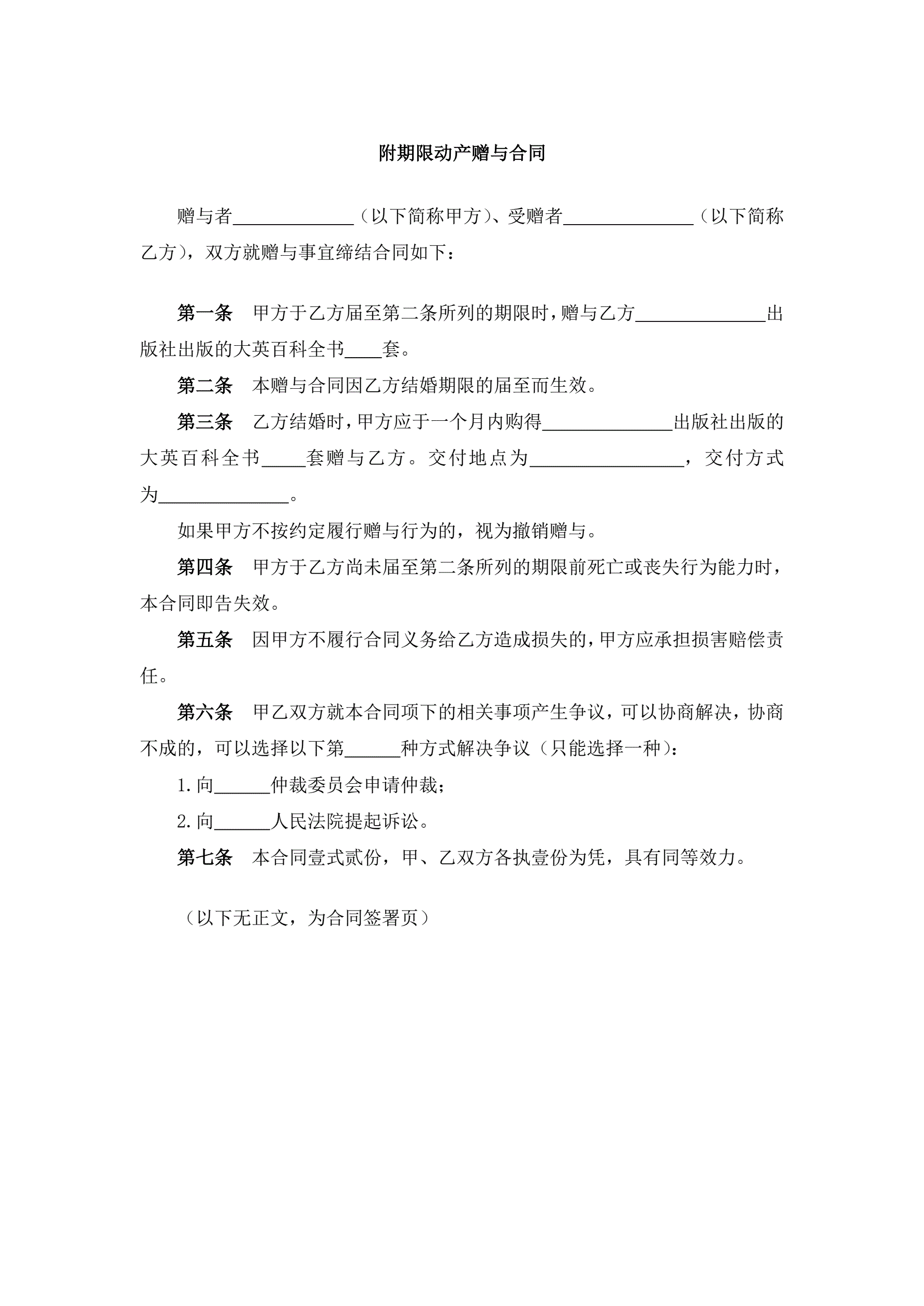 >附期限动产赠与合同