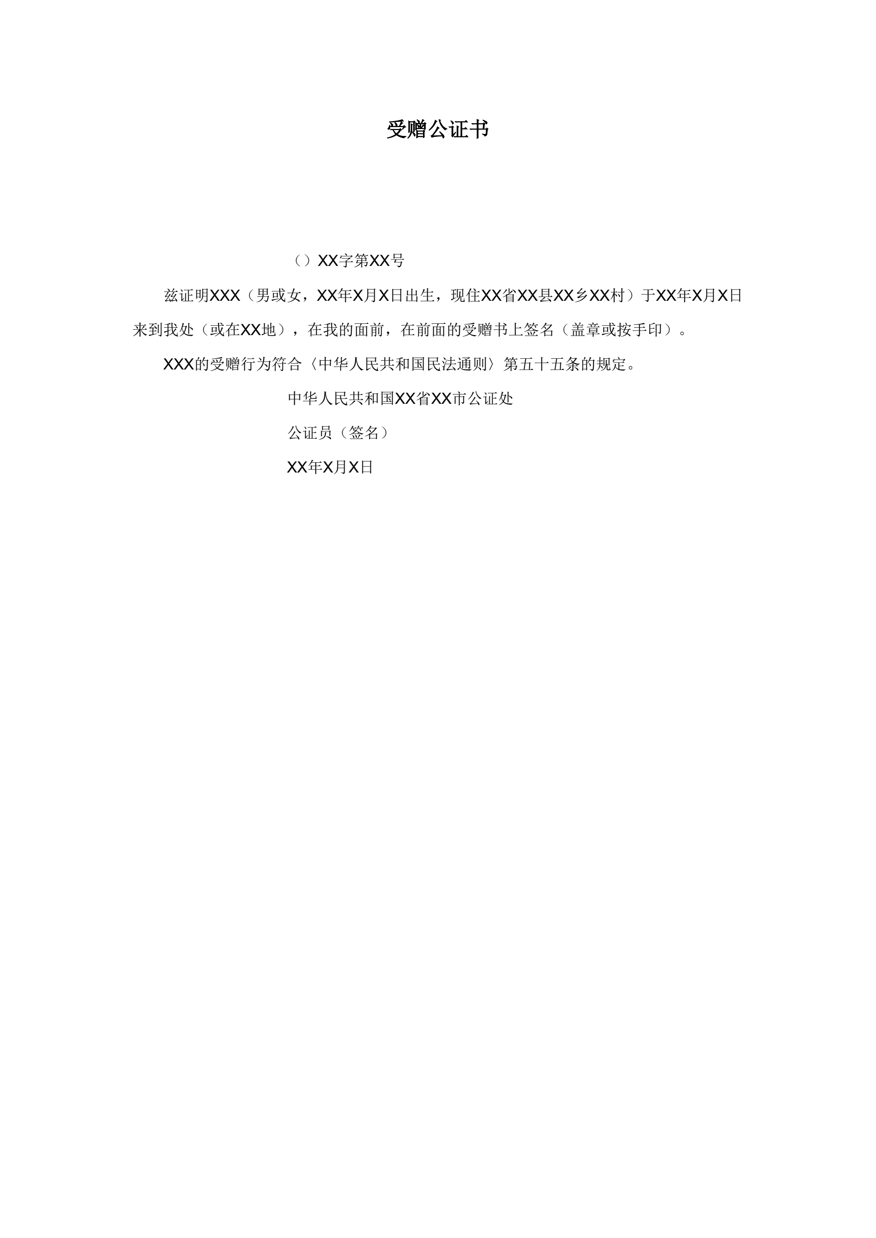 受赠公证书