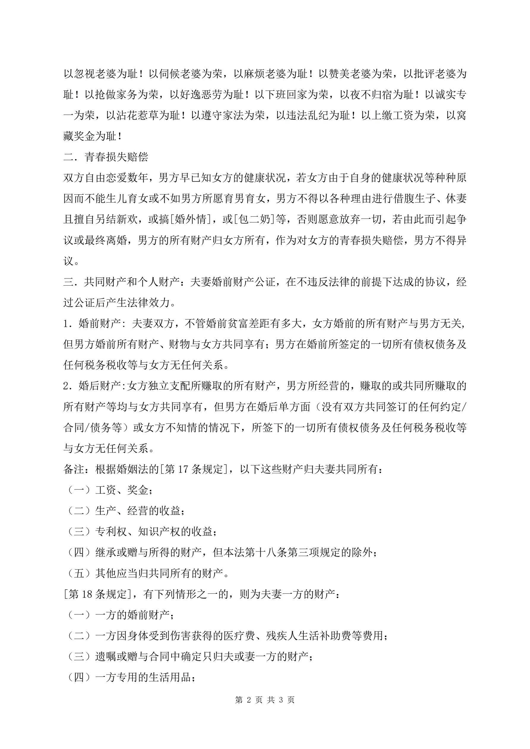 >新版婚姻协议约定合同