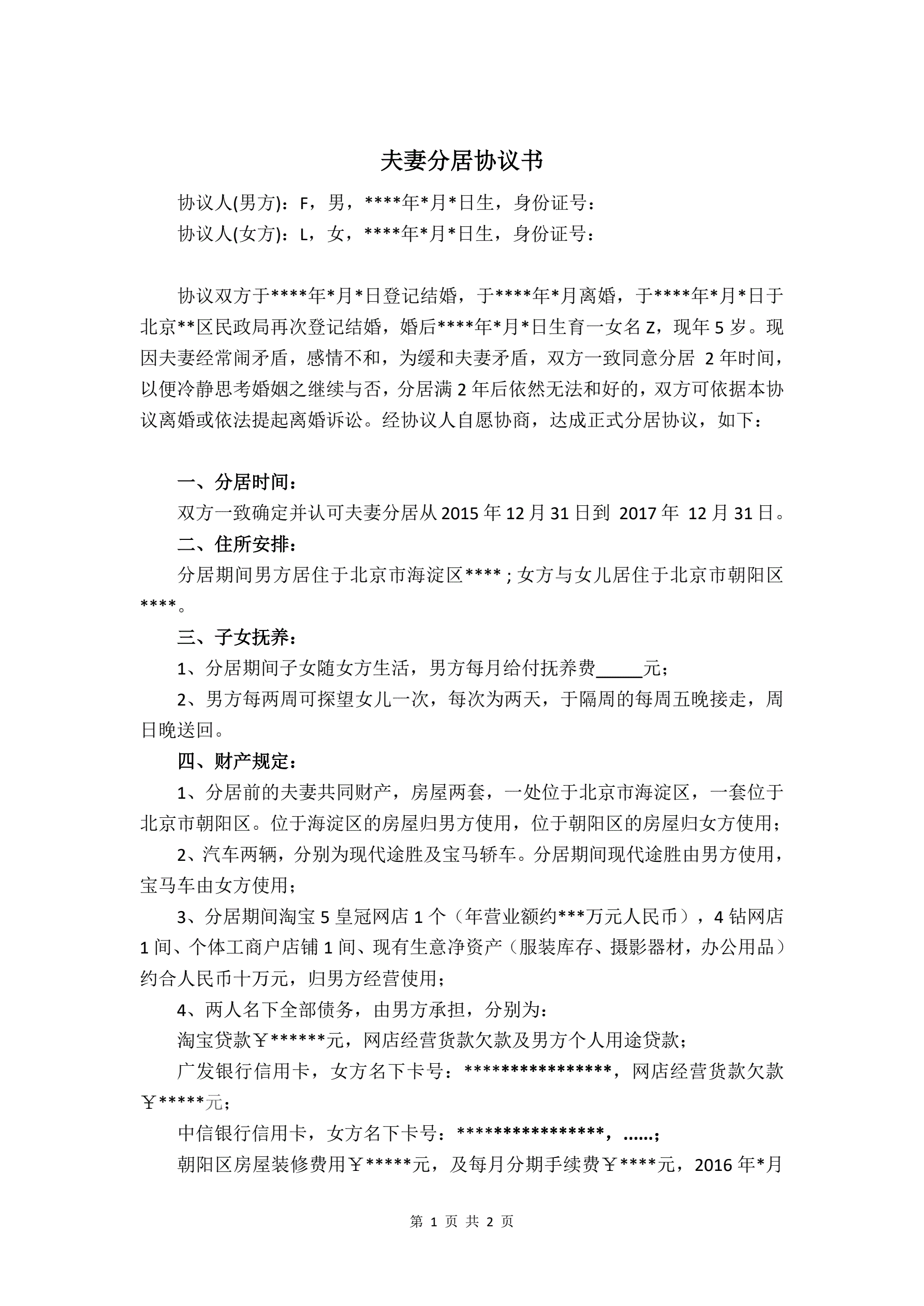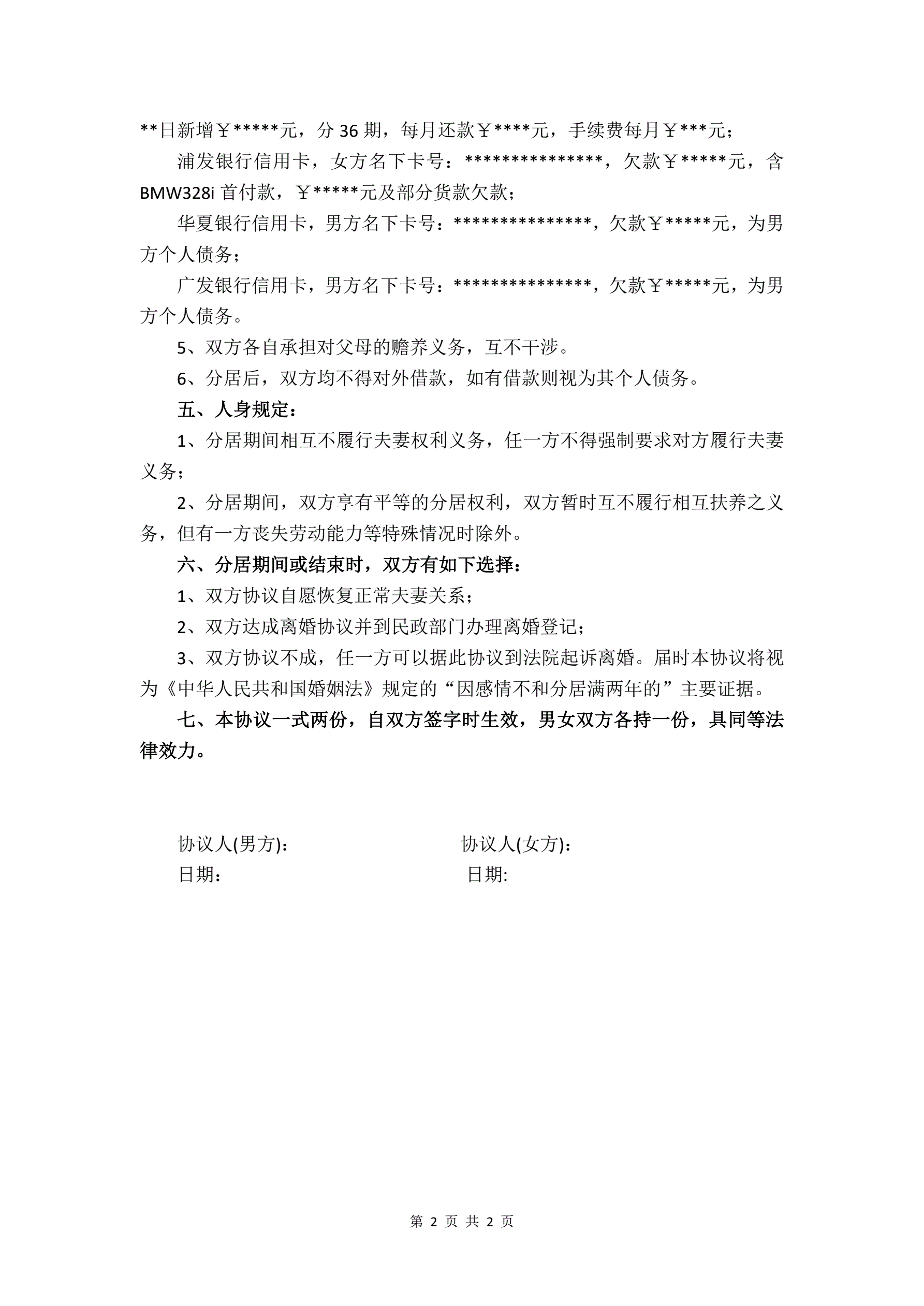 分居协议
