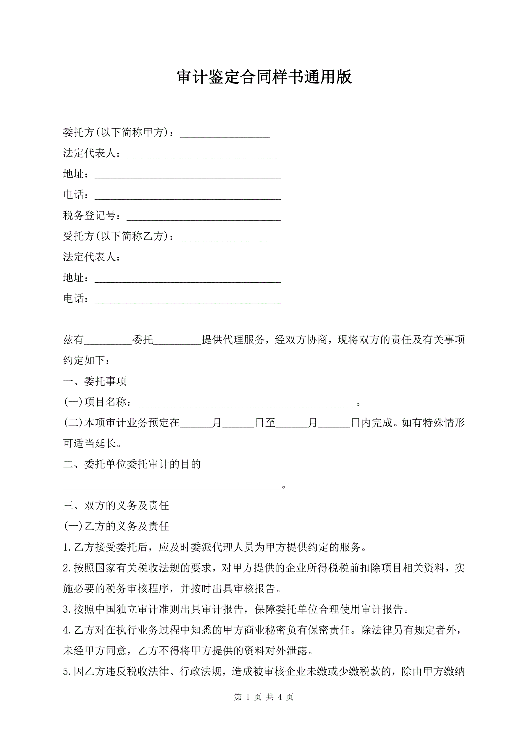 >审计鉴定合同样书通用版