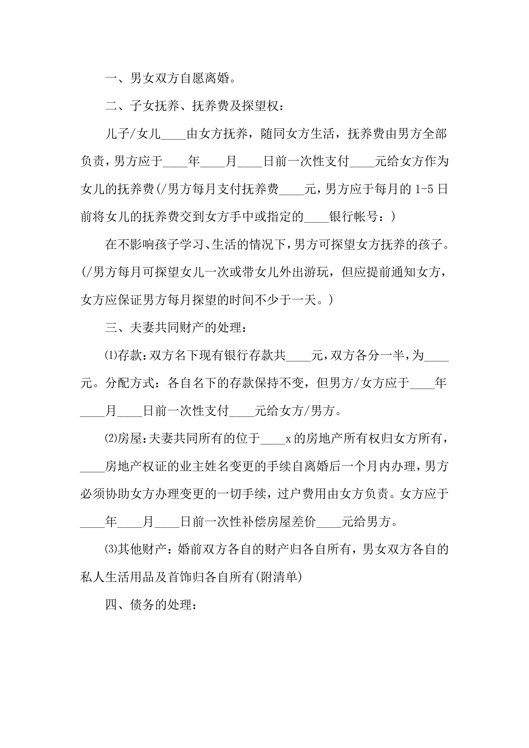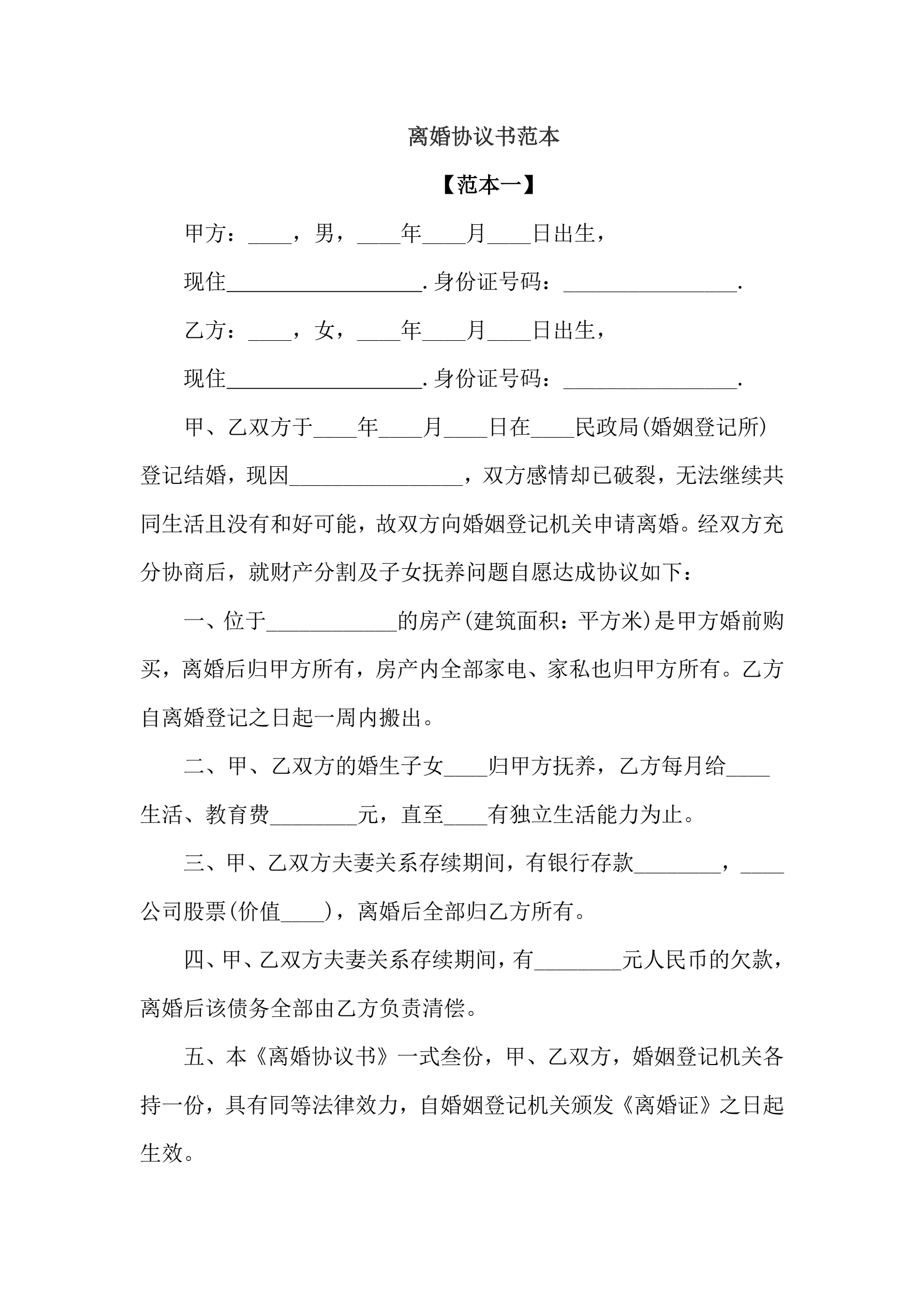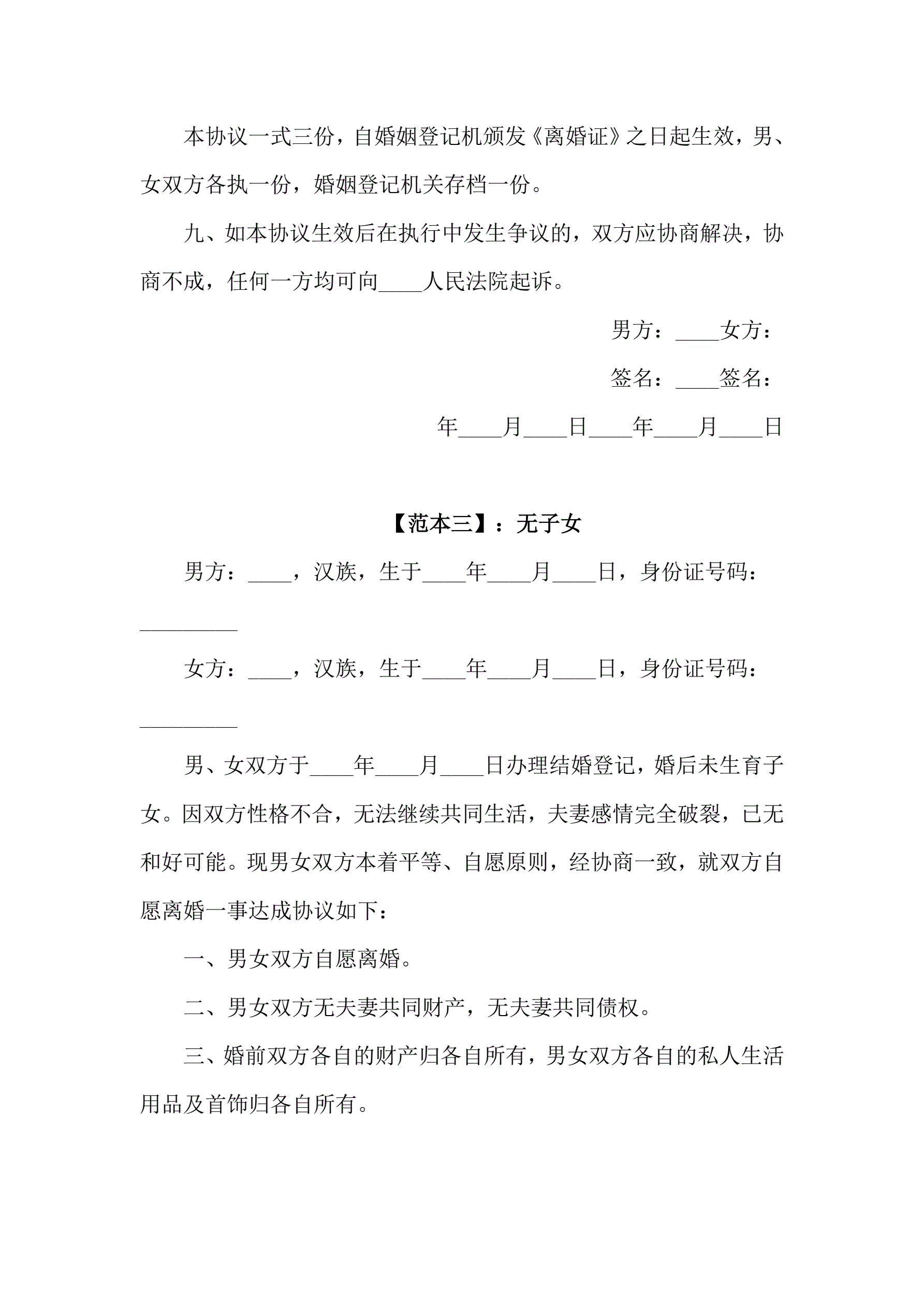 离婚协议书范本3份