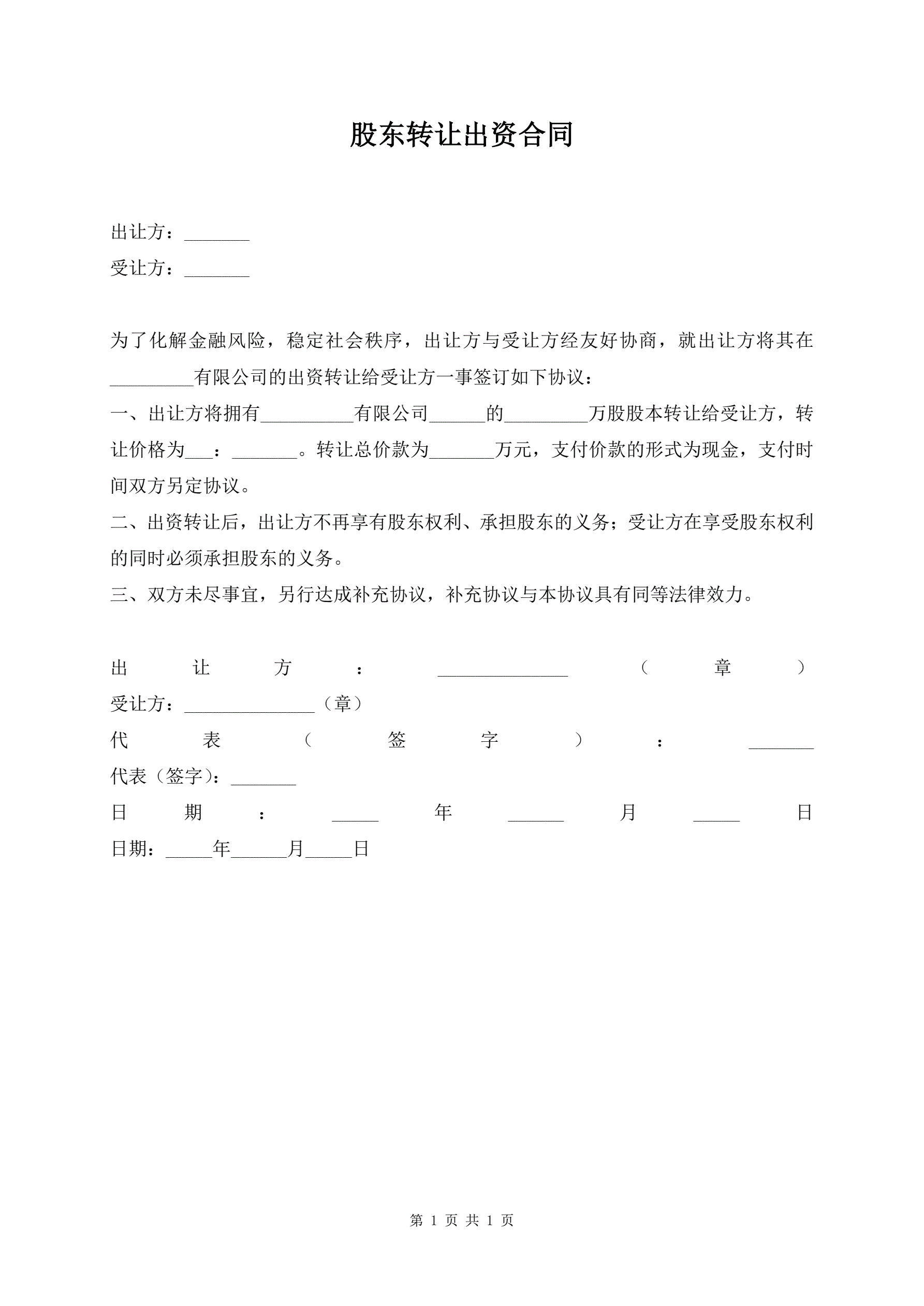 >股东转让出资合同