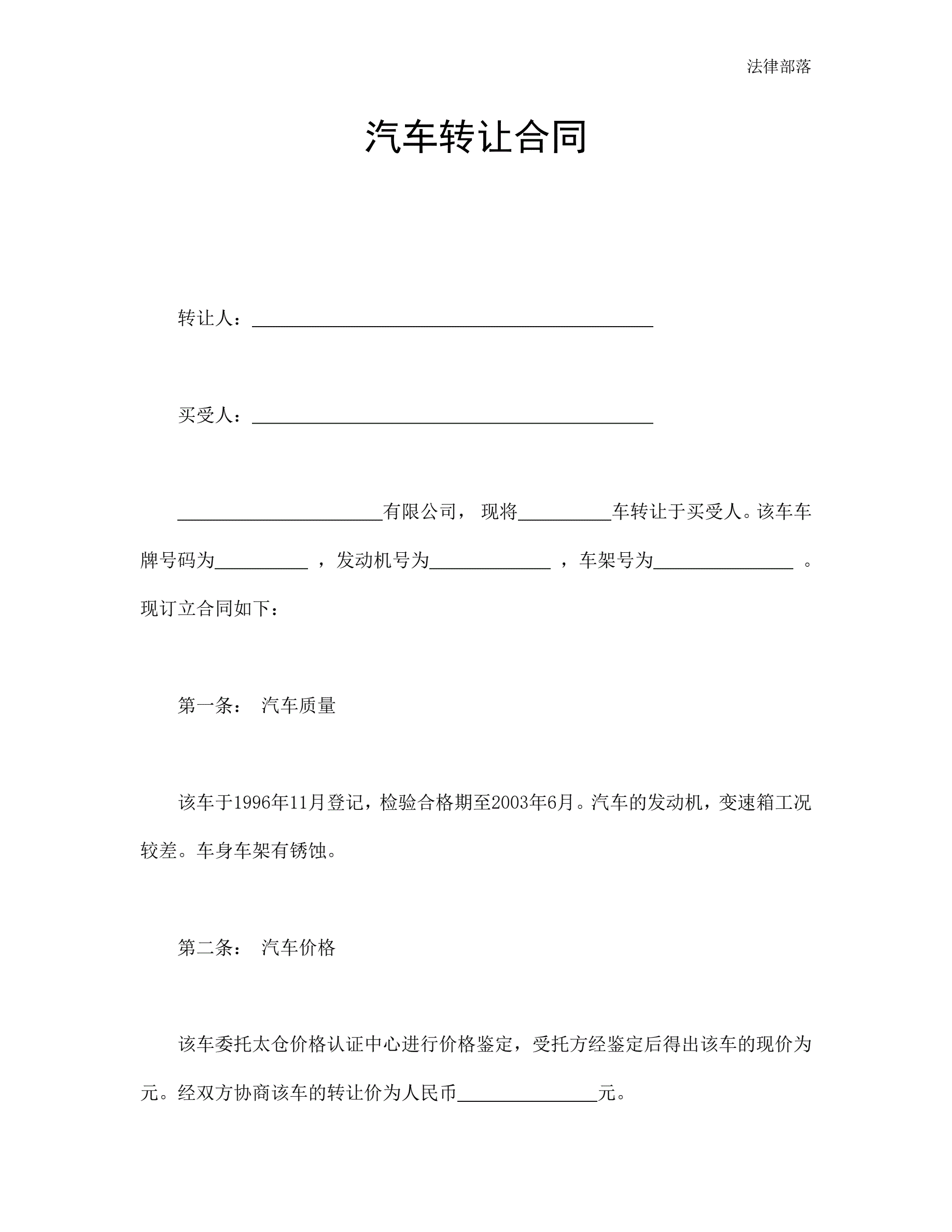 汽车转让合同