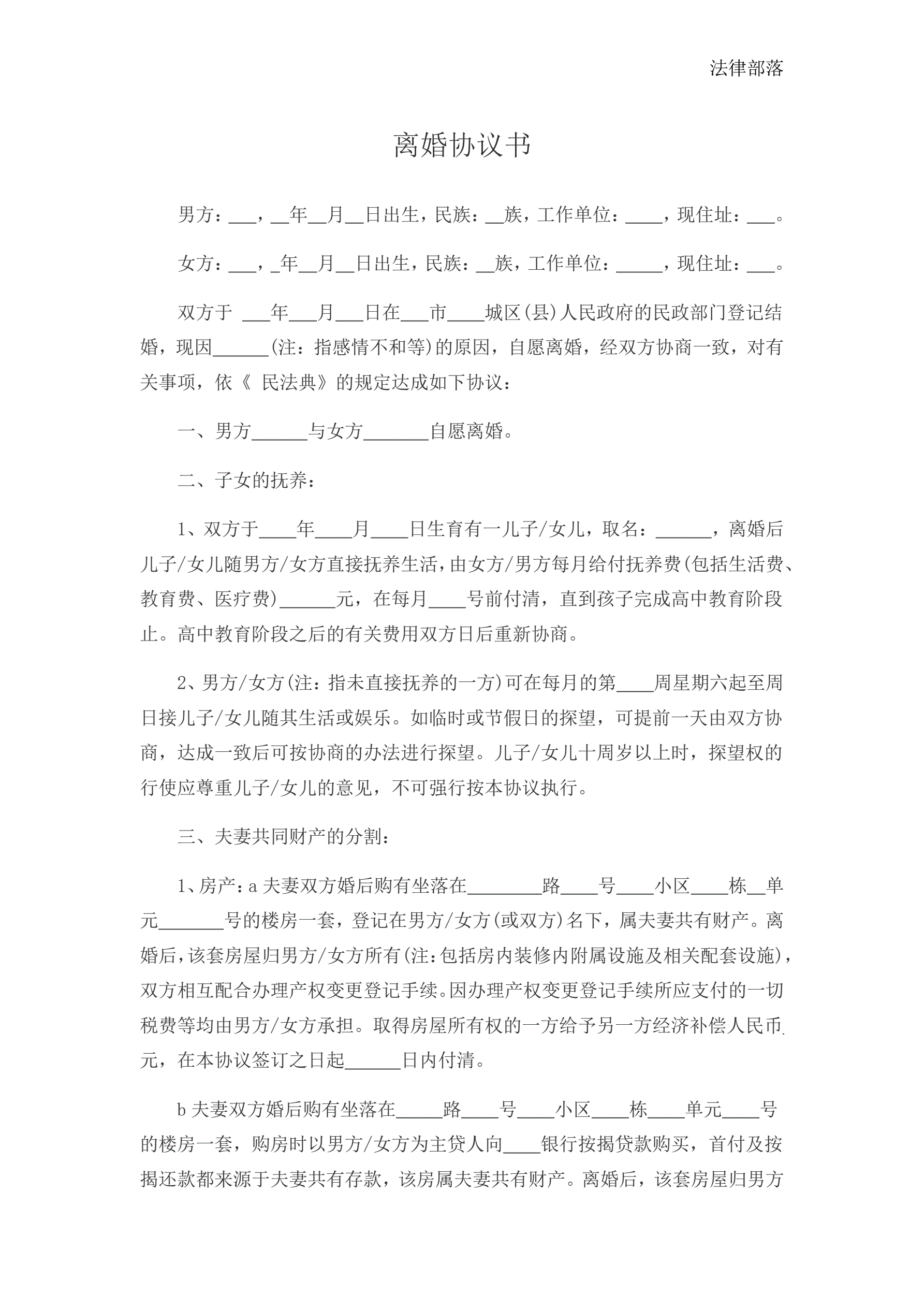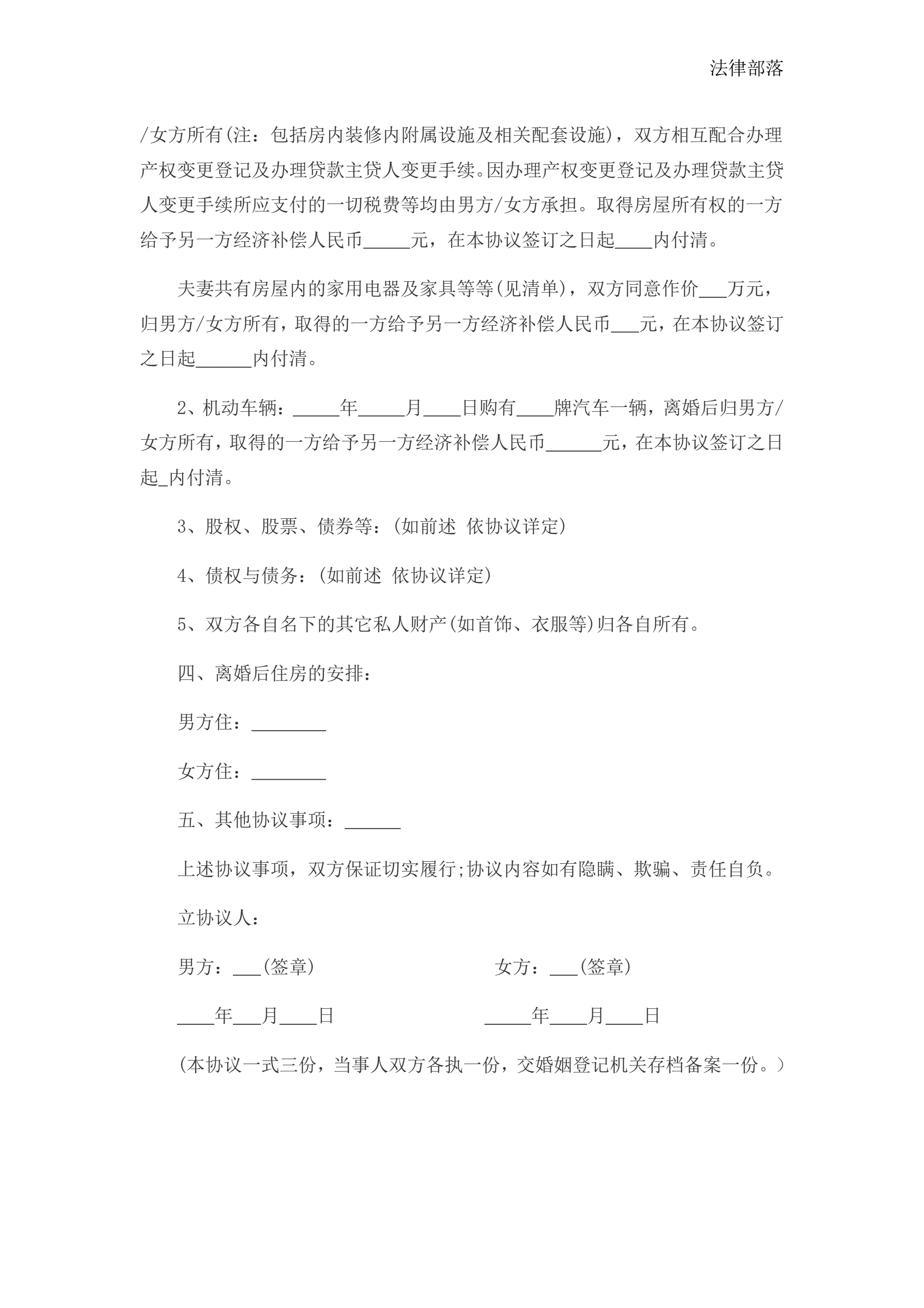 离婚协议书新版
