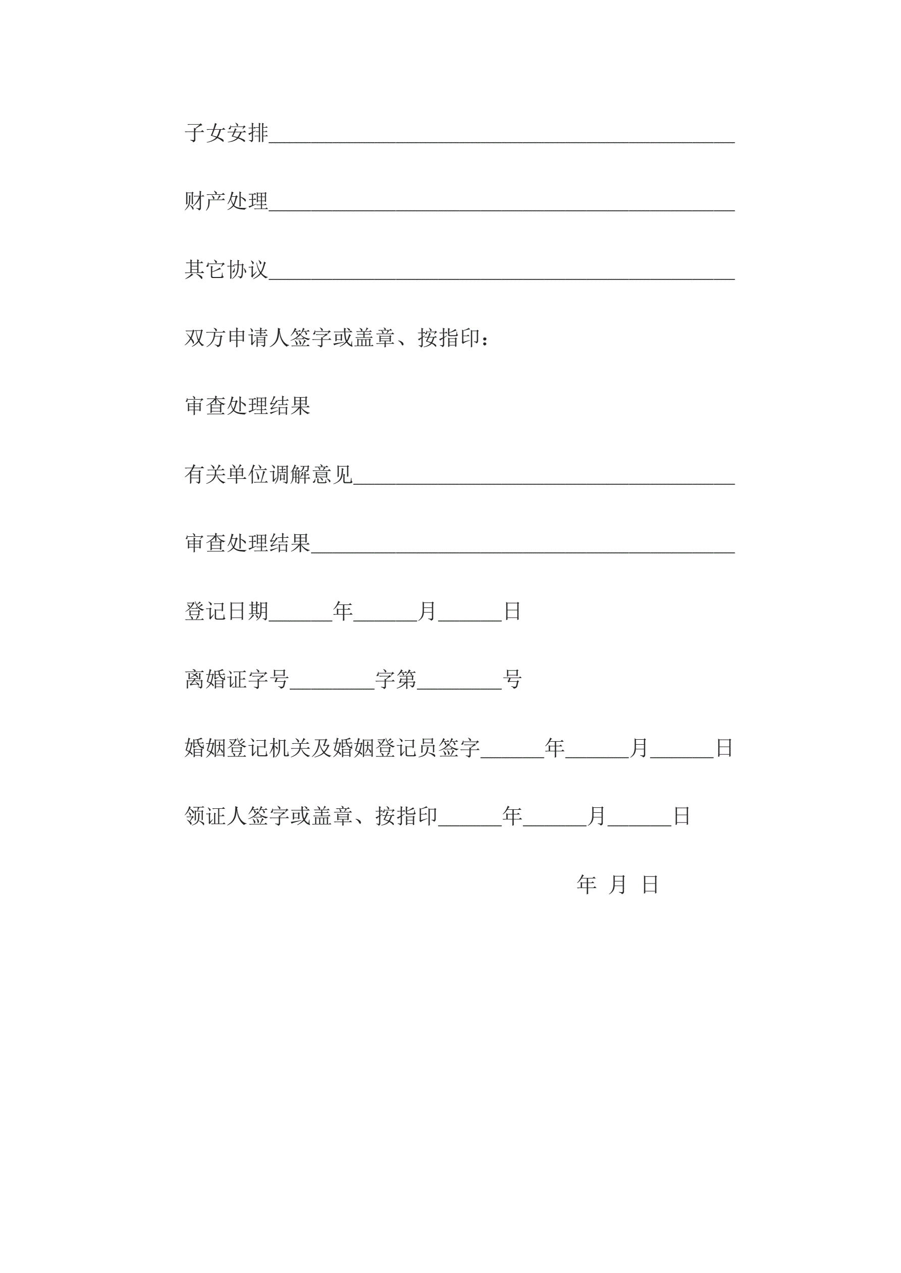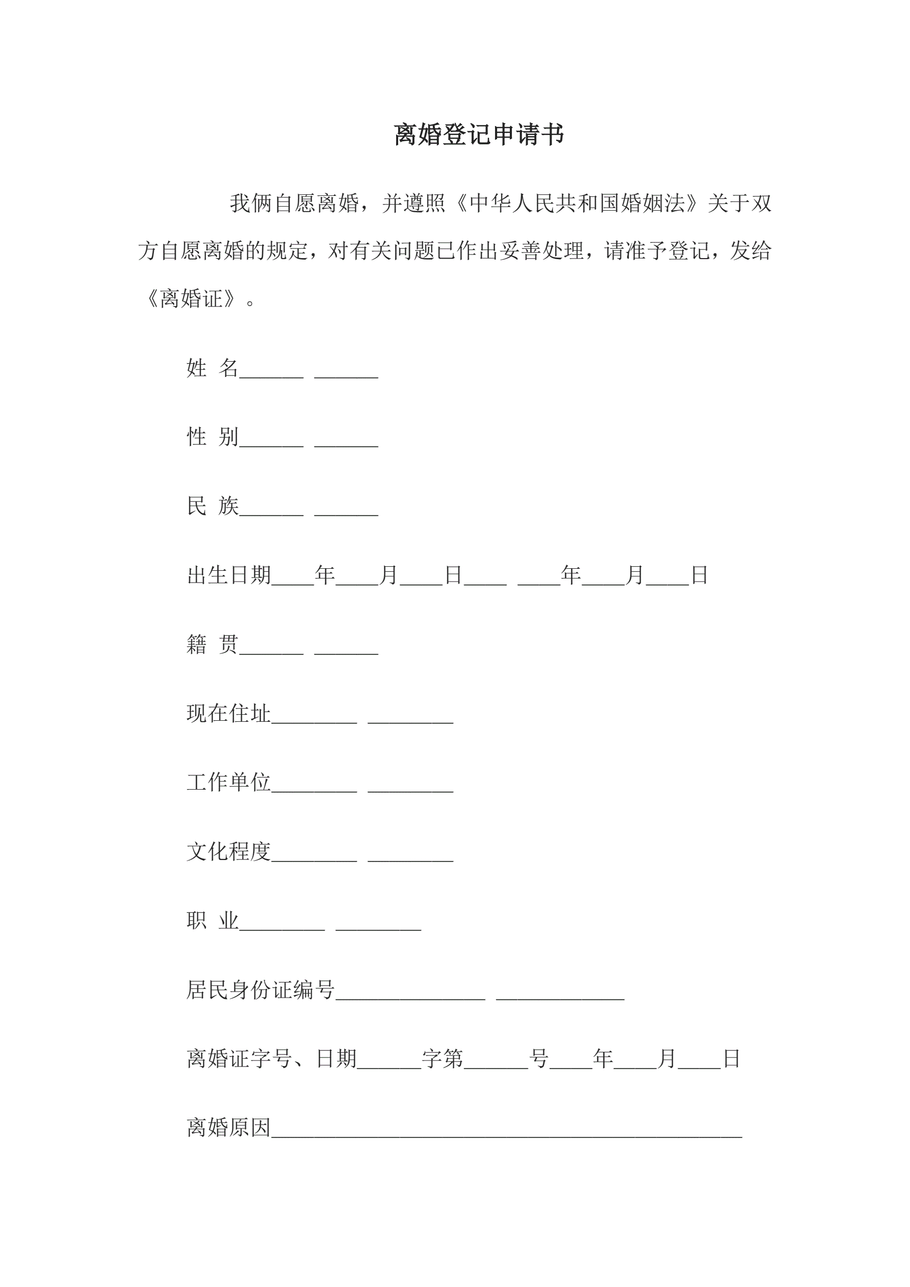 离婚登记申请书