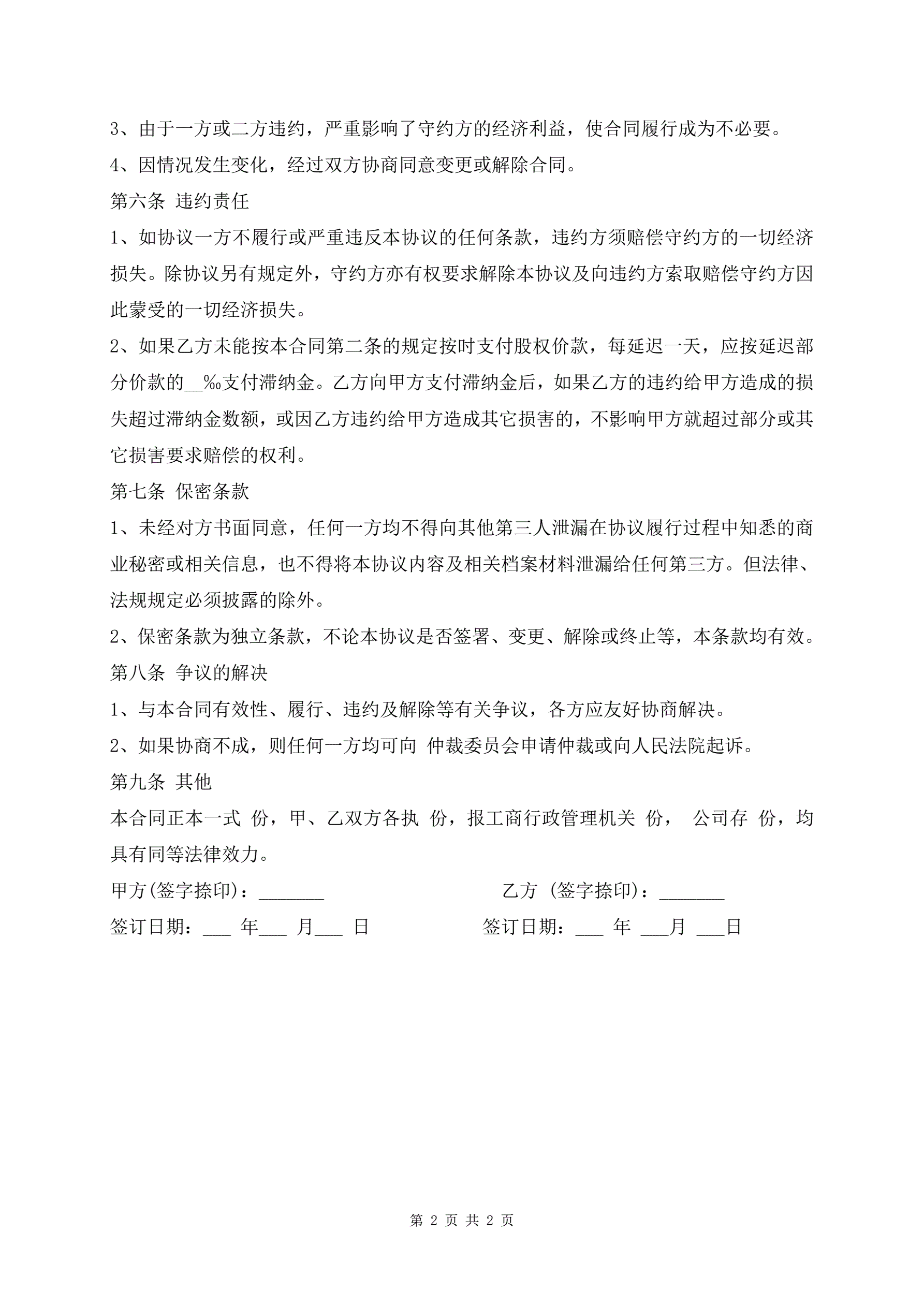 >股权分红转让书范本最新模板