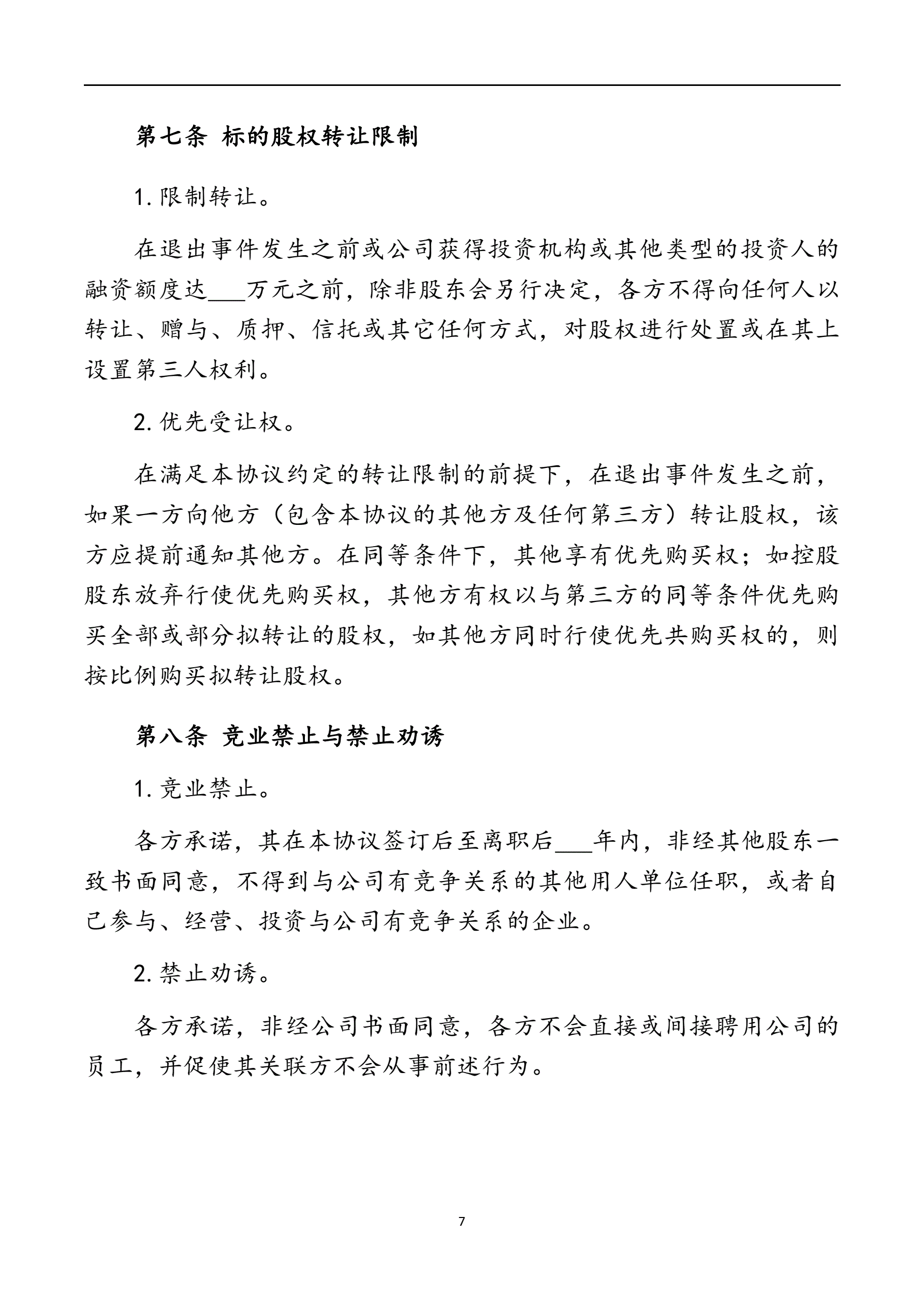 >股东出资协议(股权激励和限制)(指导版)