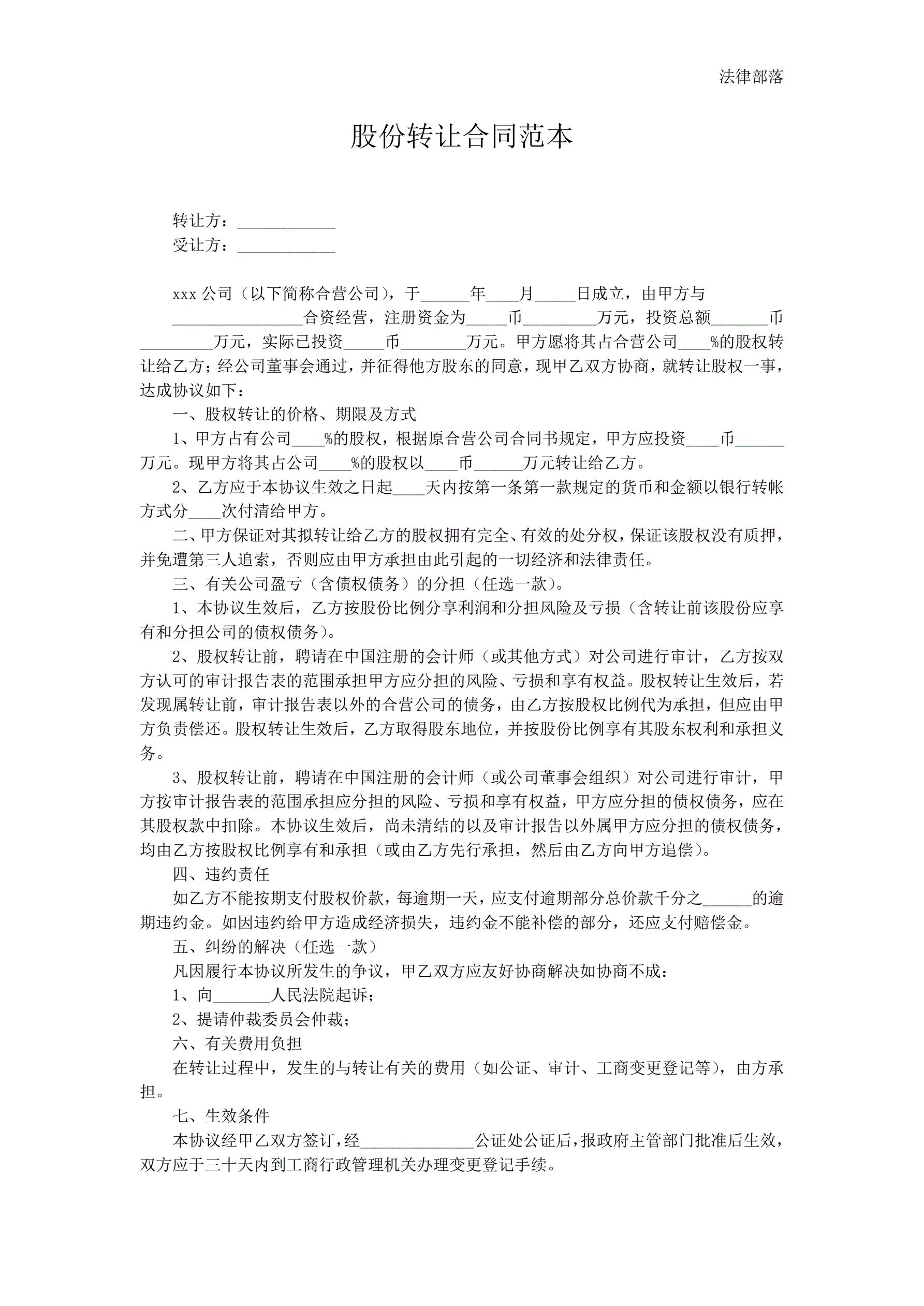 股份转让合同范本