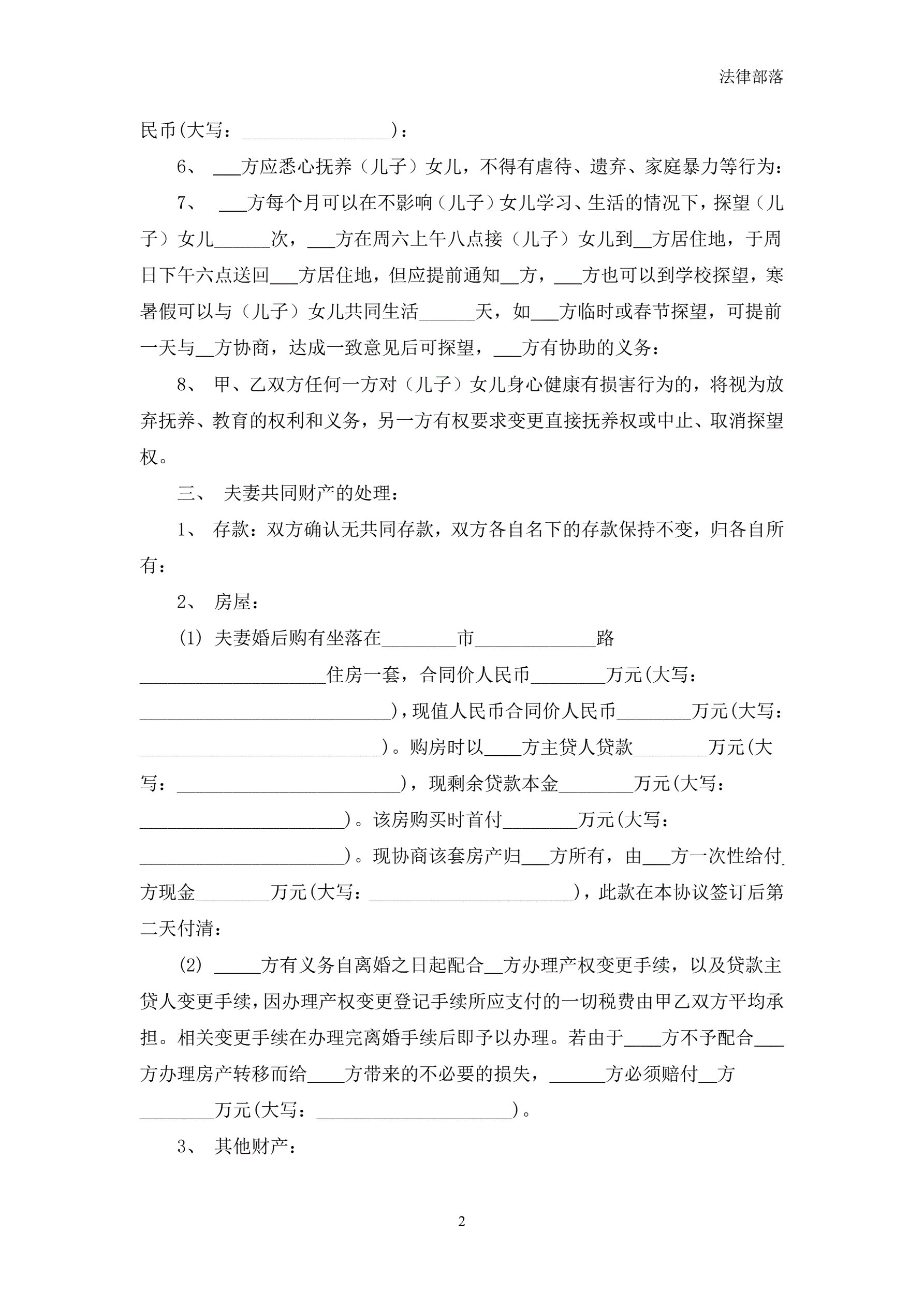 通用离婚协议书
