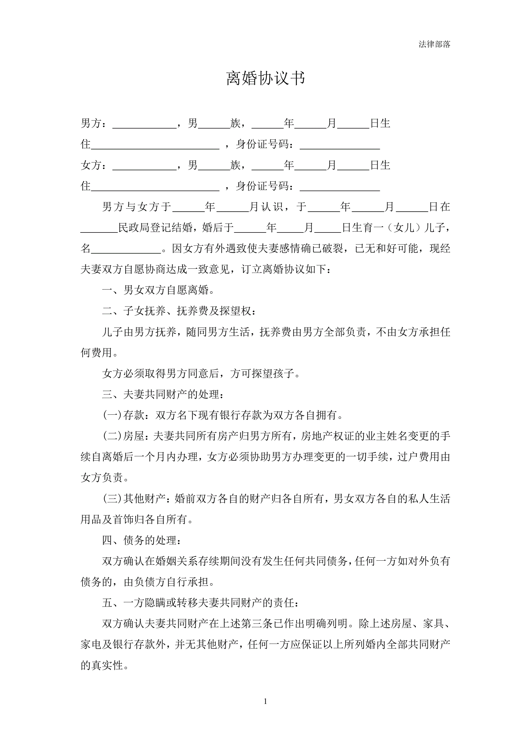 离婚协议书(最新)