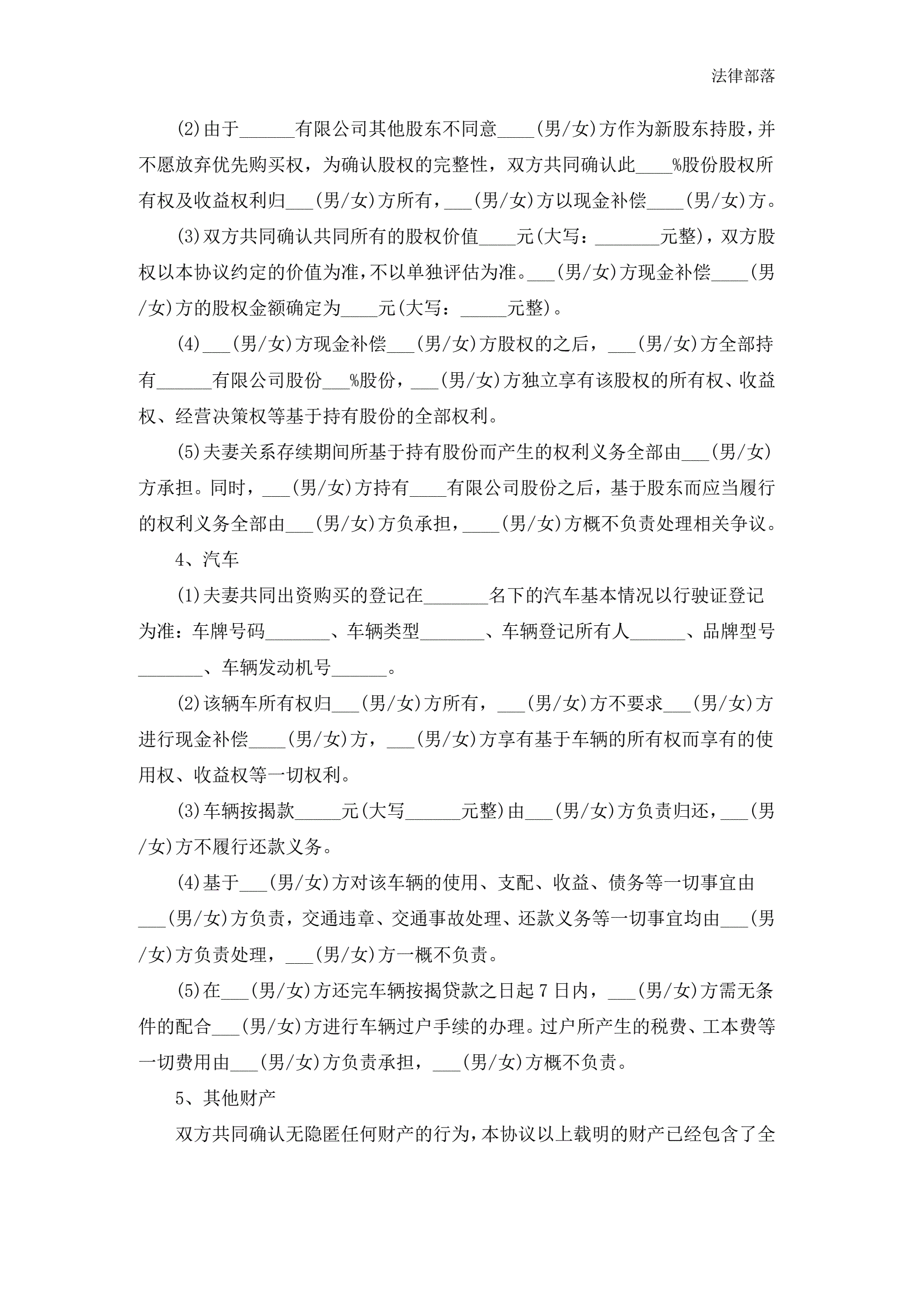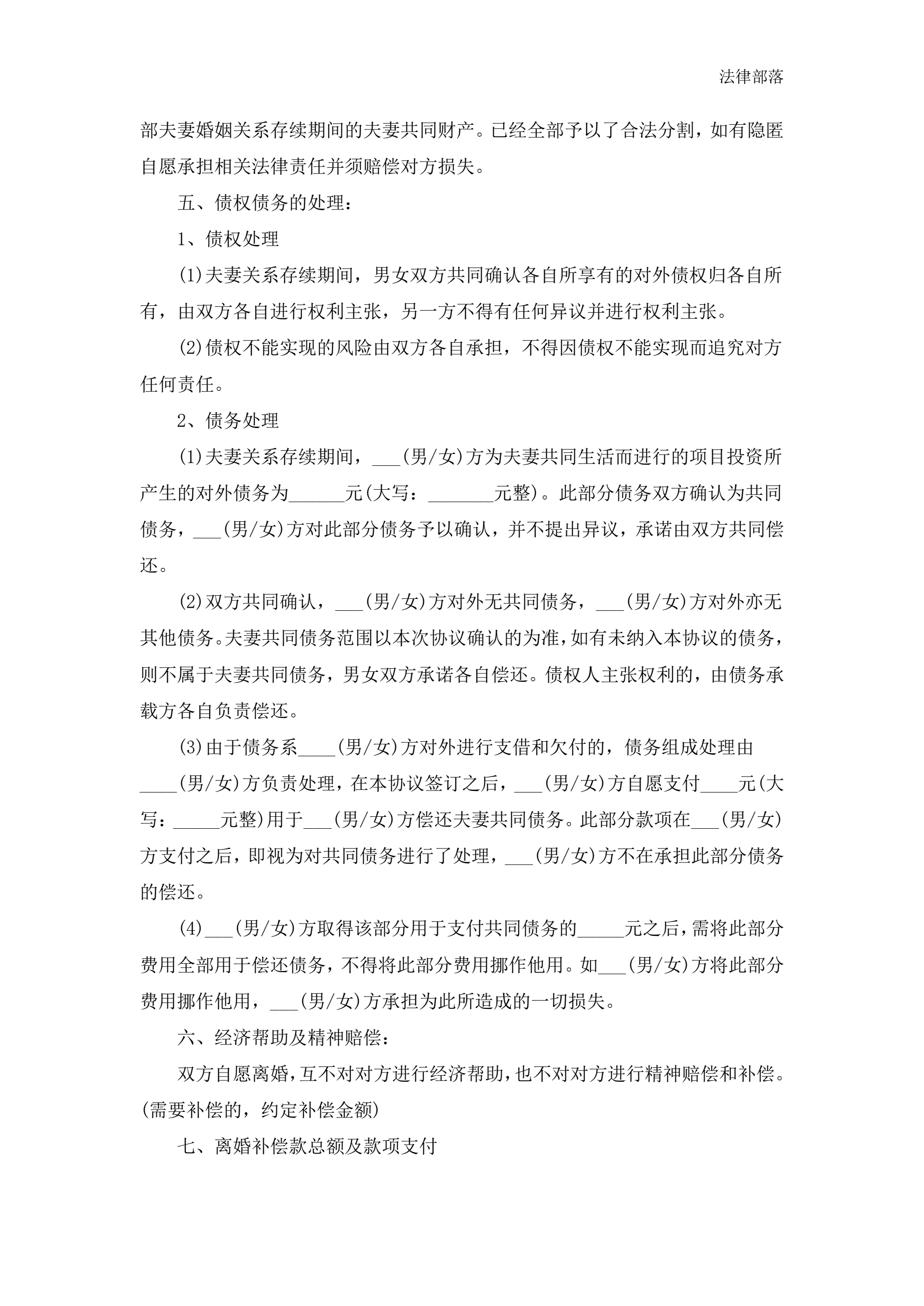 离婚协议书模板最新版