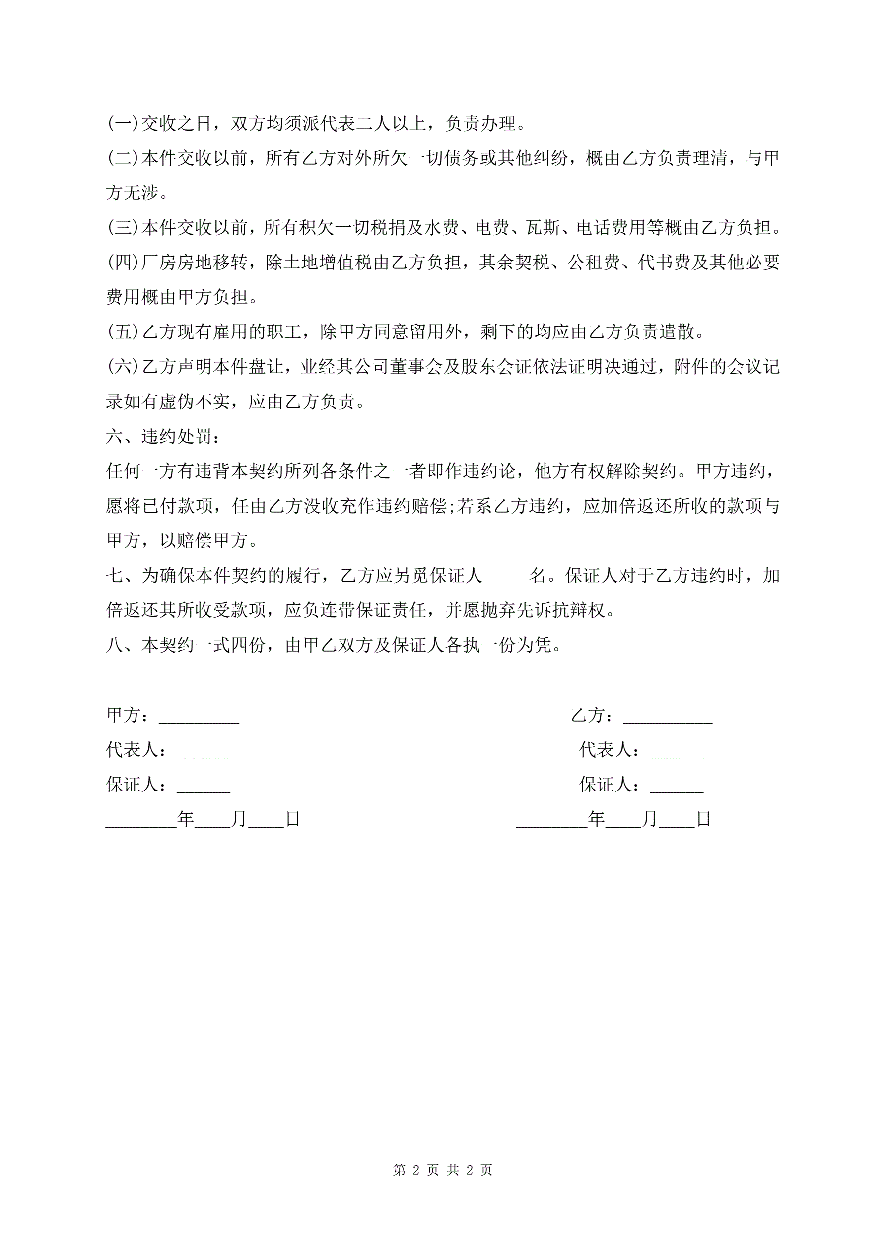 >通用工业厂房转让协议书