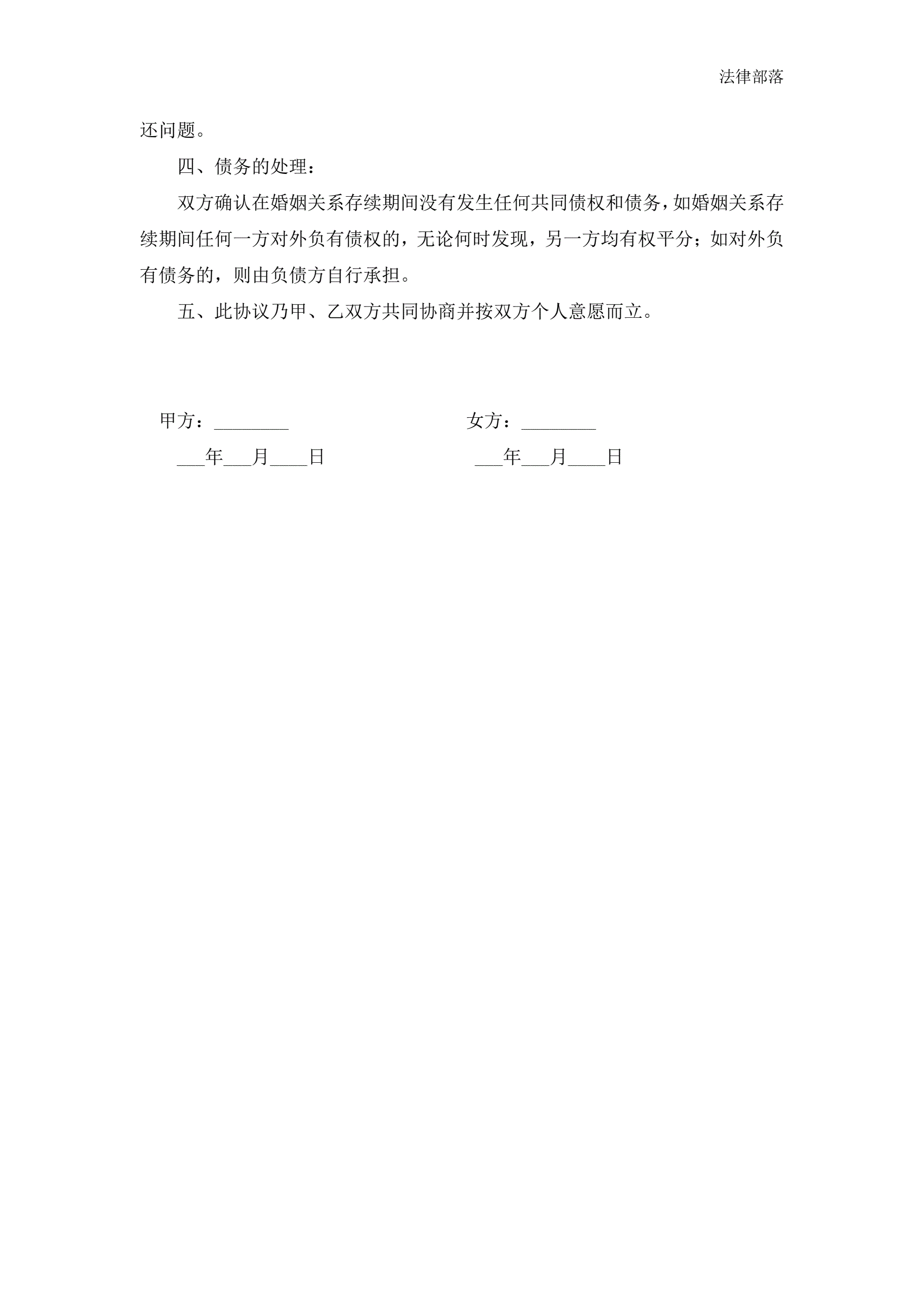 >夫妻双方自愿离婚协议书范本三