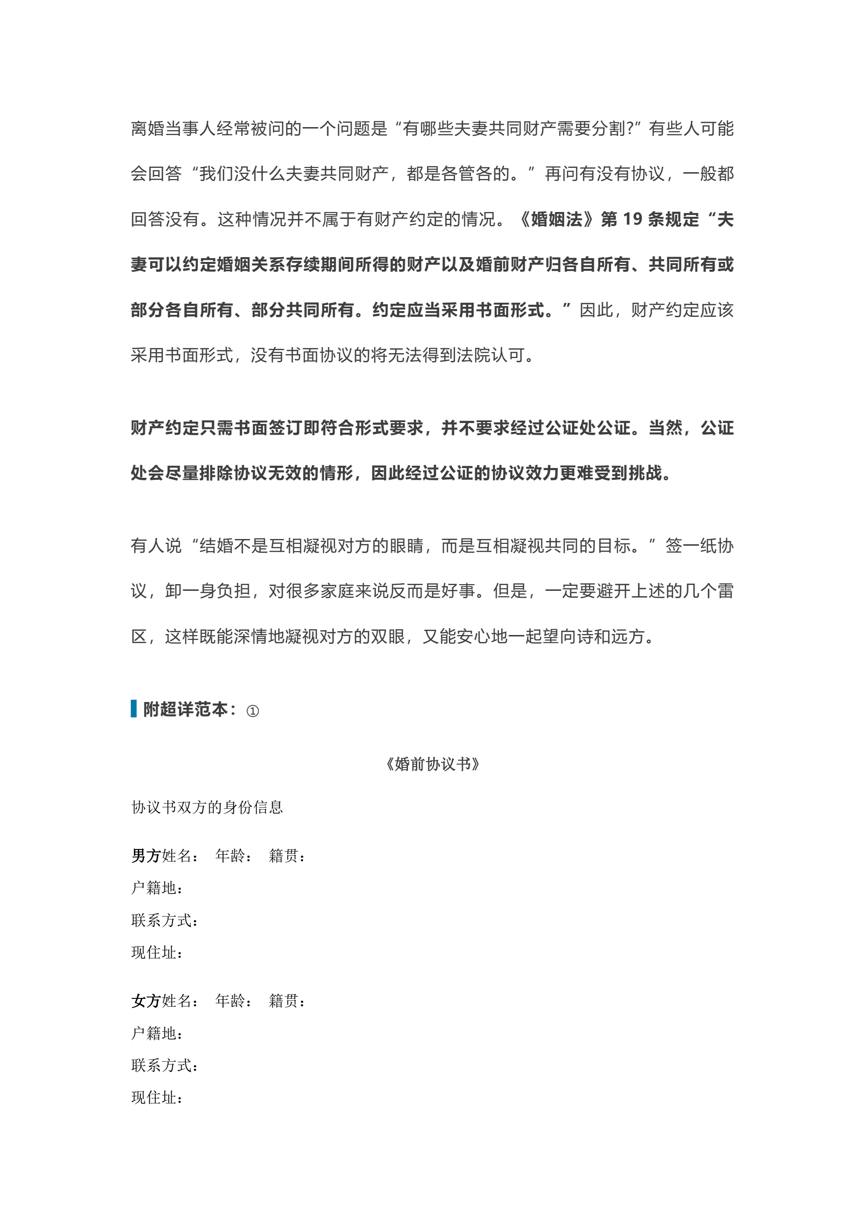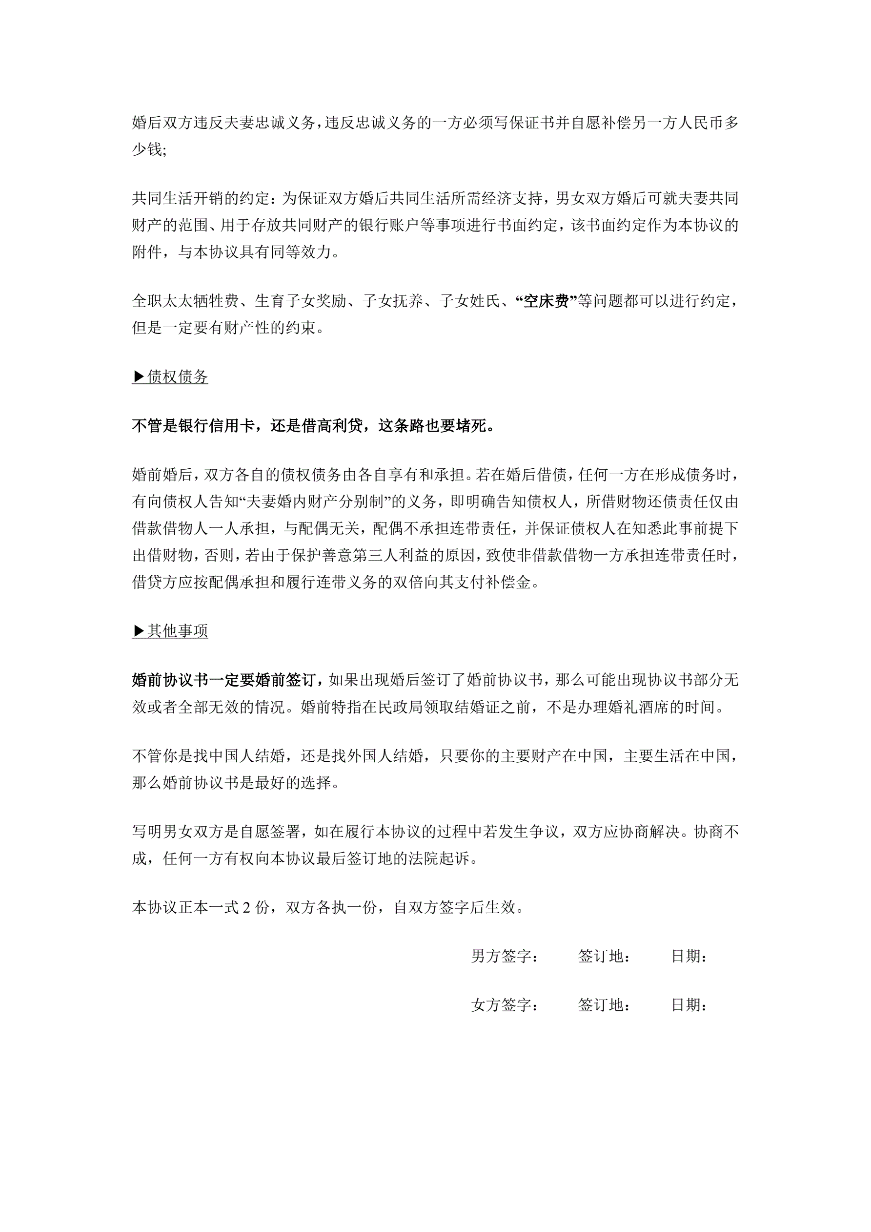 婚前协议范本