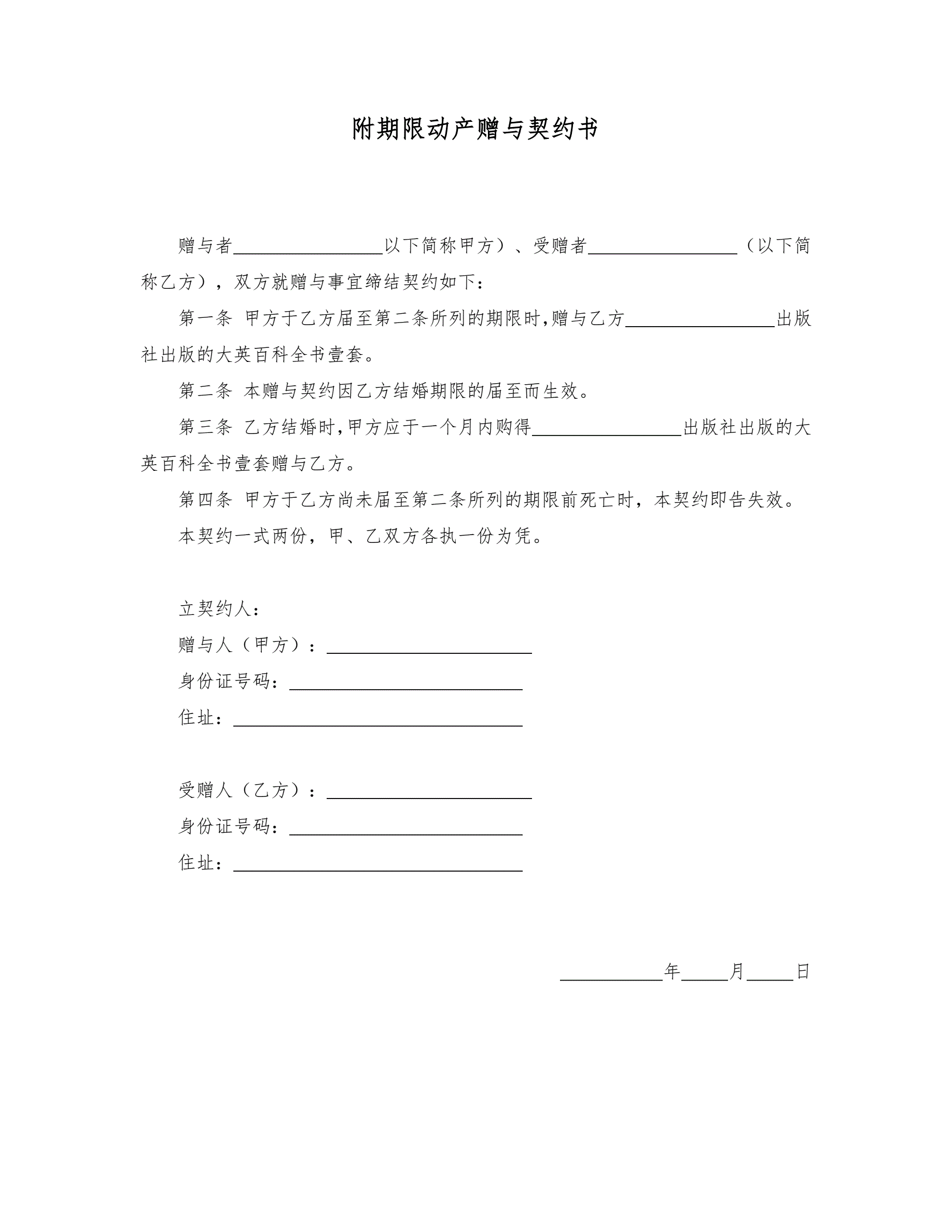 附期限动产赠与契约书