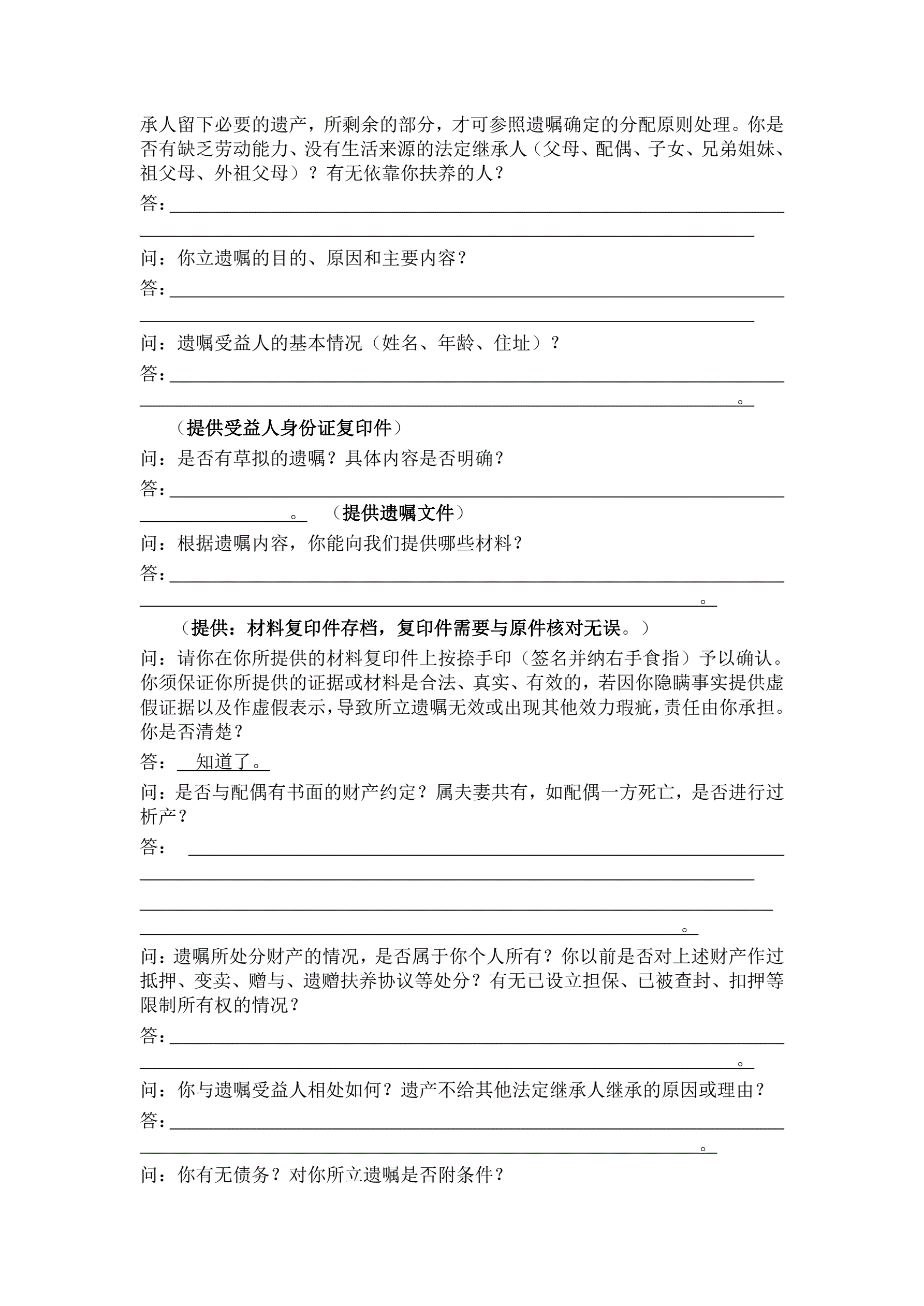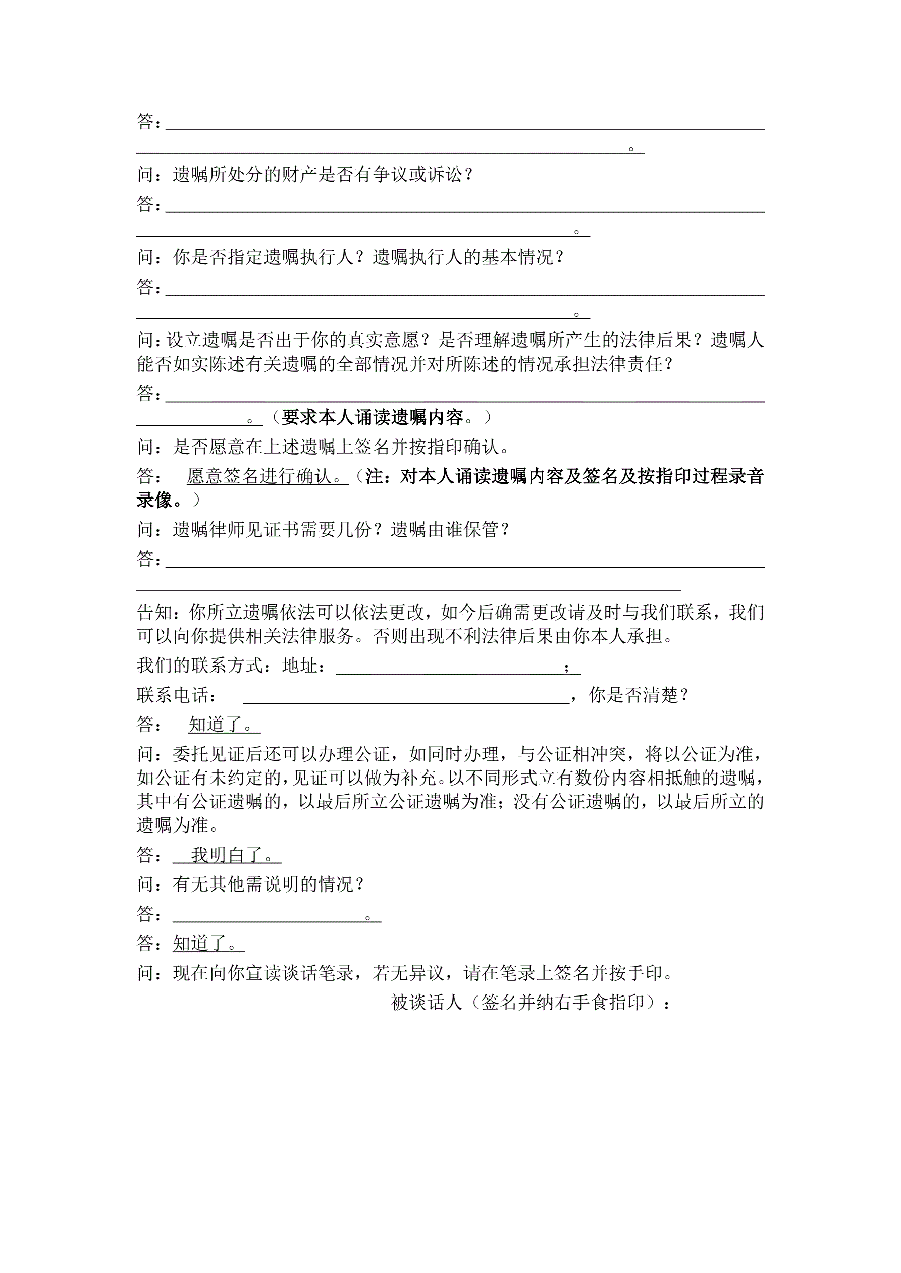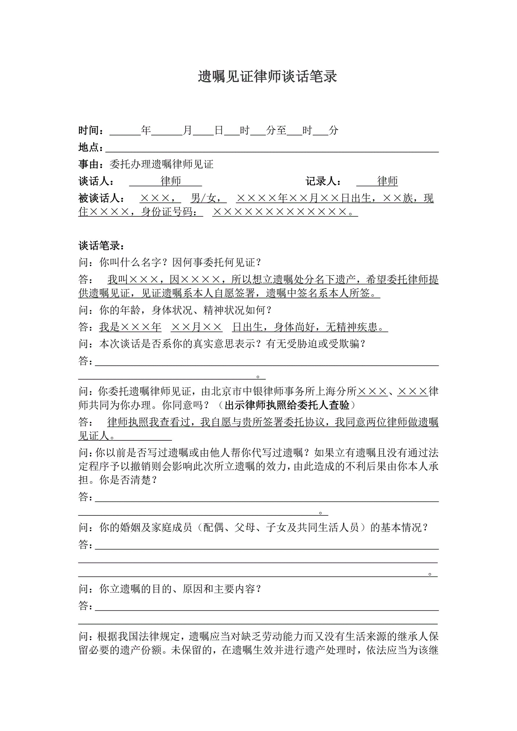 合同名称:遗嘱见证律师谈话笔录