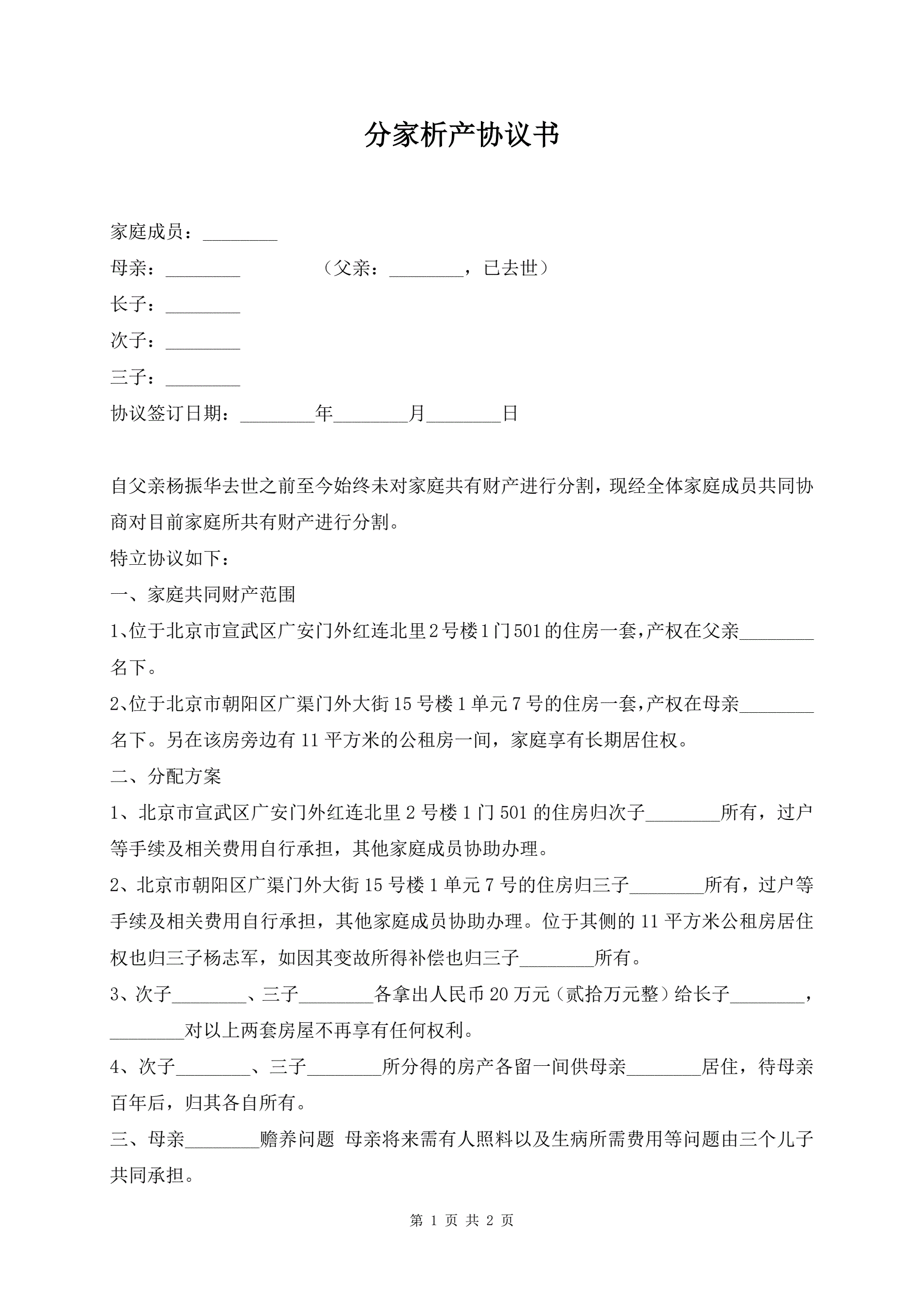 分家析产协议书