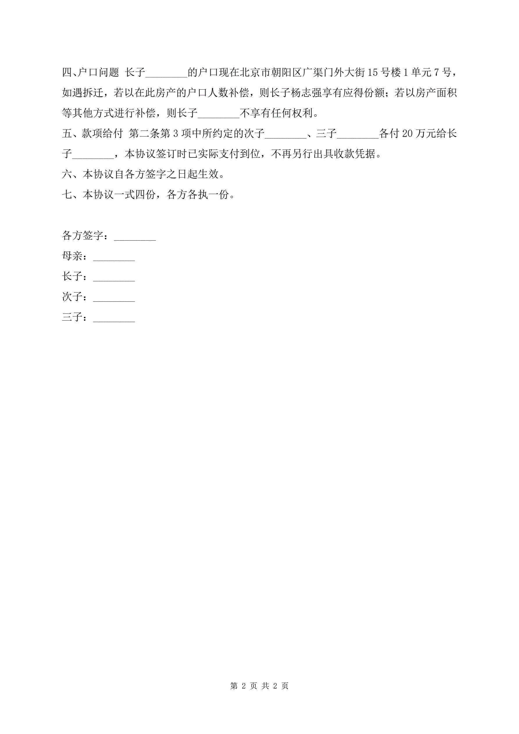>分家析产协议书