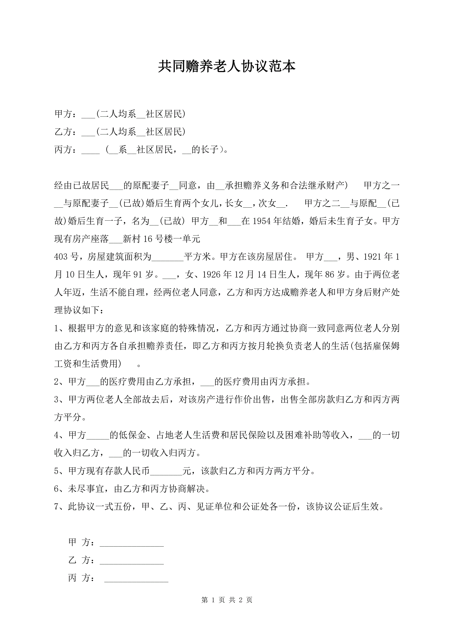 >共同赡养老人协议范本