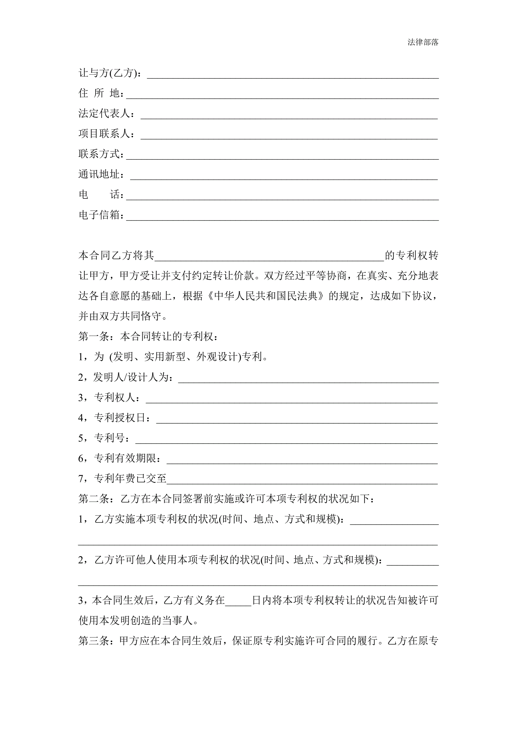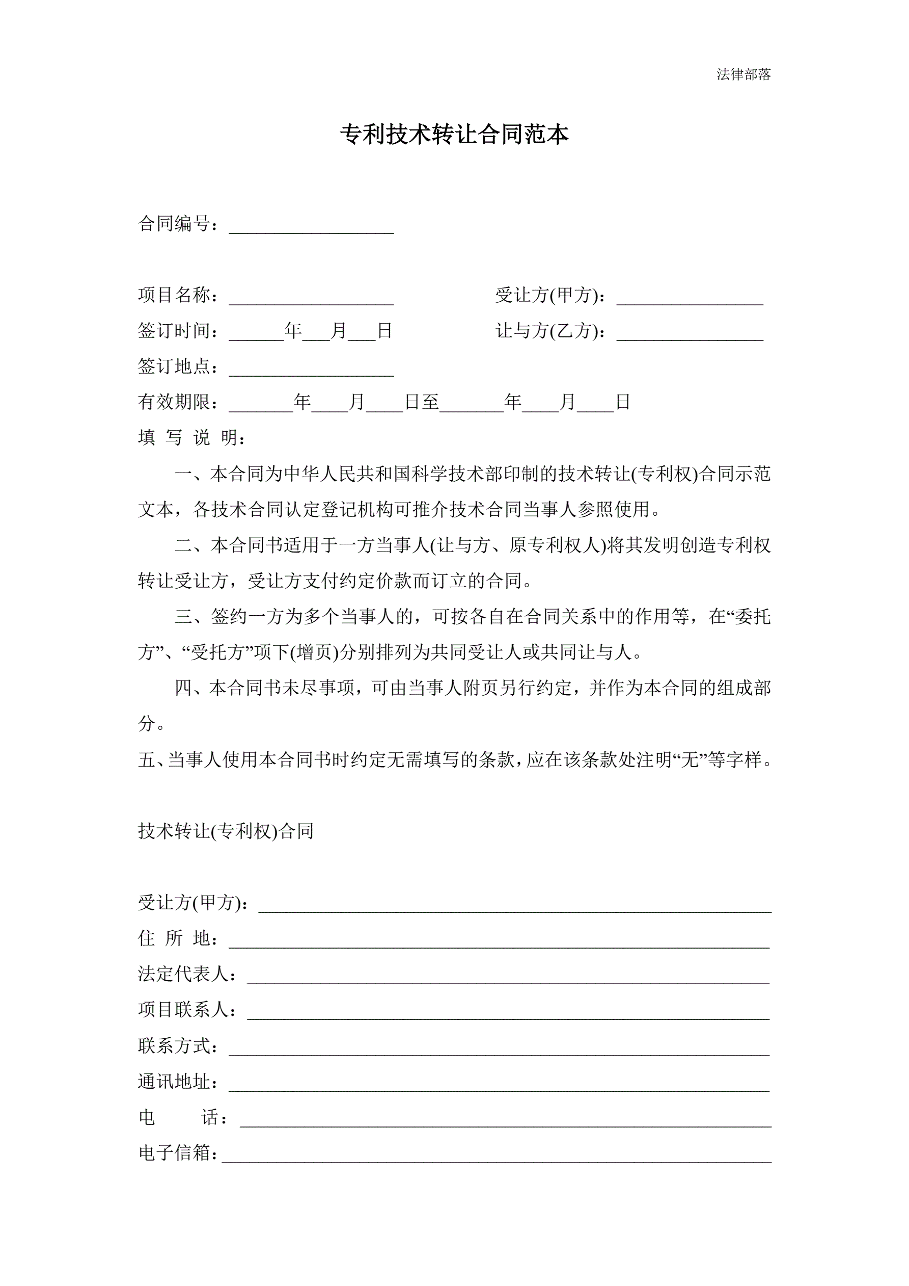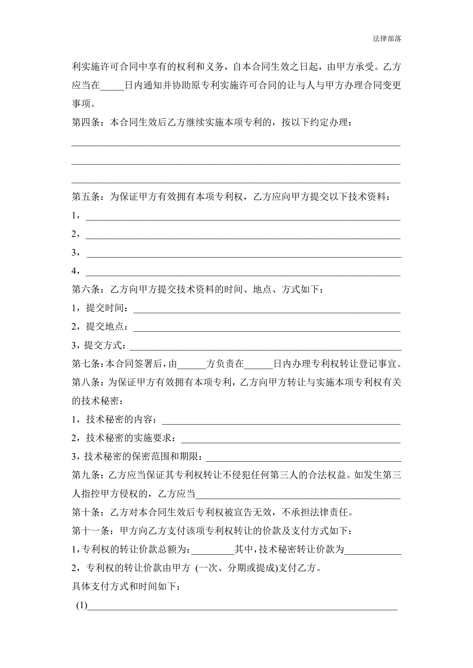 专利技术转让合同范本