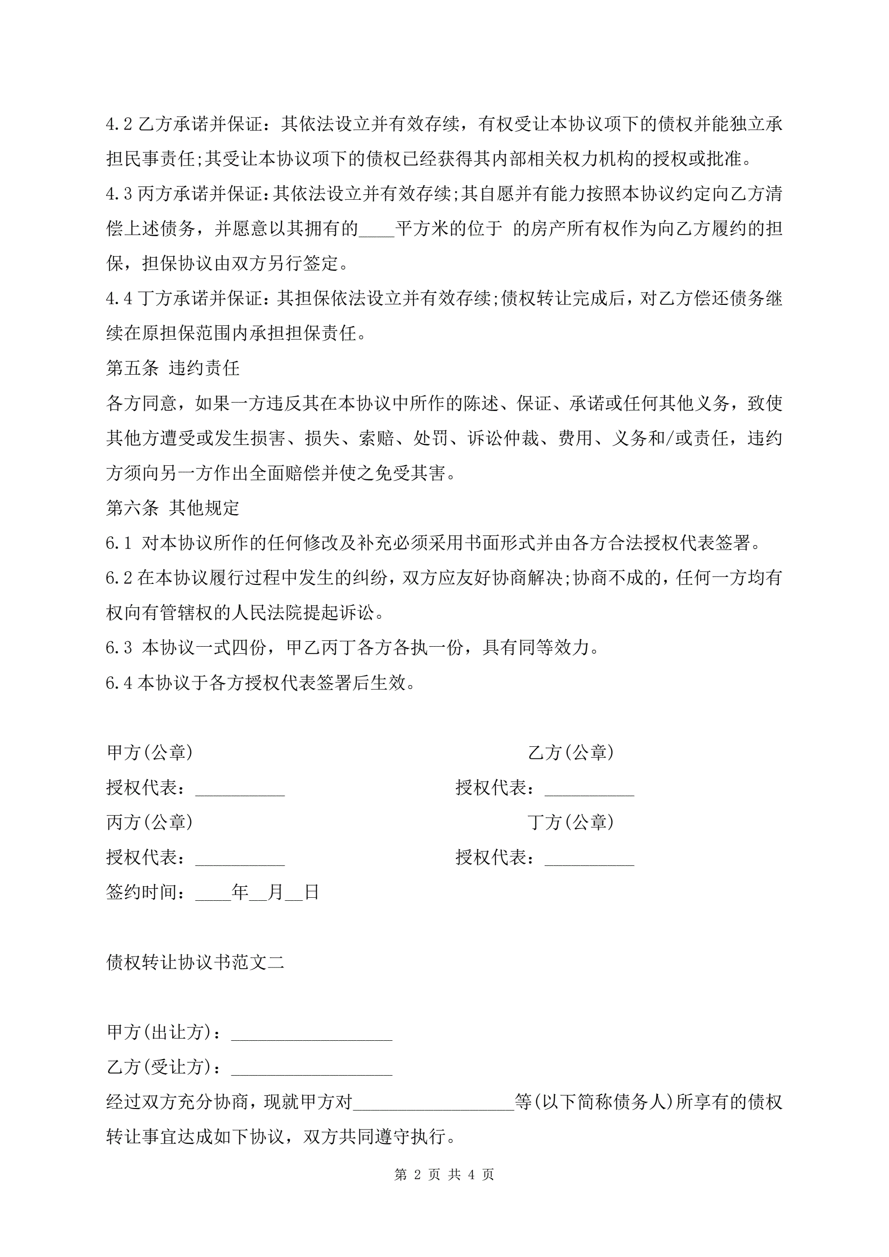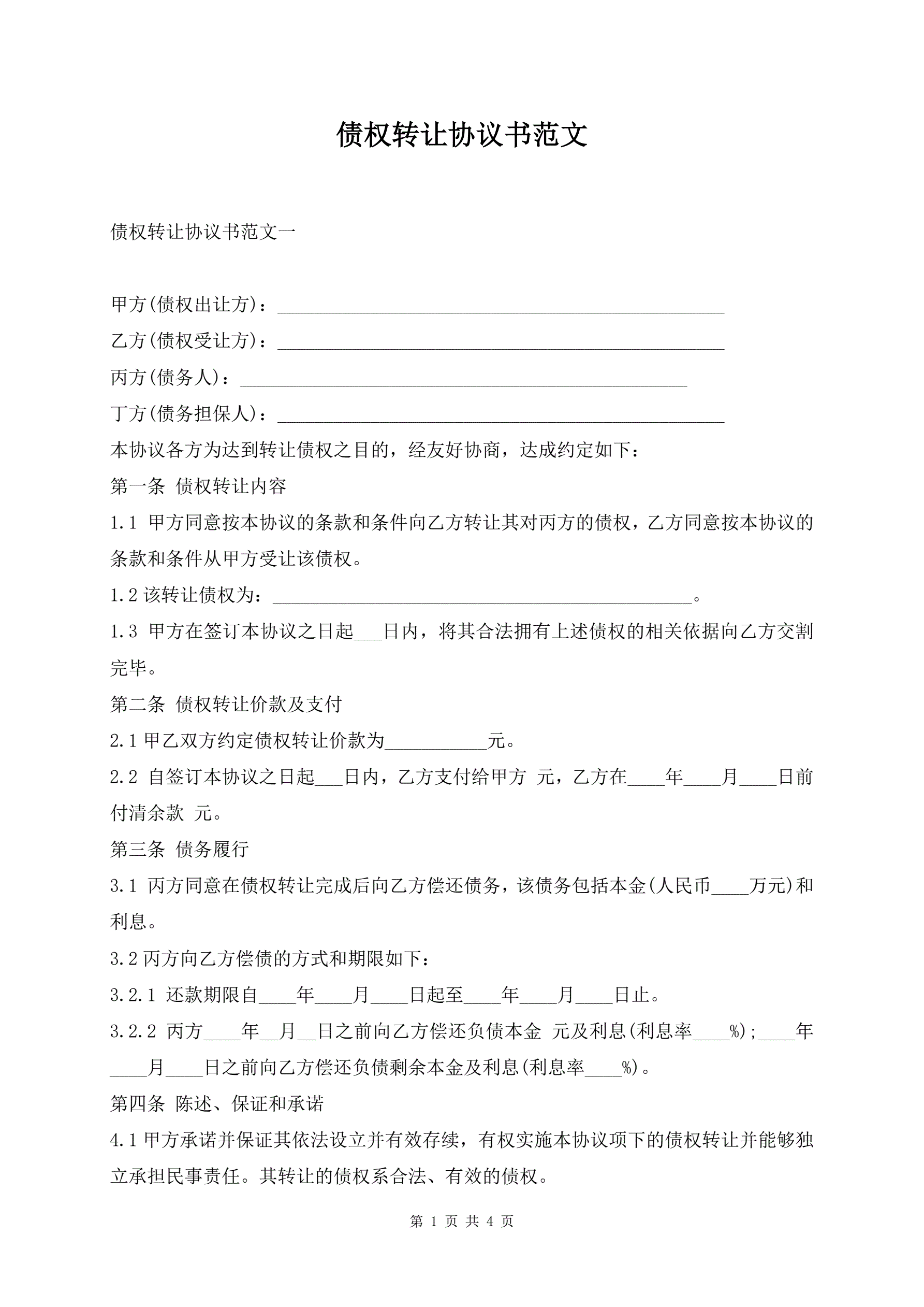 债权转让协议书范文