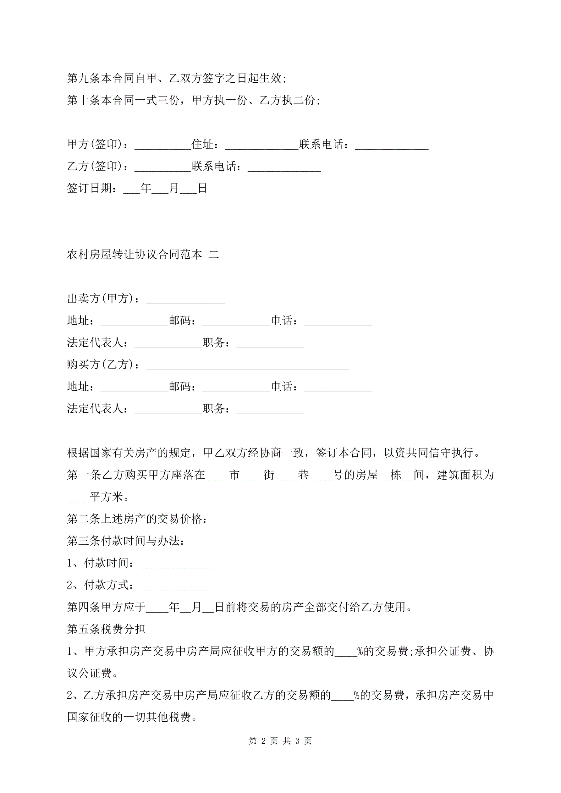 农村房屋转让协议合同范本