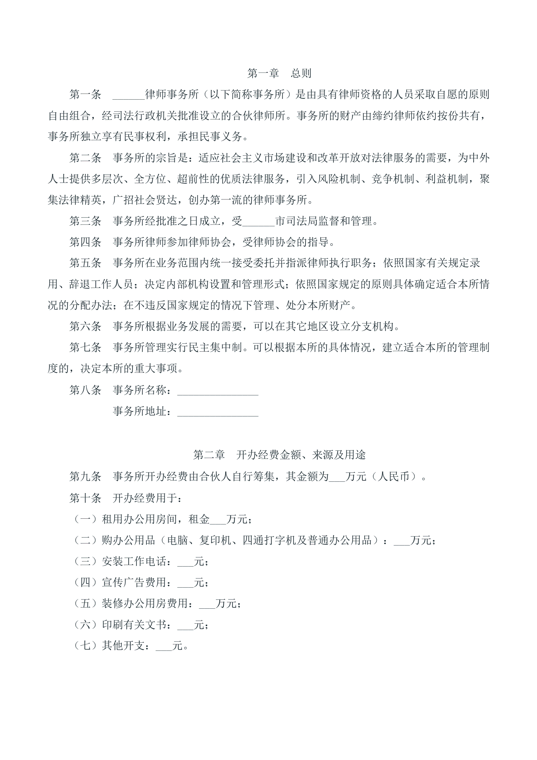 律师事务所章程(合伙所)