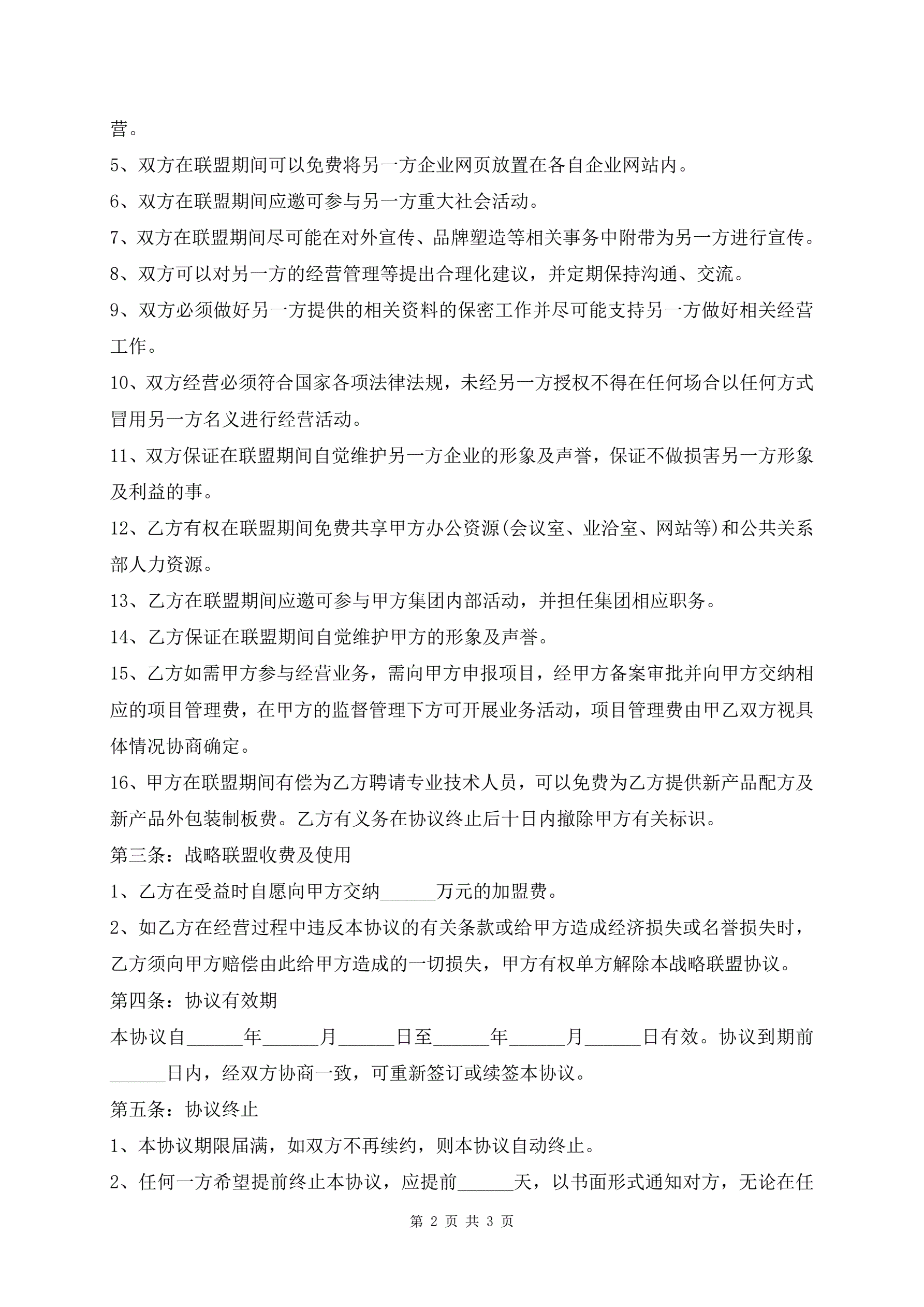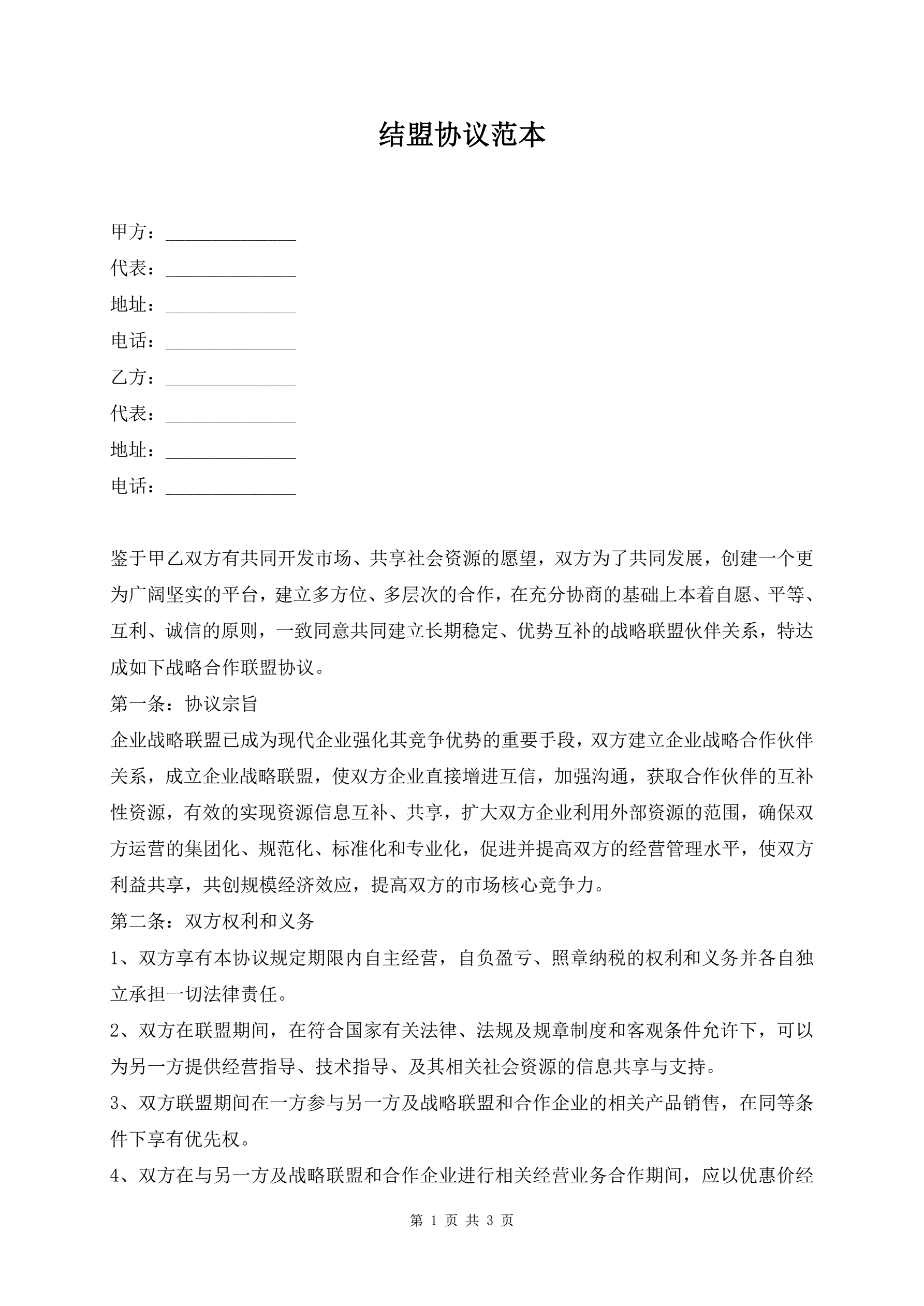>结盟协议范本