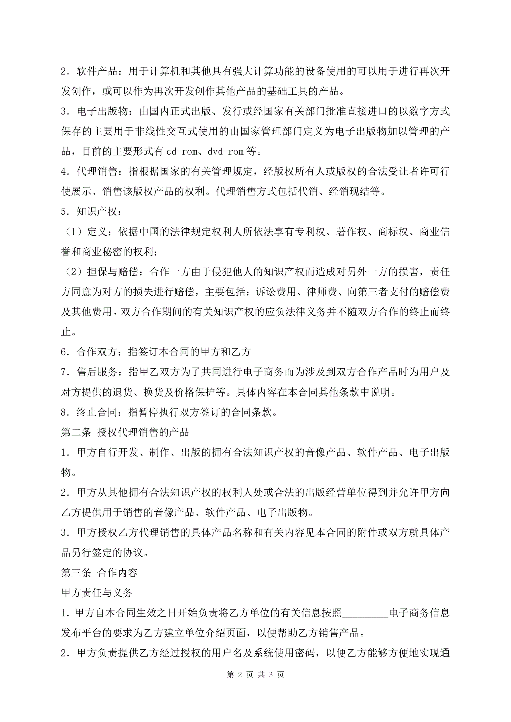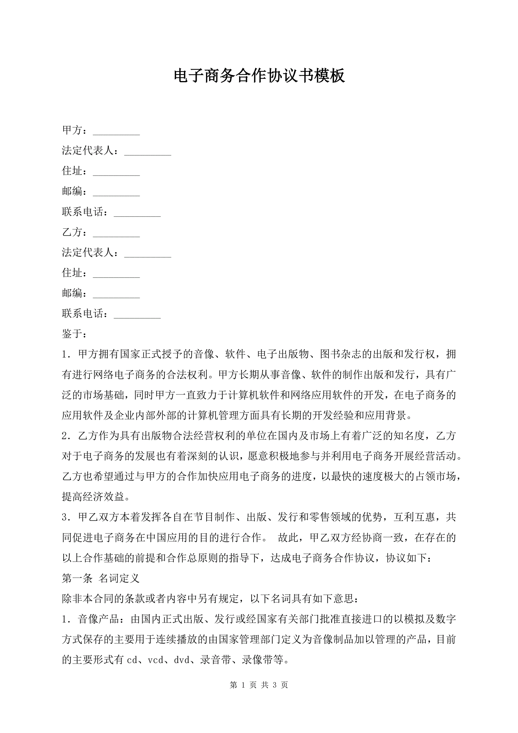 电子商务合作协议书模板