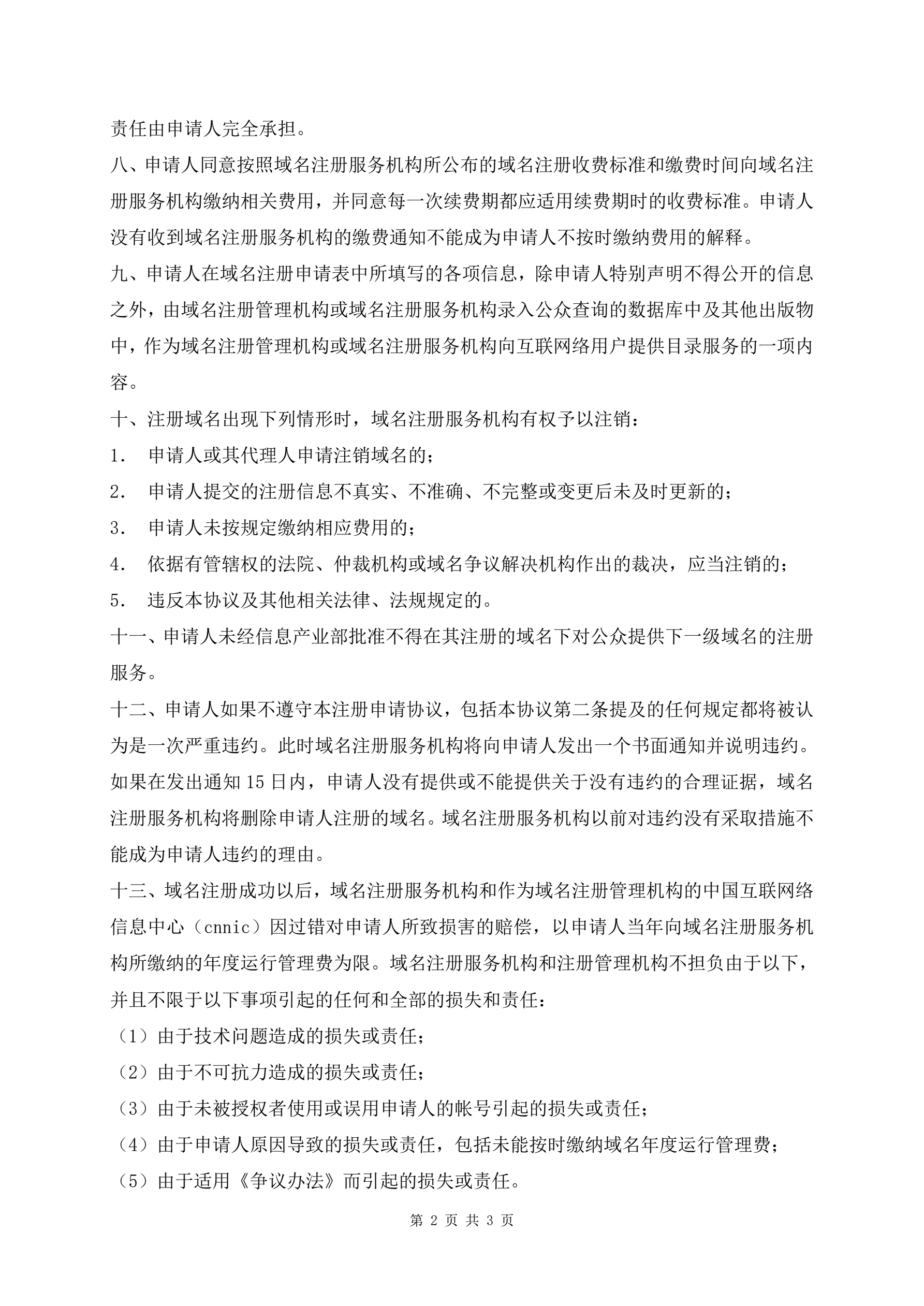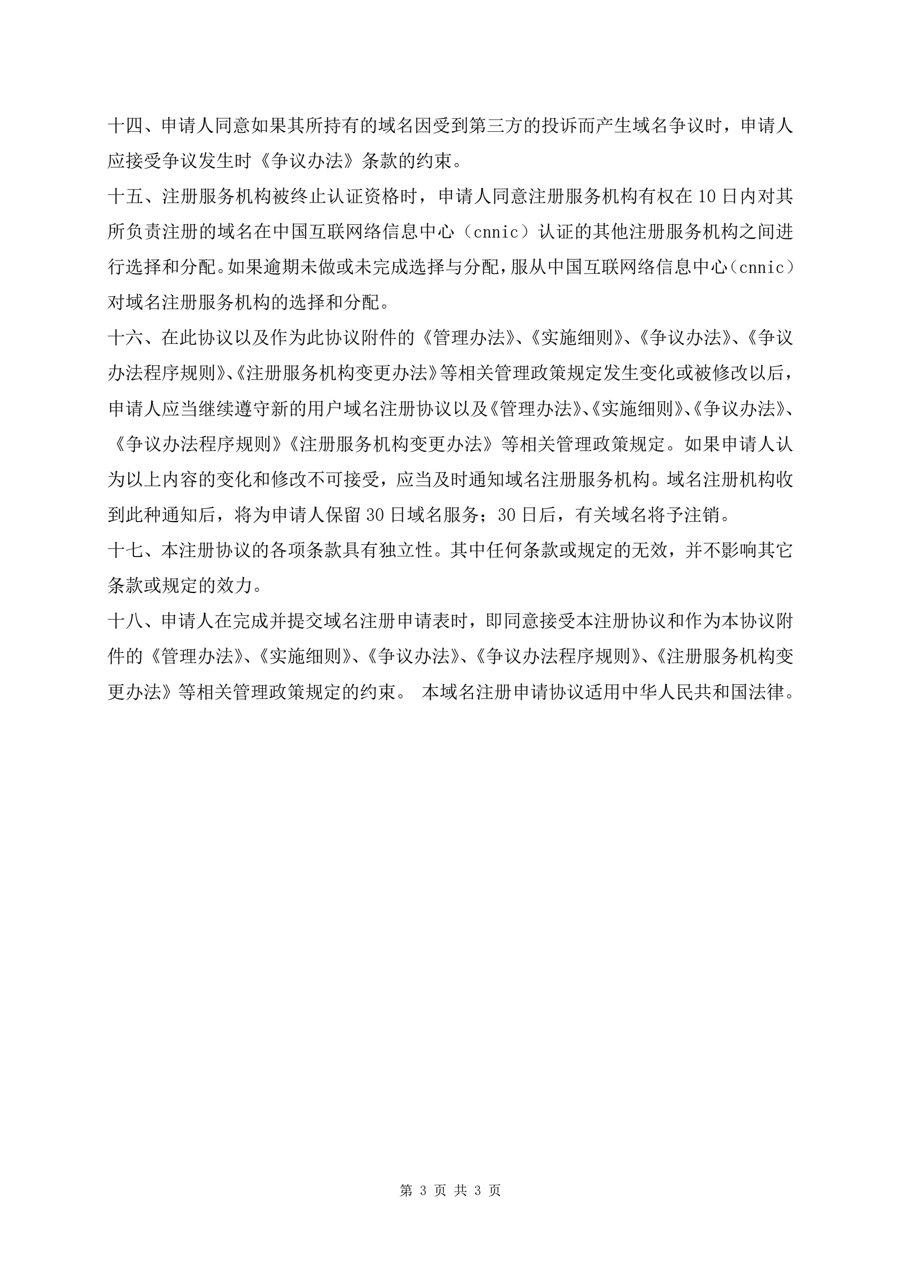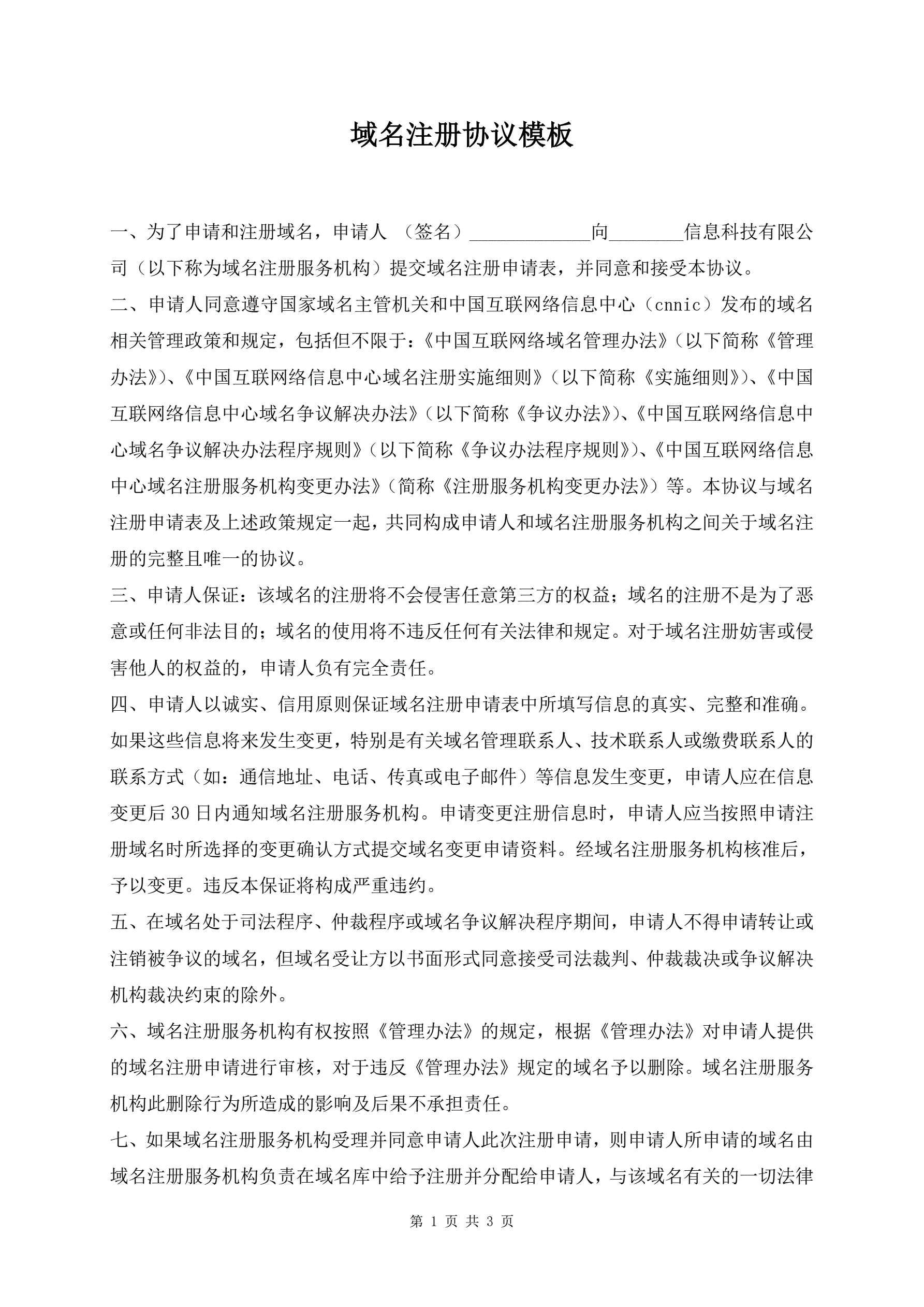 域名注册协议模板