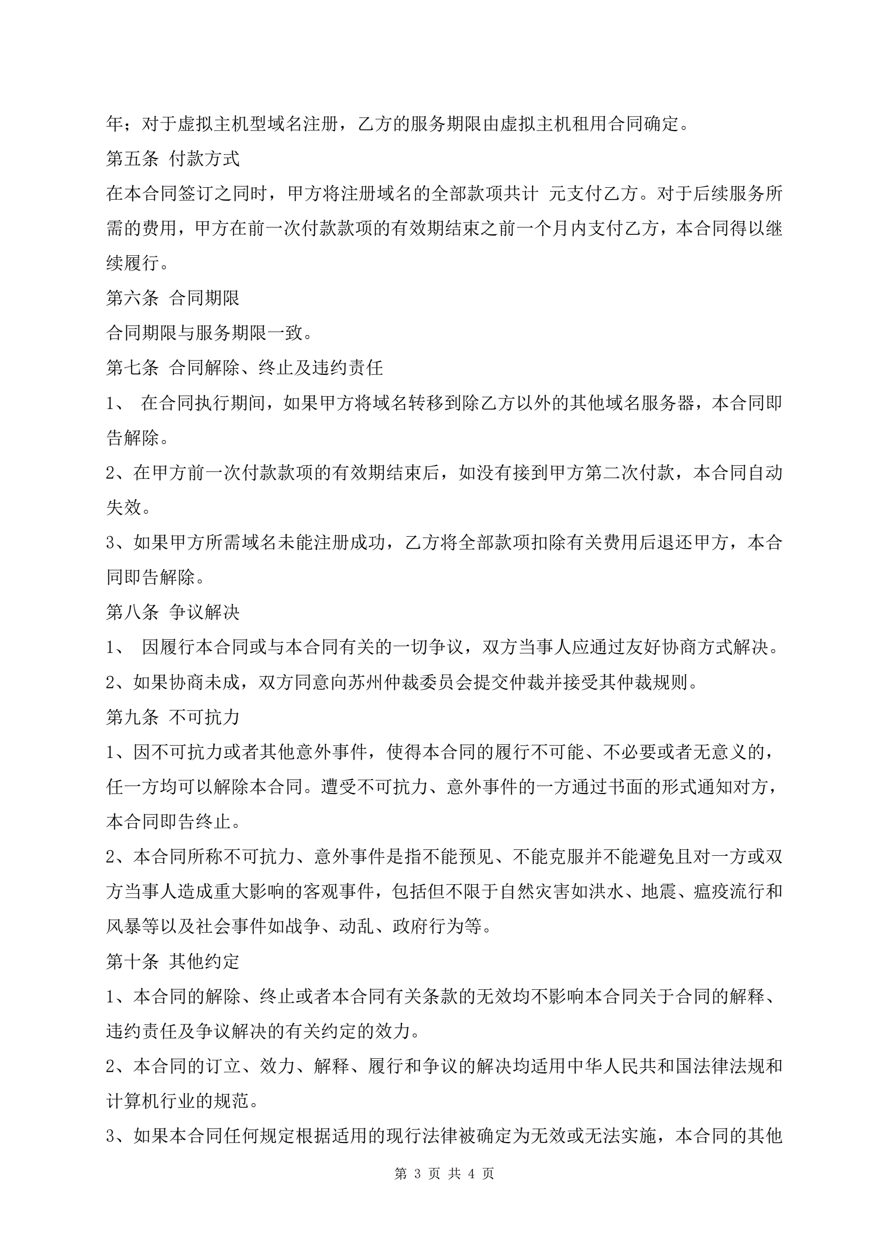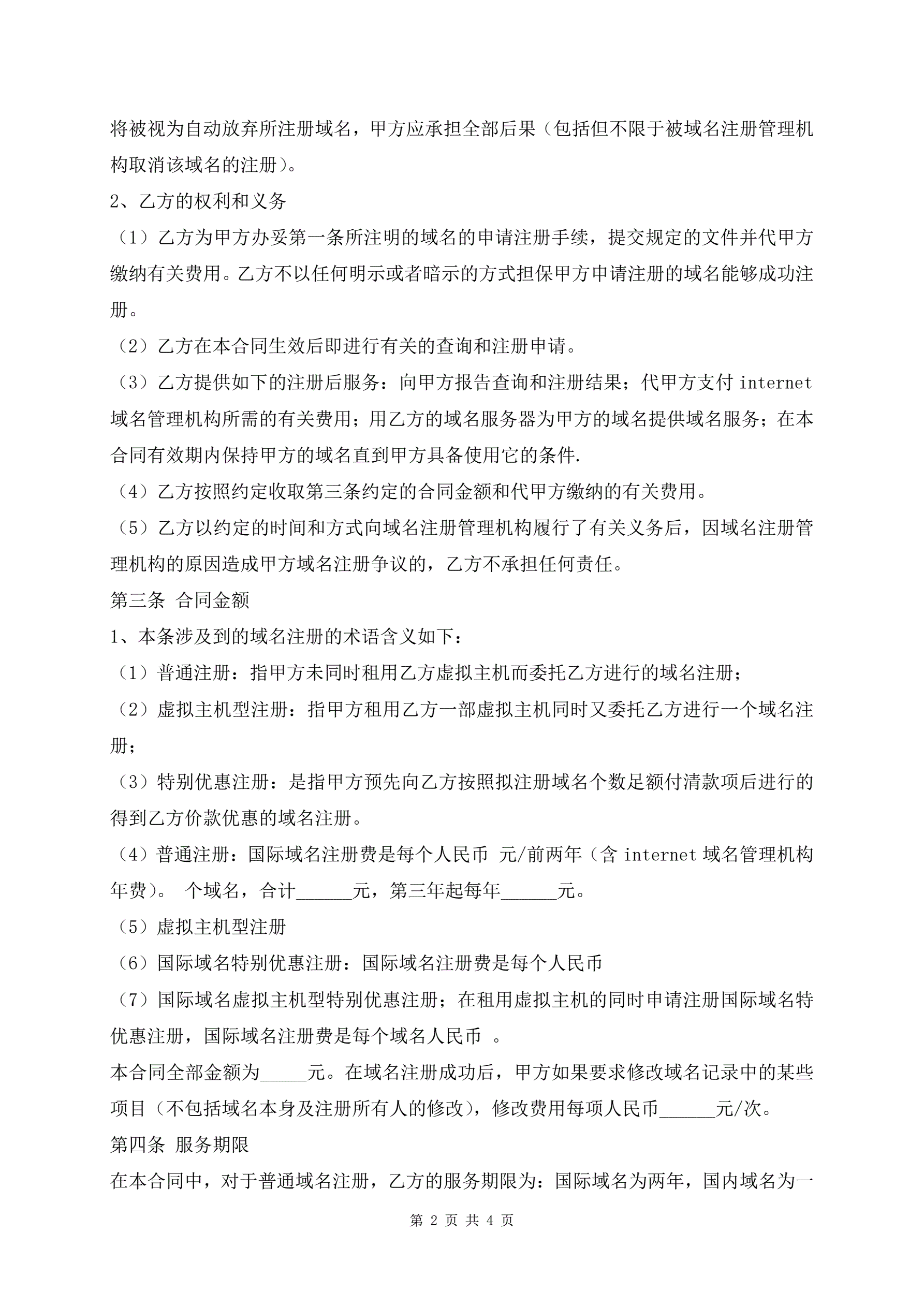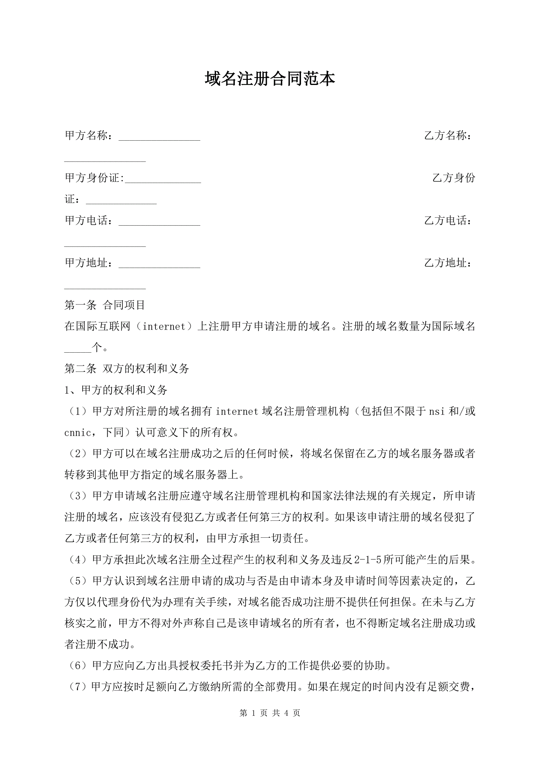域名注册合同范本