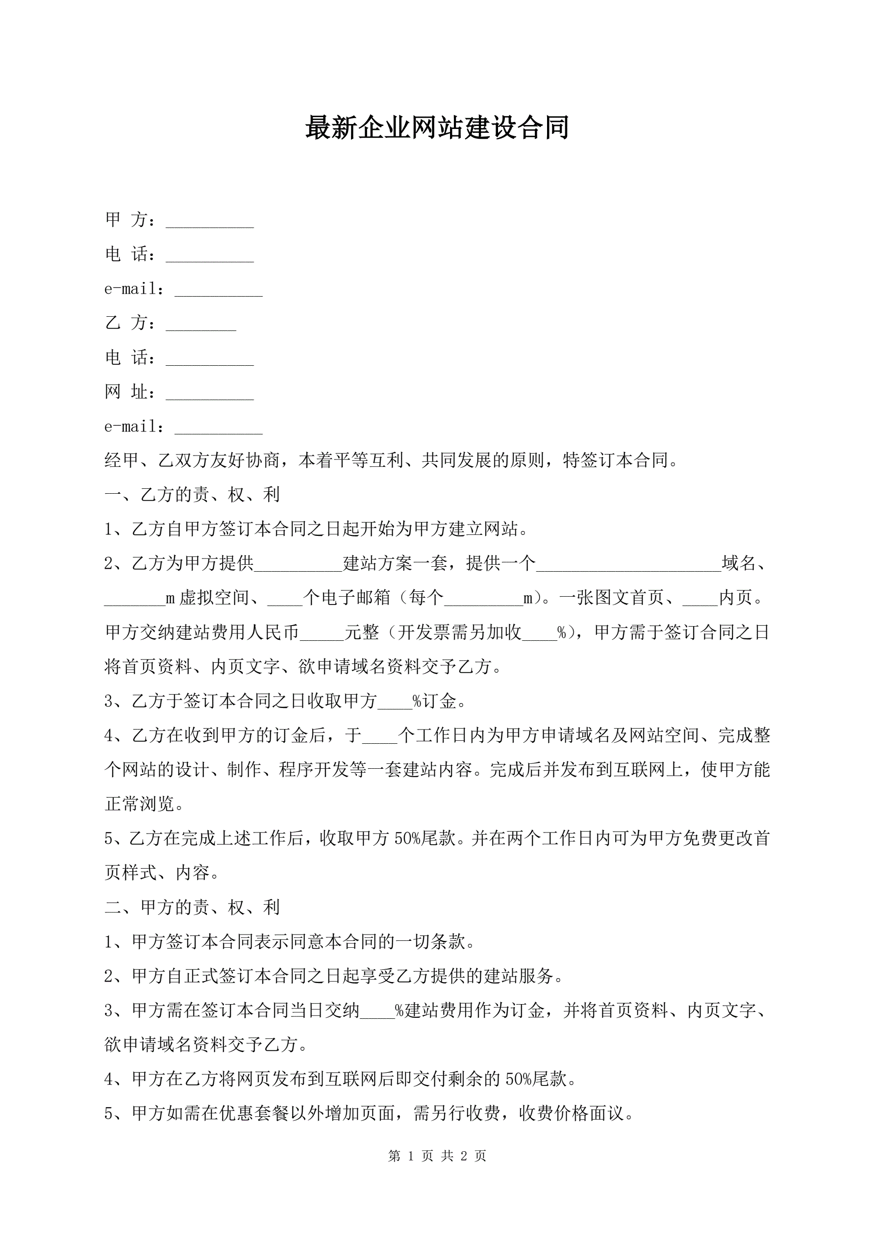 最新企业网站建设合同
