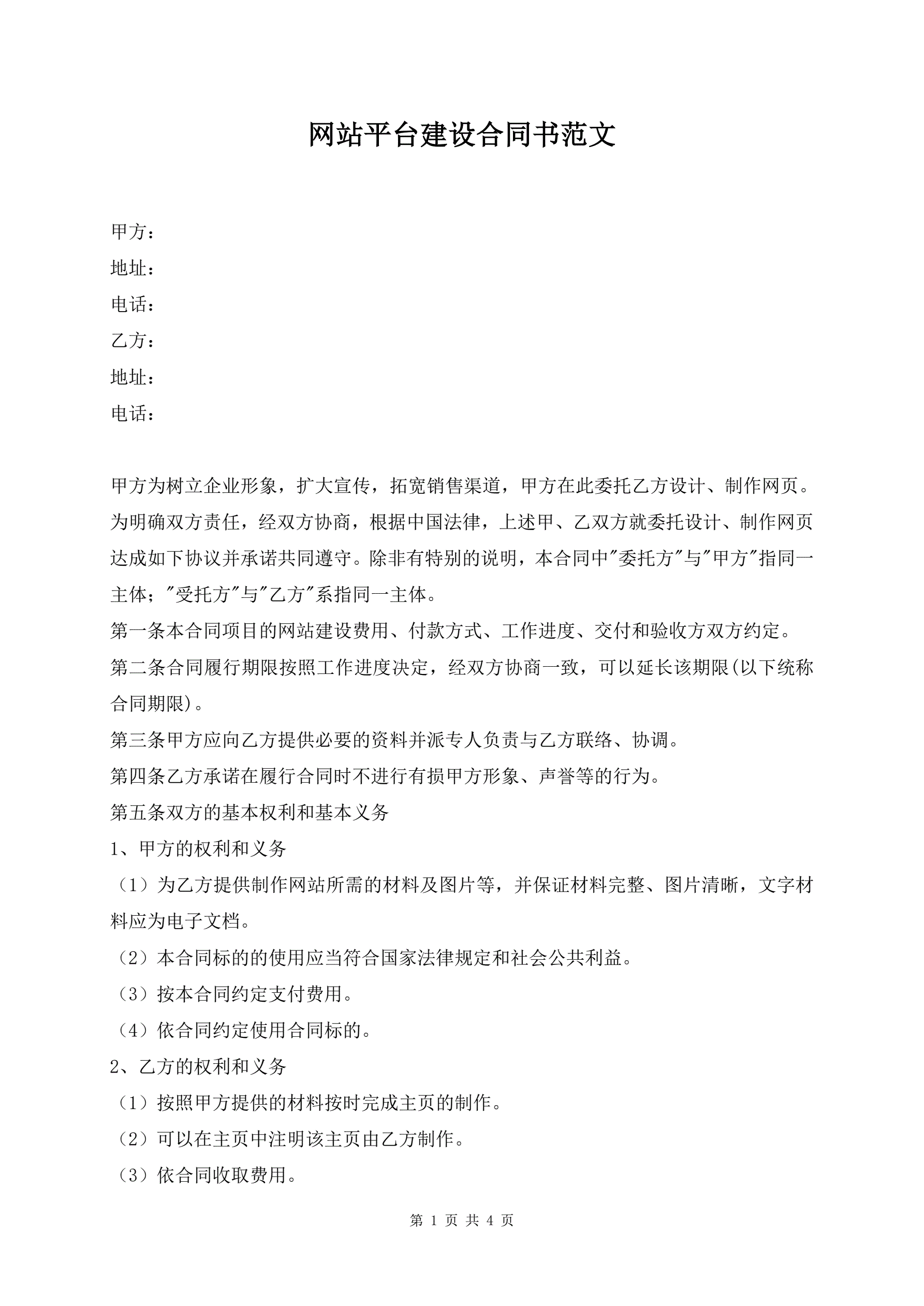 网站平台建设合同书范文