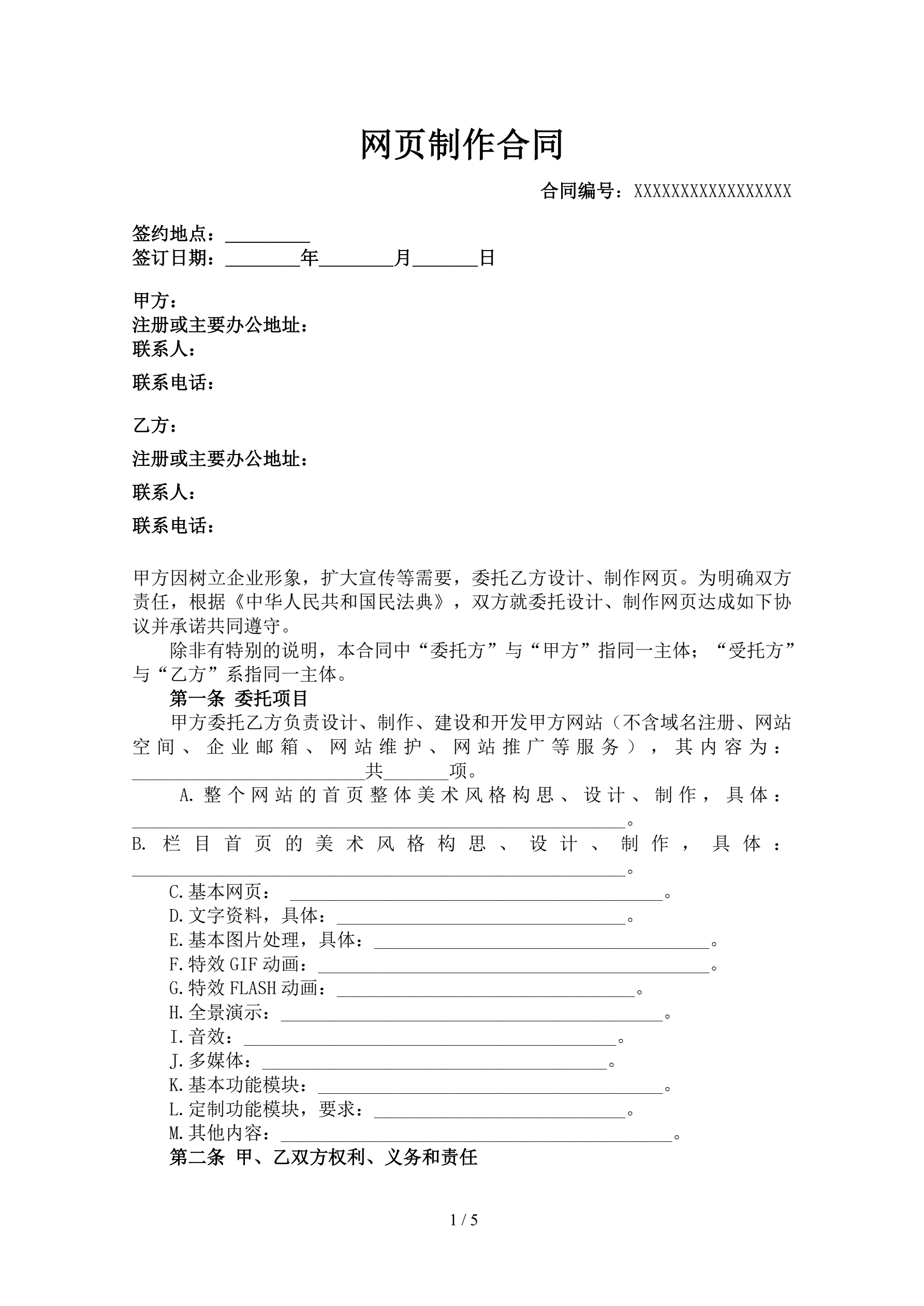 网页制作合同
