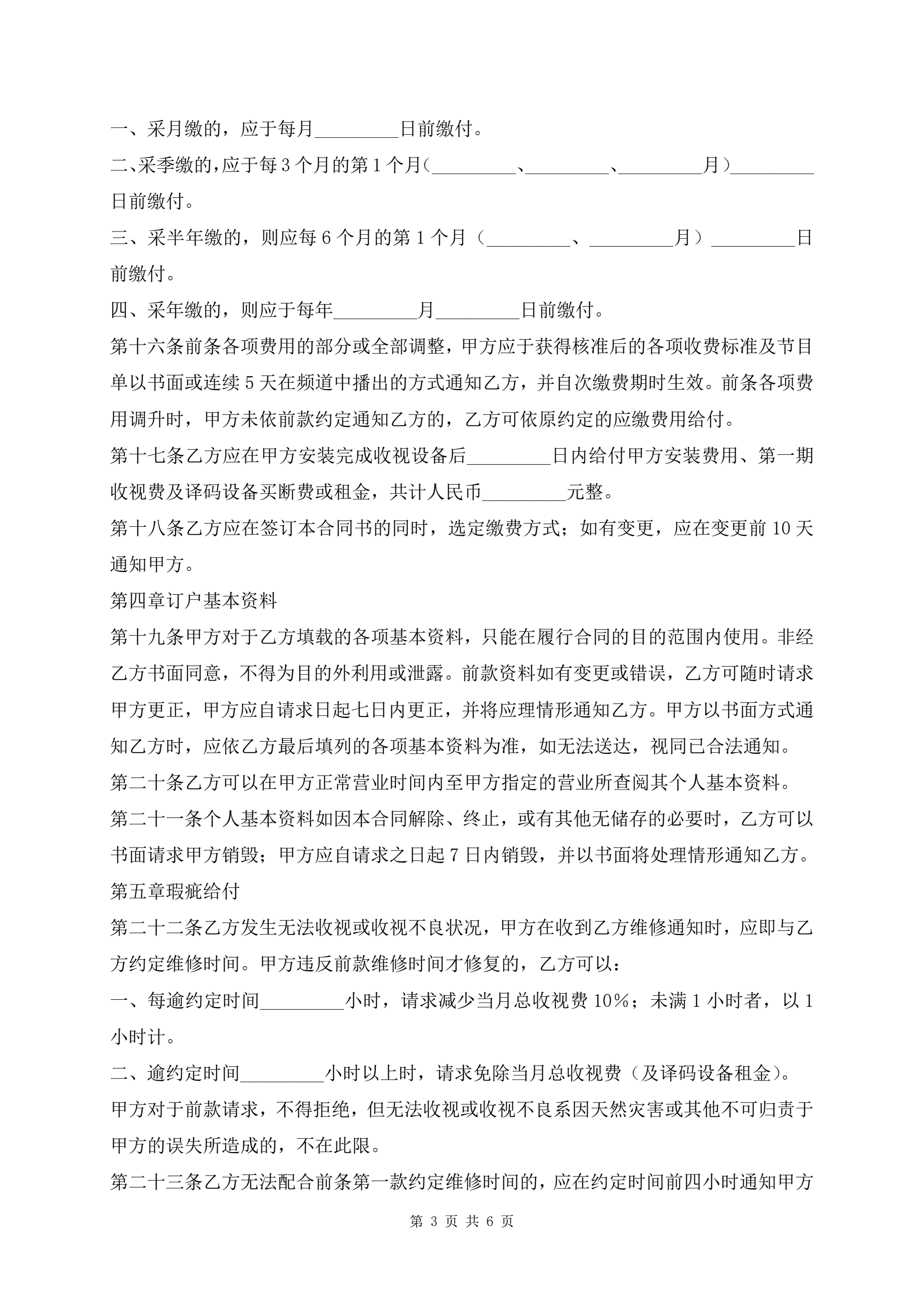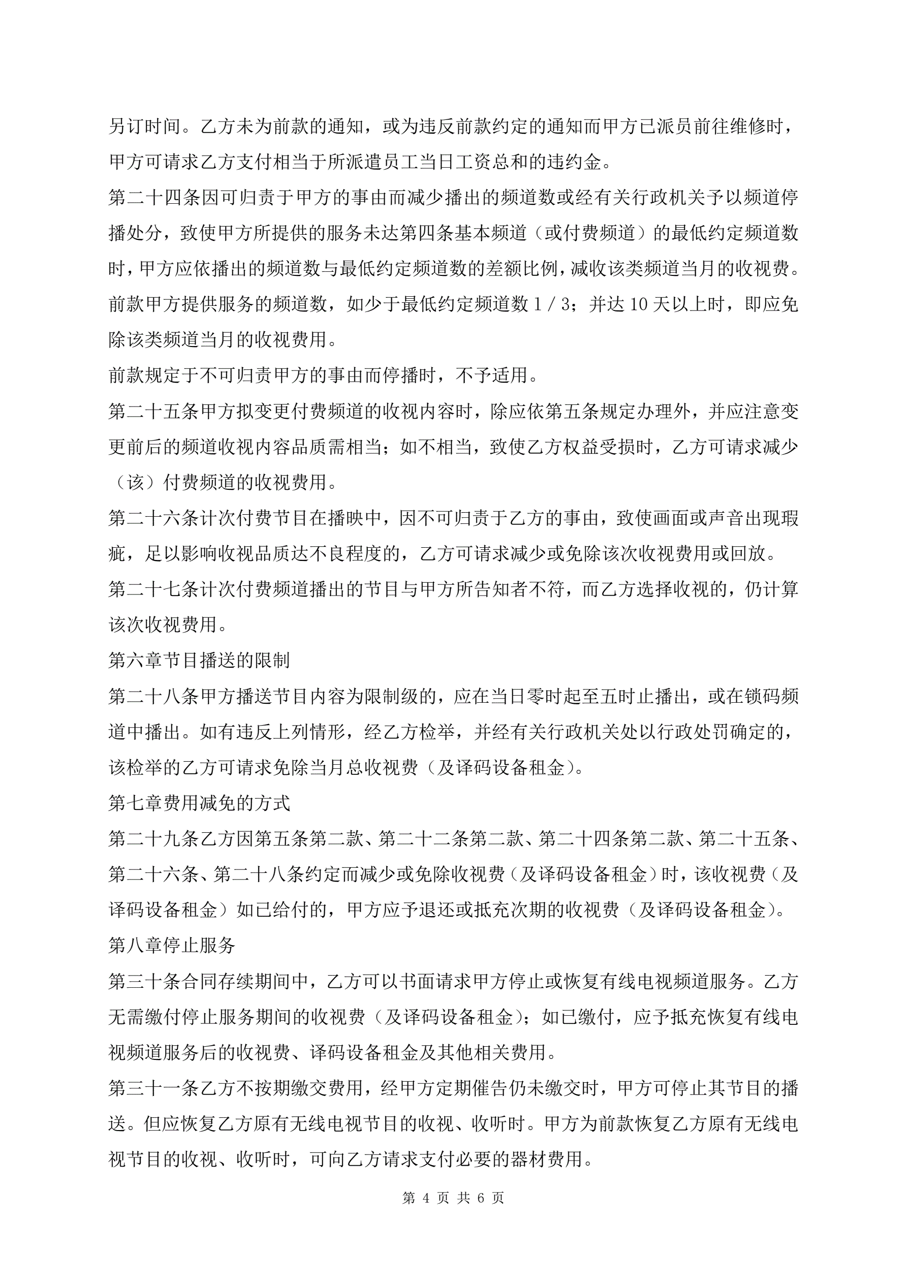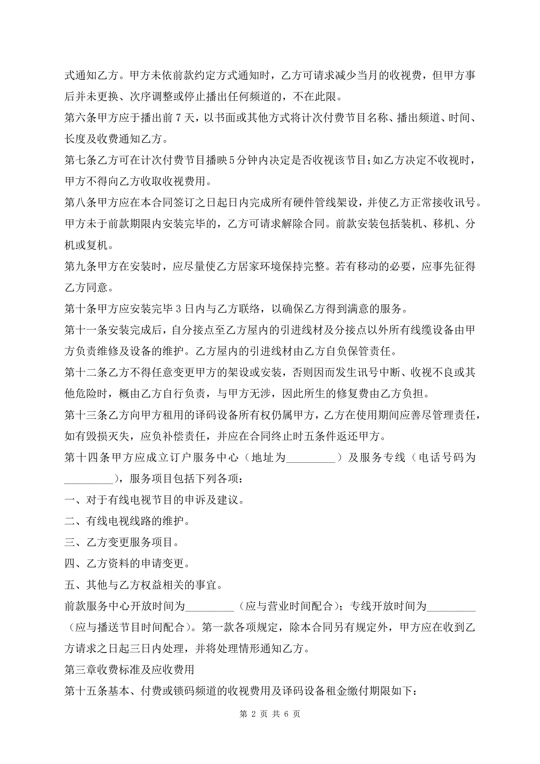 有线电视频道服务合同最新版