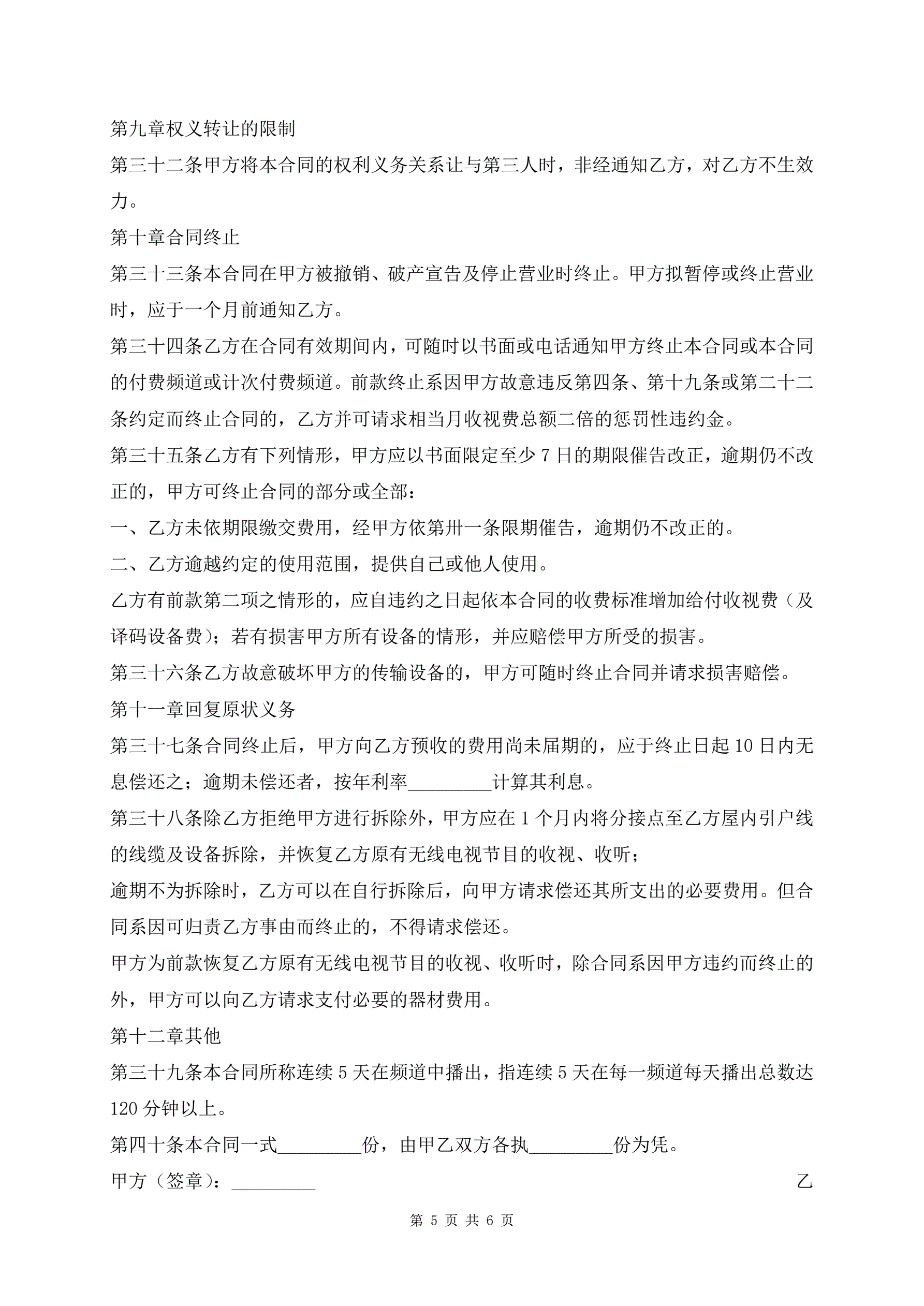 >有线电视频道服务合同最新版
