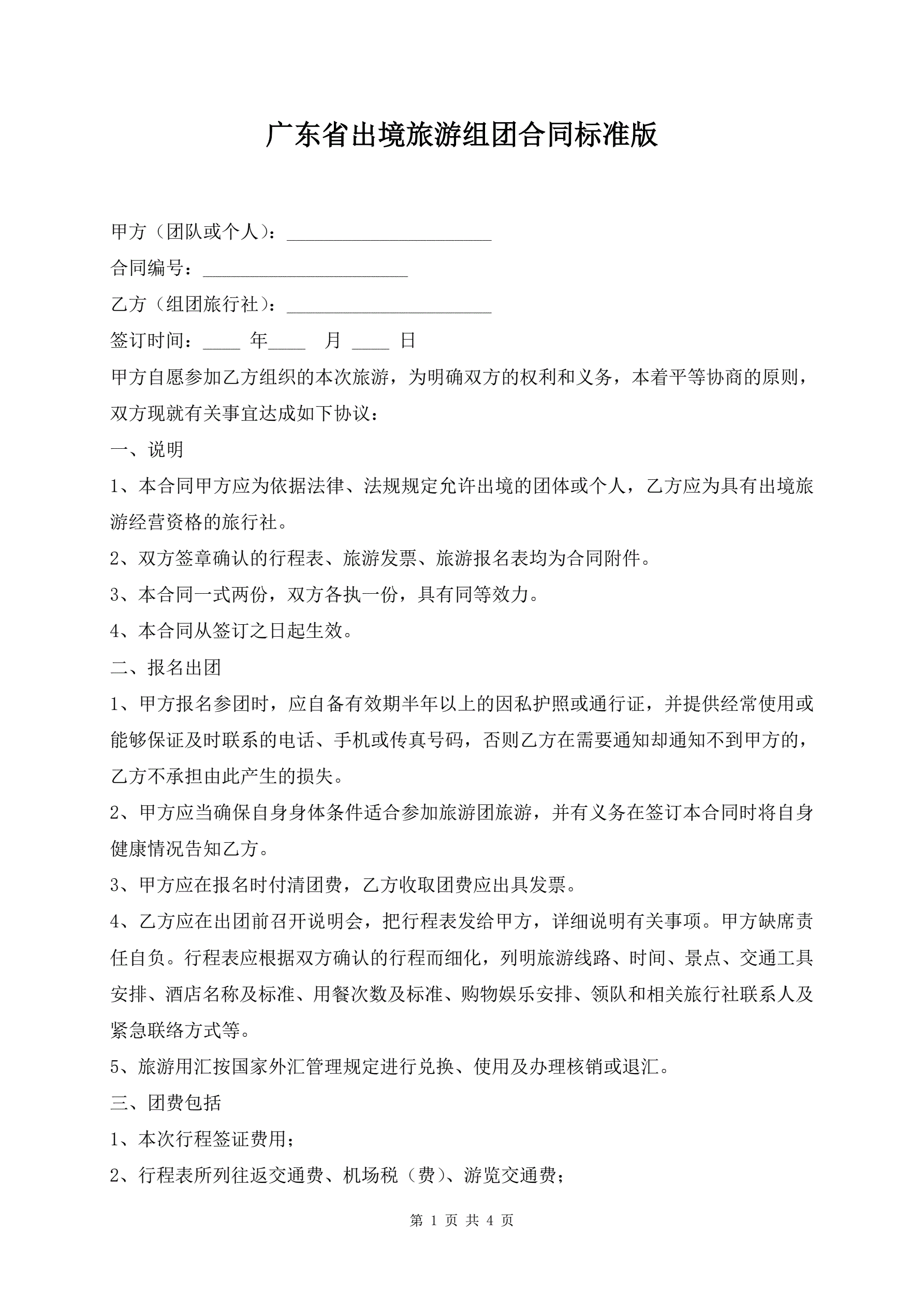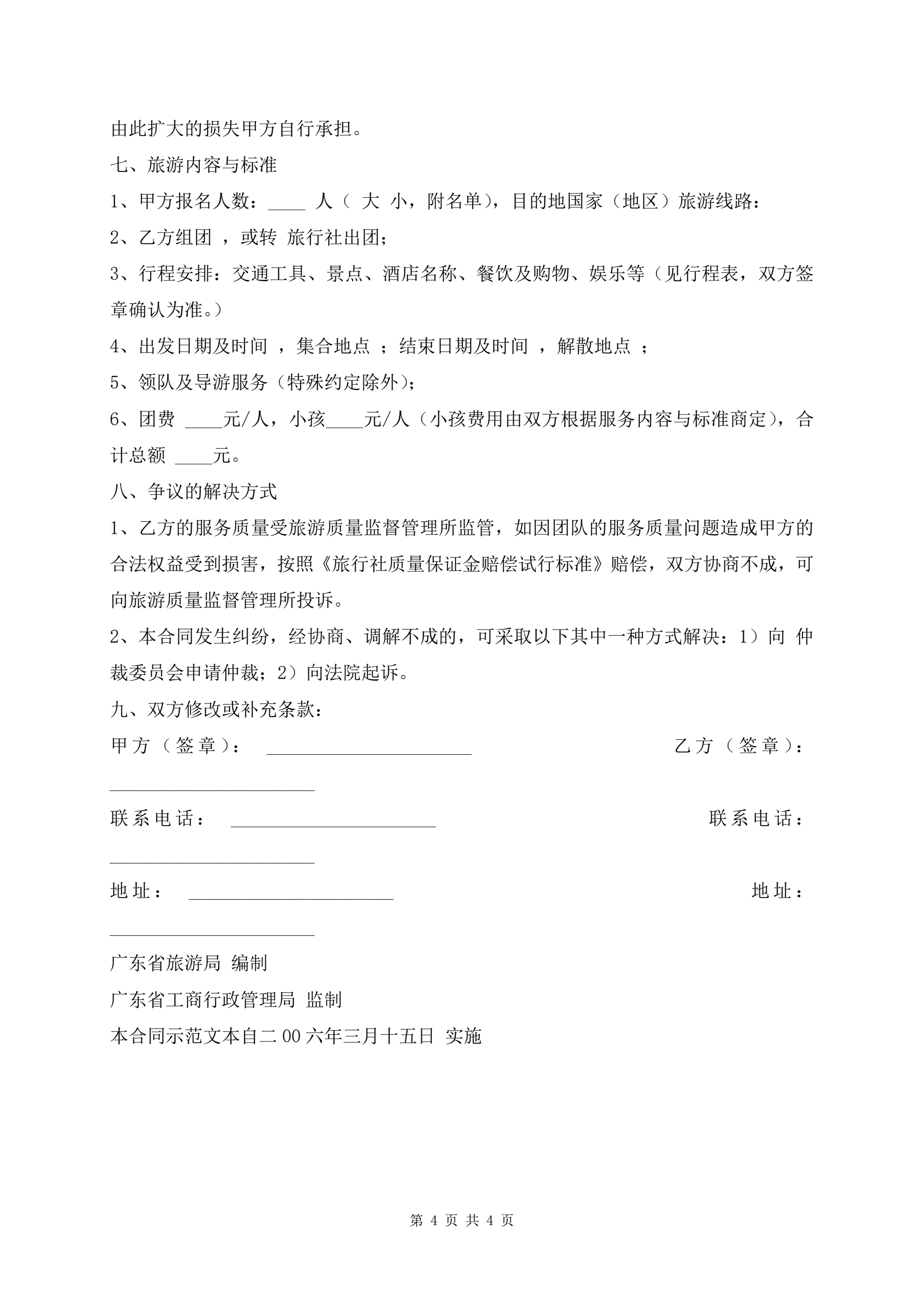>广东省出境旅游组团合同标准版